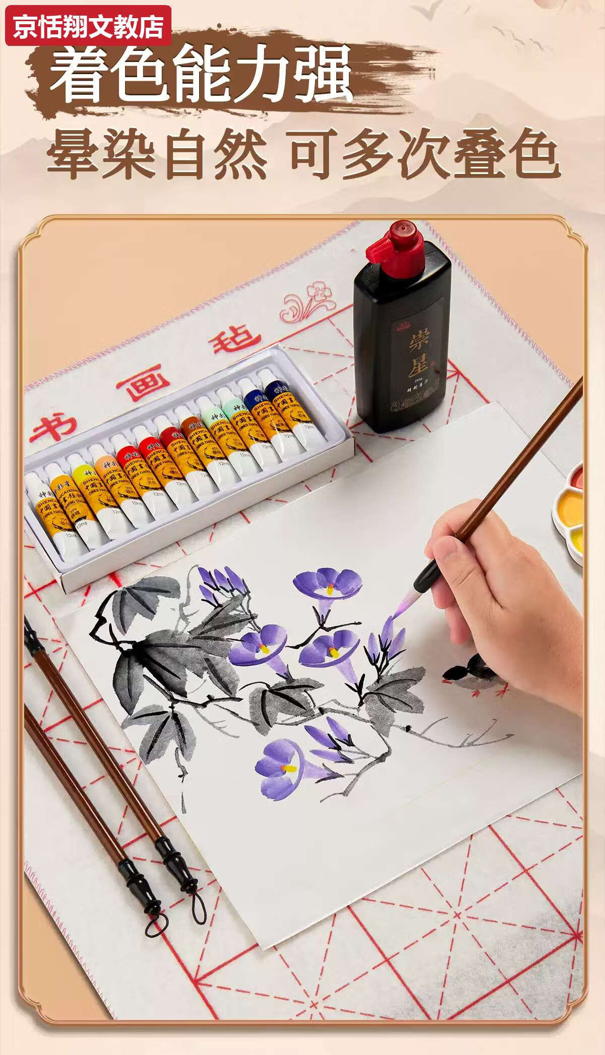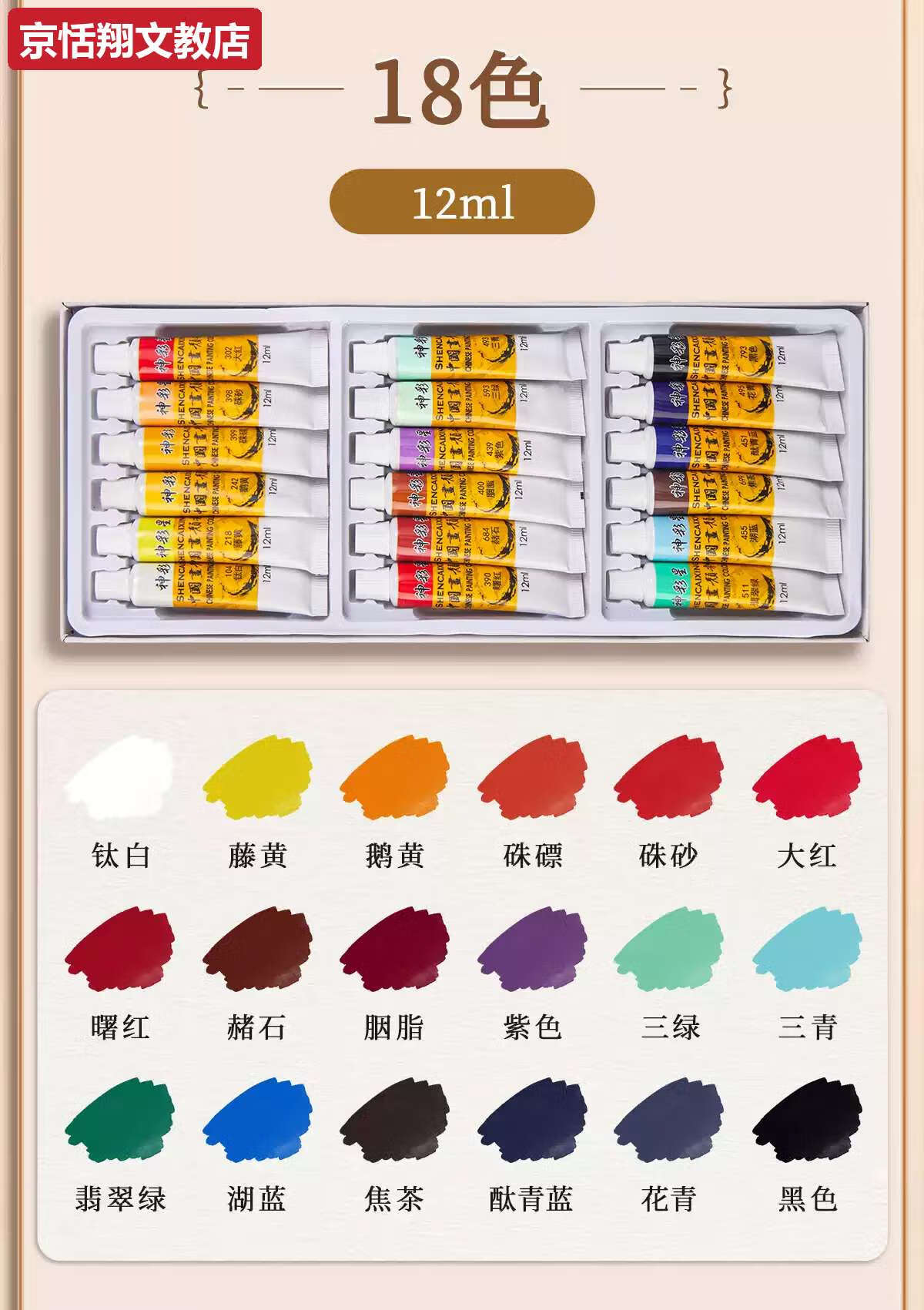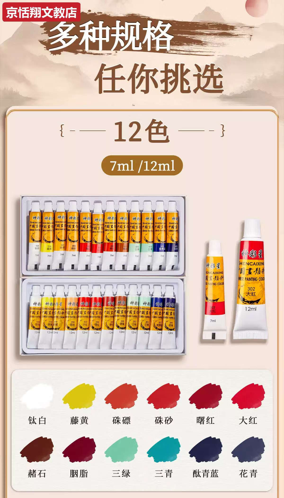 Chong Xing Chinese Painting Pigments Beginner Set Chinese Painting Supplies Tools Complete Set of Ink Painting Introductory Materials Primary School Students Art Teacher Recommended 12 Colors 12ml