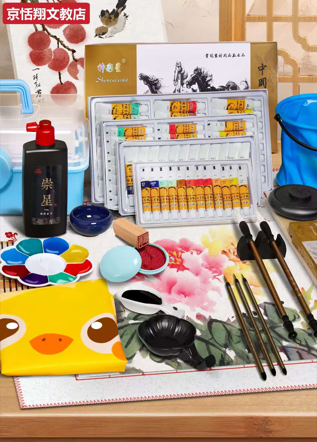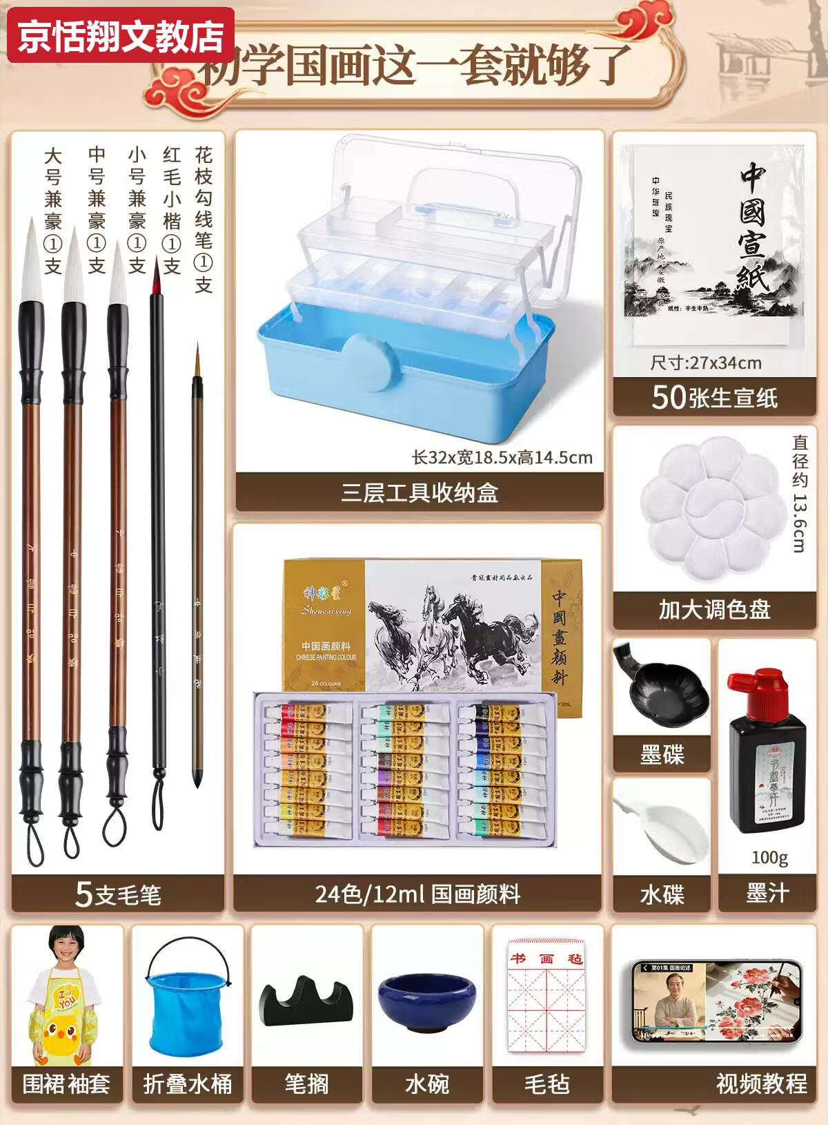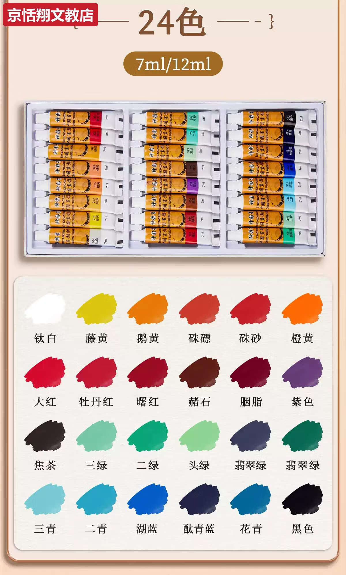 Chong Xing Chinese Painting Pigments Beginner Set Chinese Painting Supplies Tools Complete Set of Ink Painting Introductory Materials Primary School Students Art Teacher Recommended 12 Colors 12ml