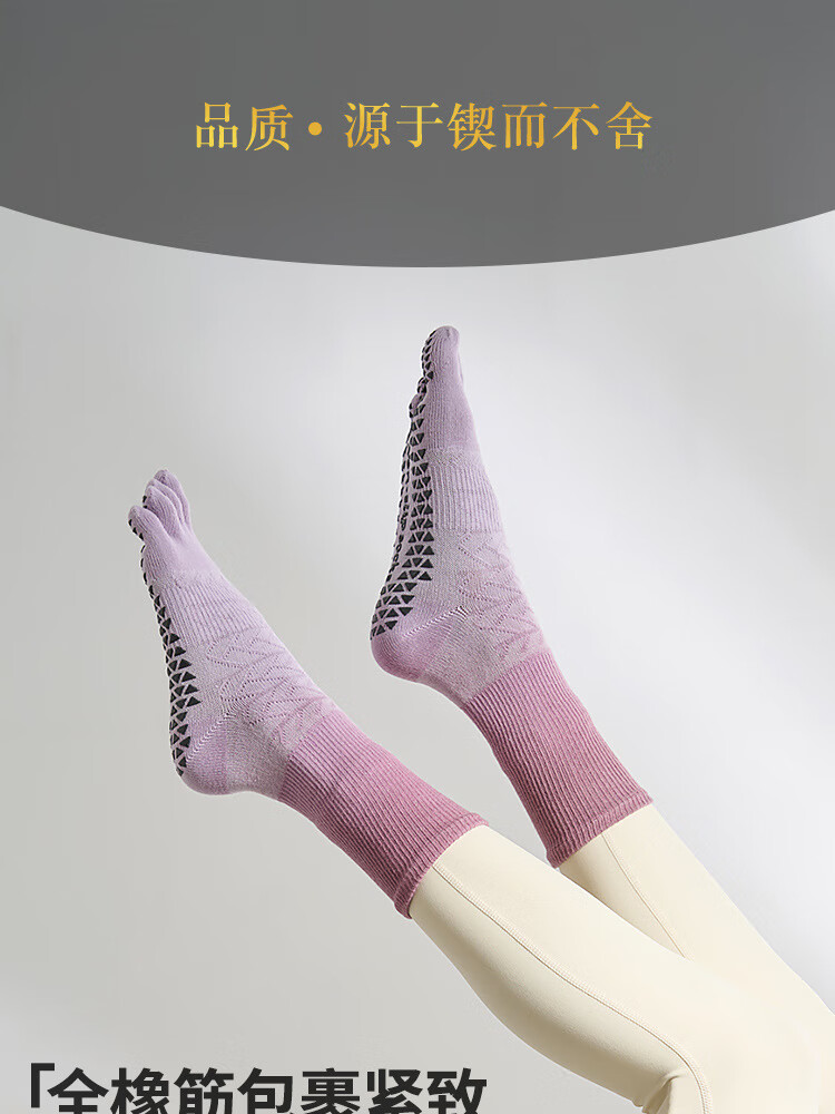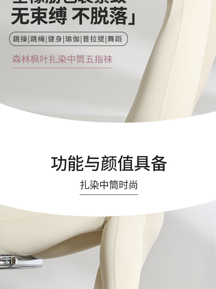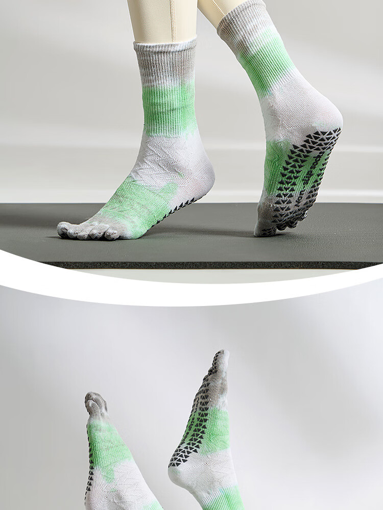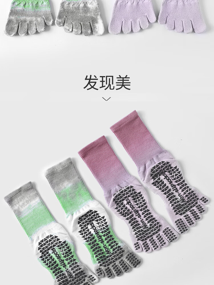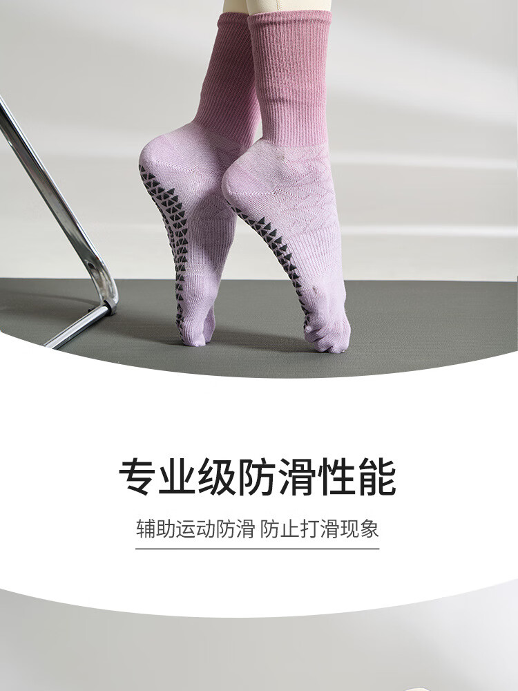 Tie-dyed mid-high autumn yoga socks, non-slip women's long toe socks, Pilates socks, sports socks, floor socks, maple leaf purple pink, one size fits all