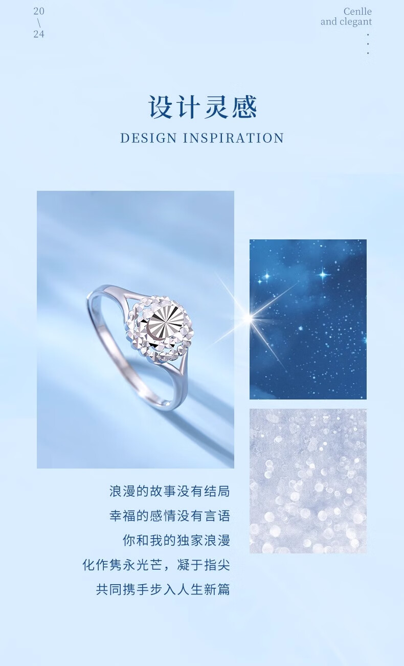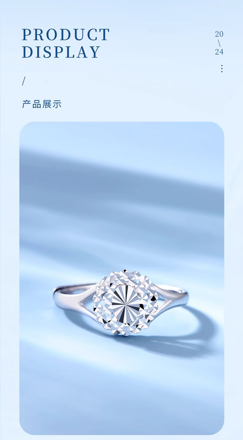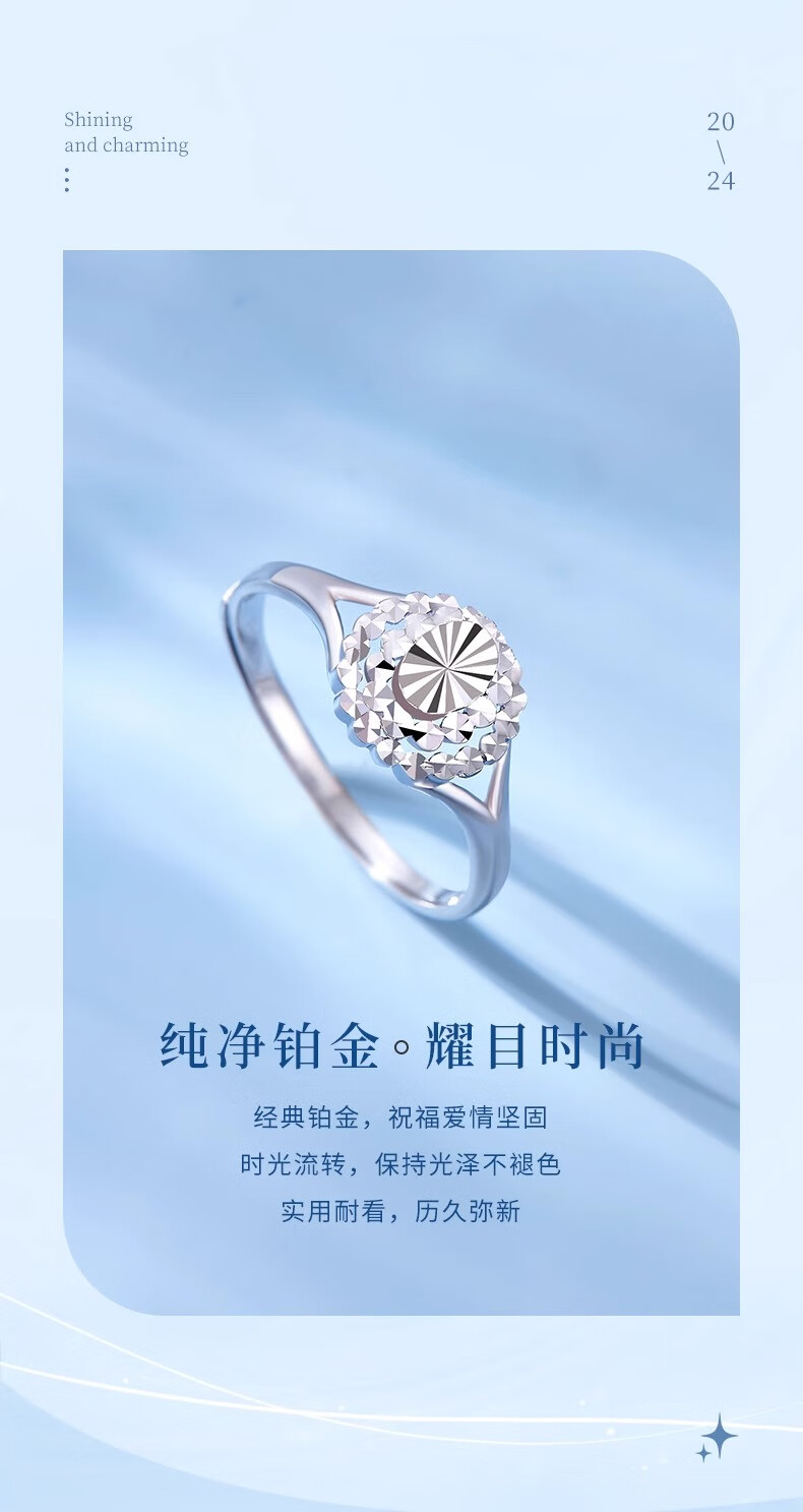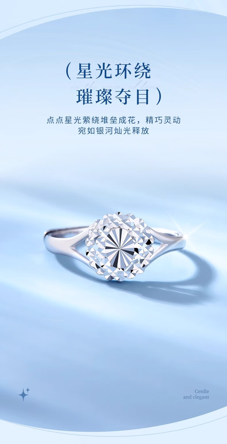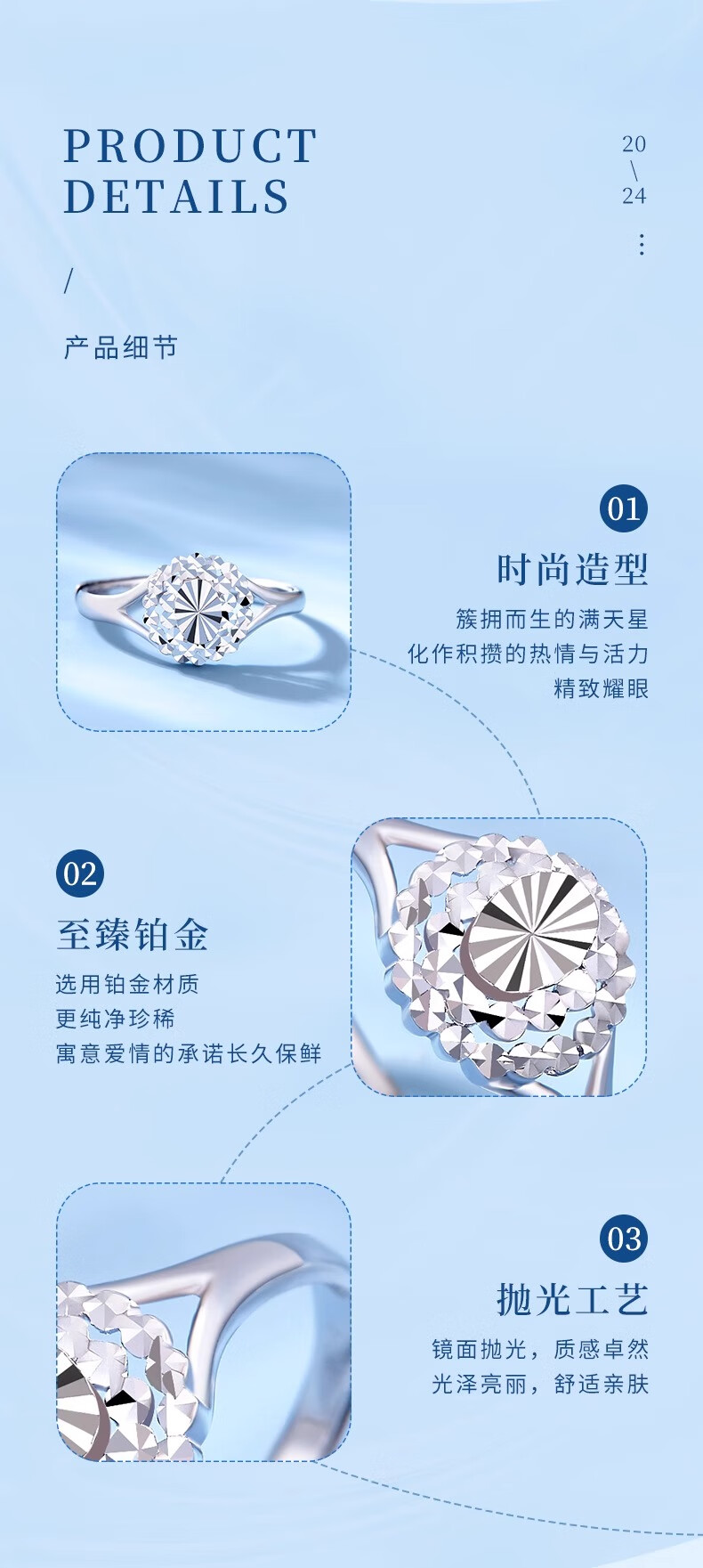 Lao Fengxiang pt950 platinum ring 2025 new style female baby's breath open ring engagement ring birthday gift for girlfriend baby's breath platinum ring about 2.4g