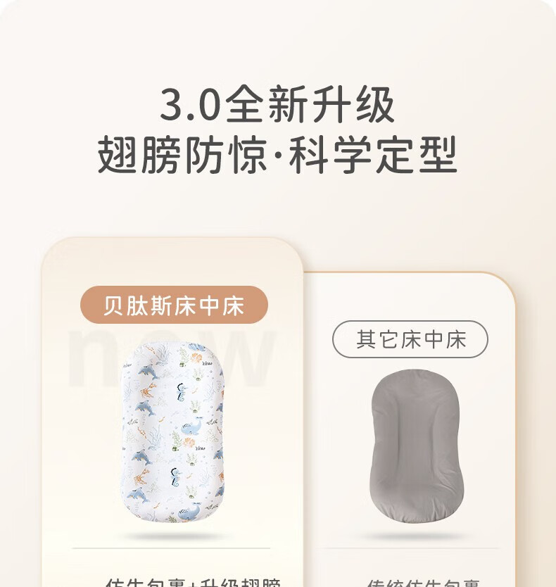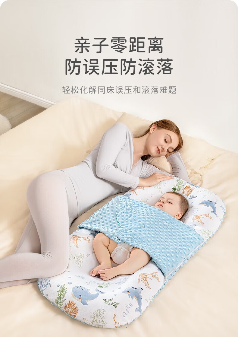 Betis bed-in-bed baby newborn baby bed crib soothing bionic anti-pressure and anti-scare artifact Yo Luming anti-scare + slope pillow 0-1 years old