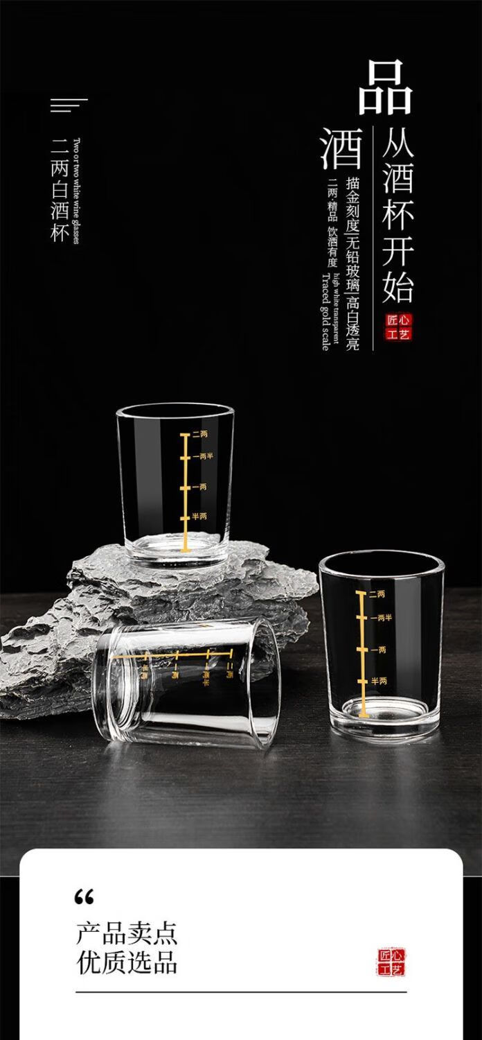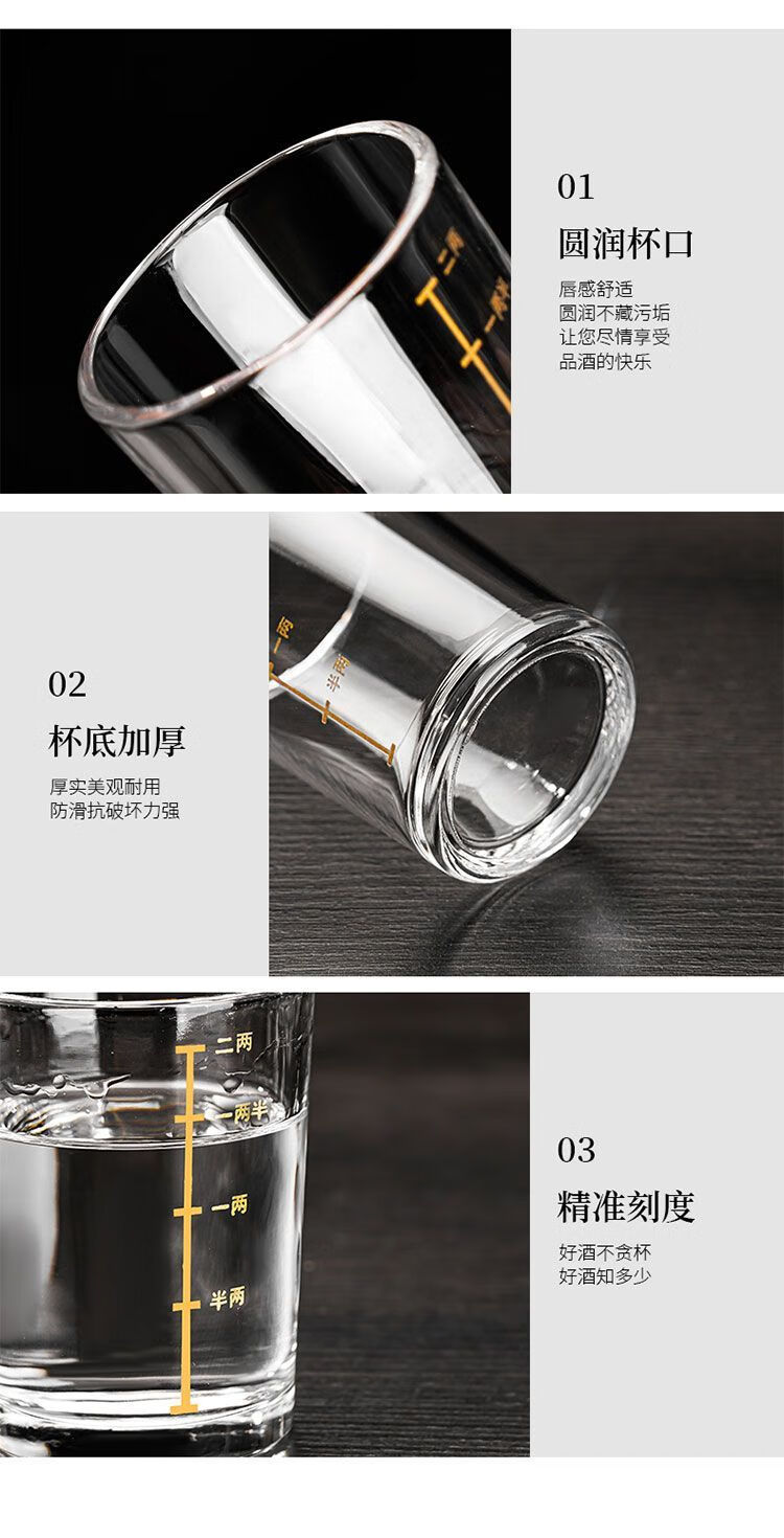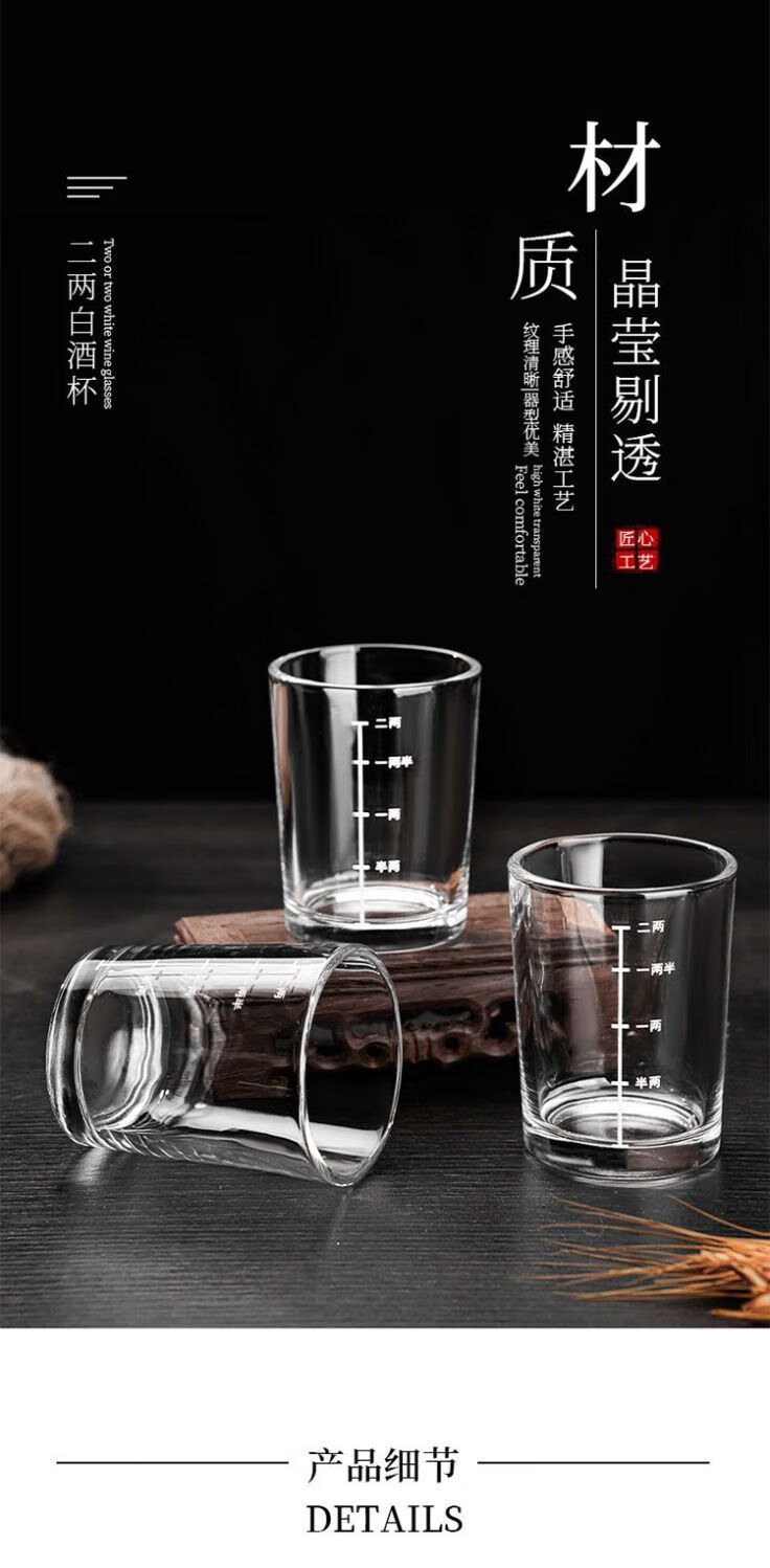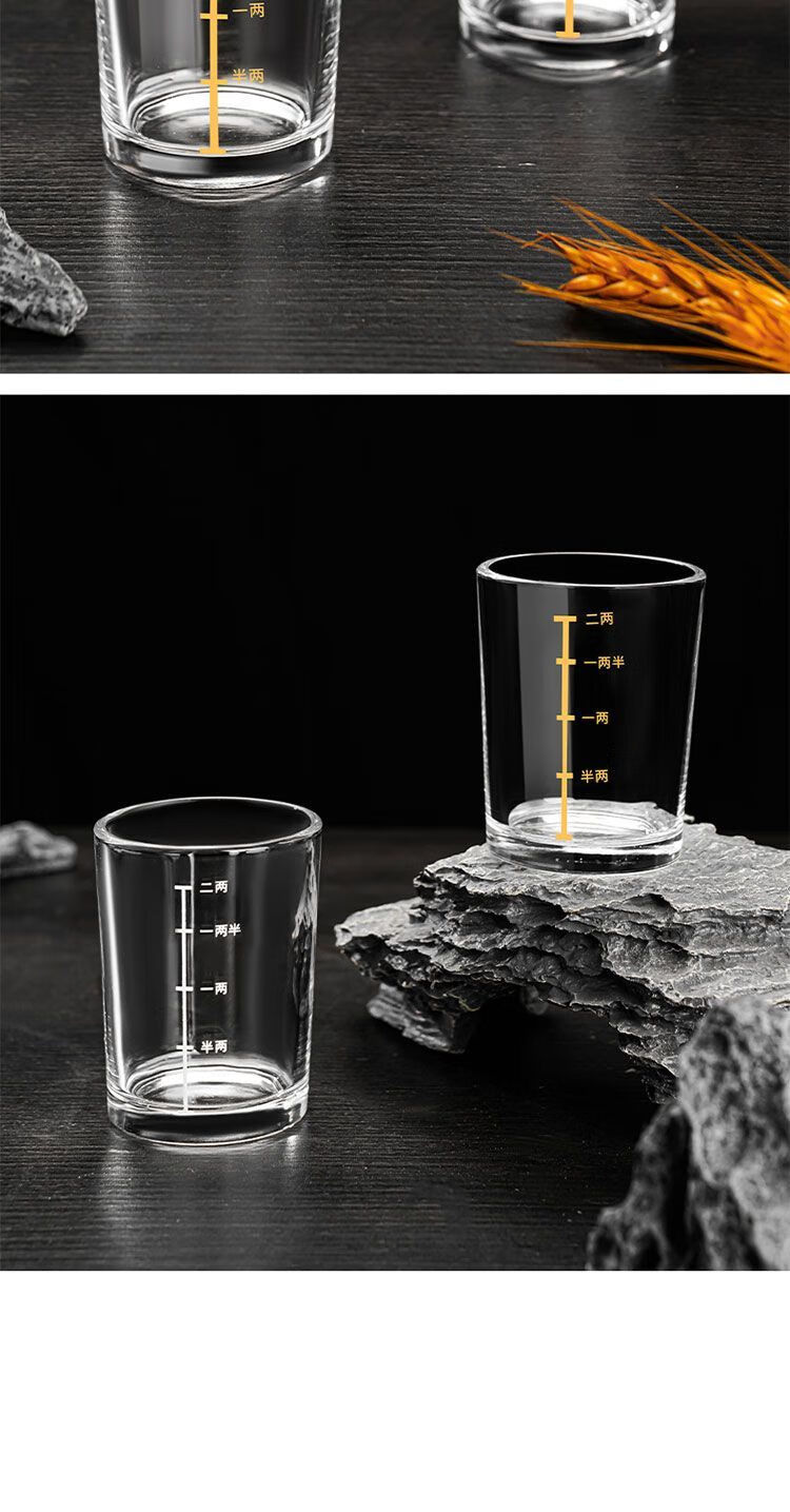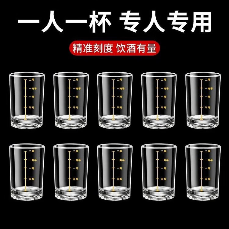 Meikejie 10-pack, two-liang scaled white wine glass set, household 2-liang liquor glass, glass wine set 100ml thickened, gold-scaled two-liang cup, ten-pack
