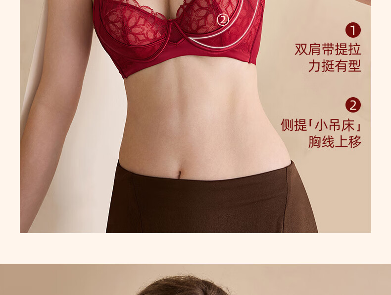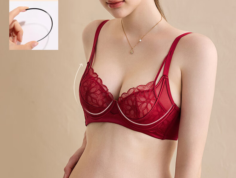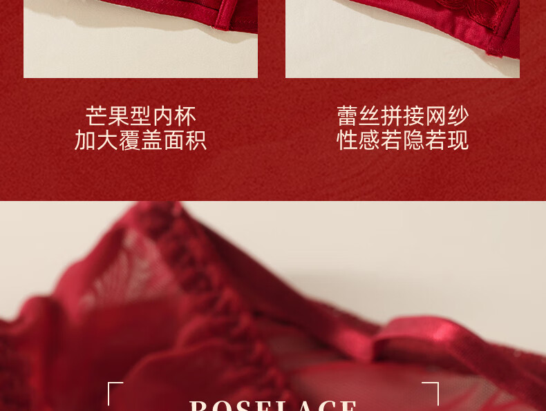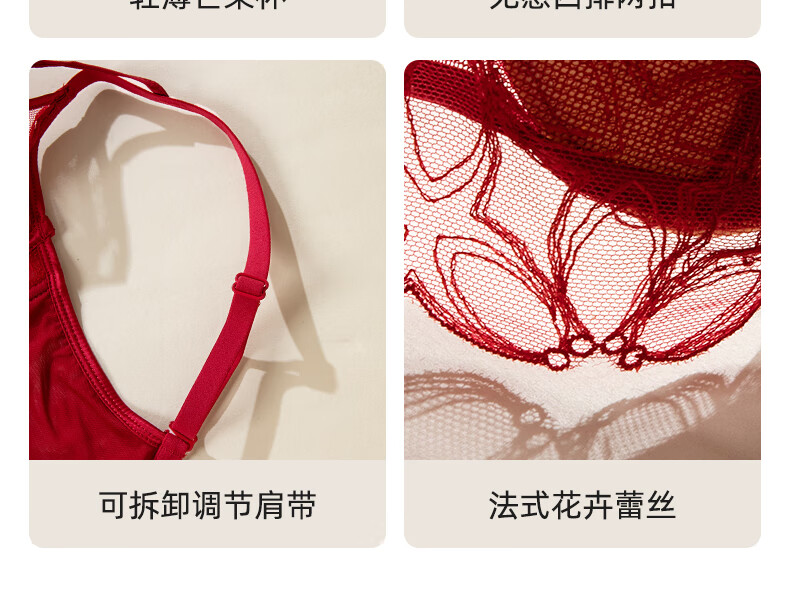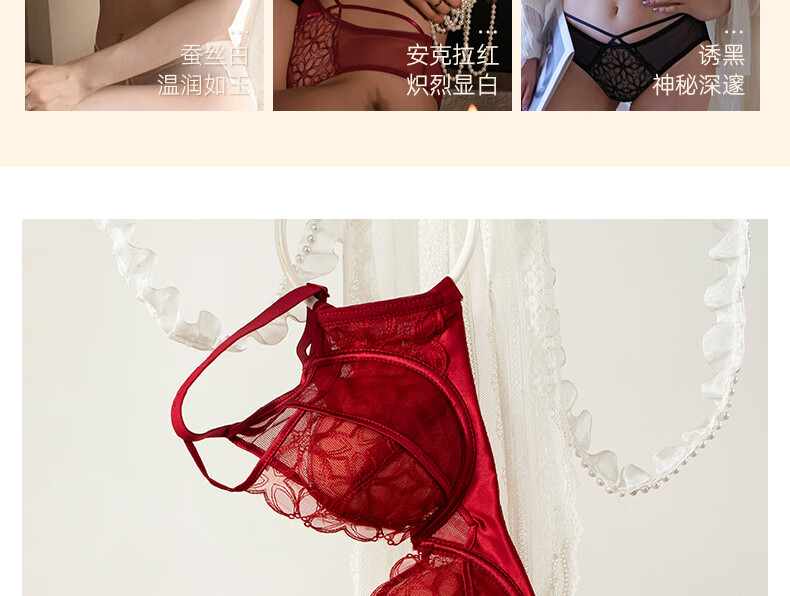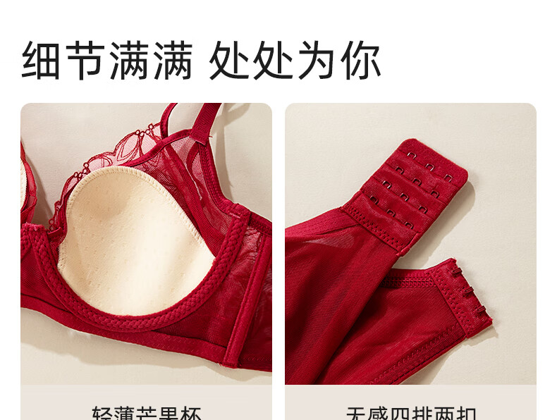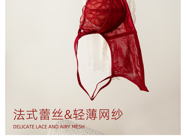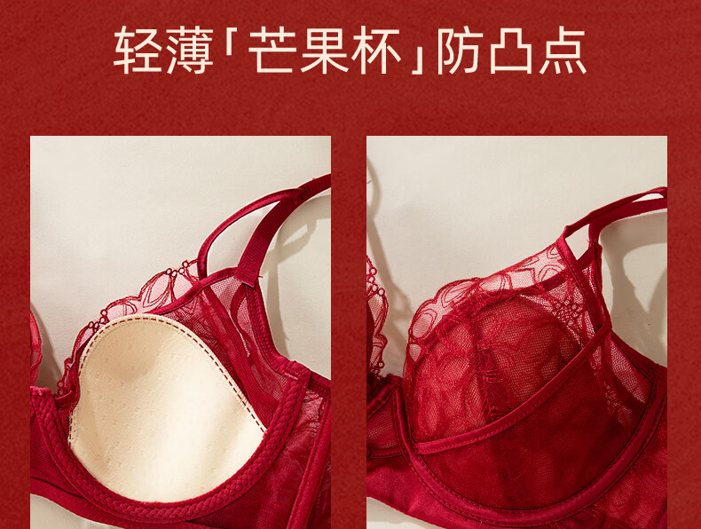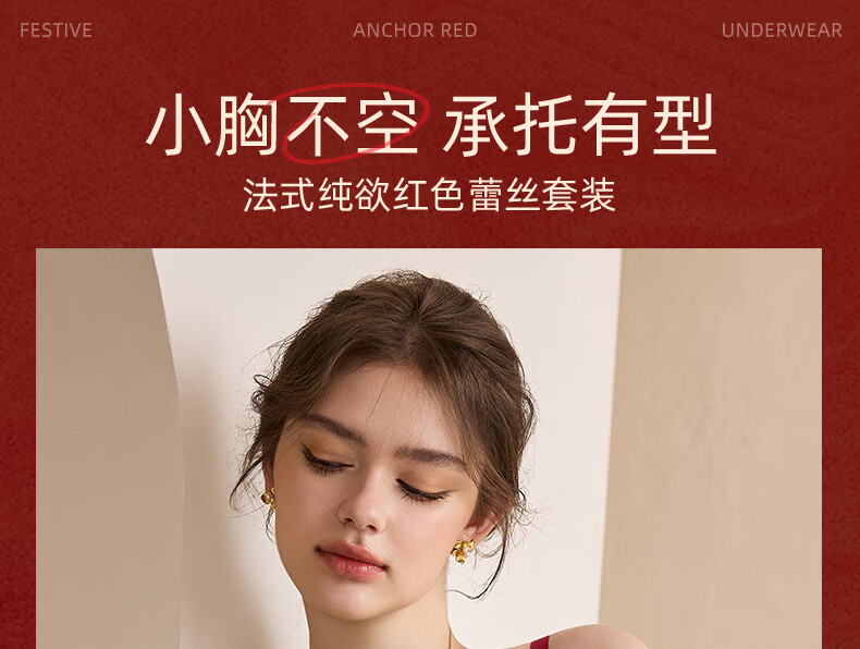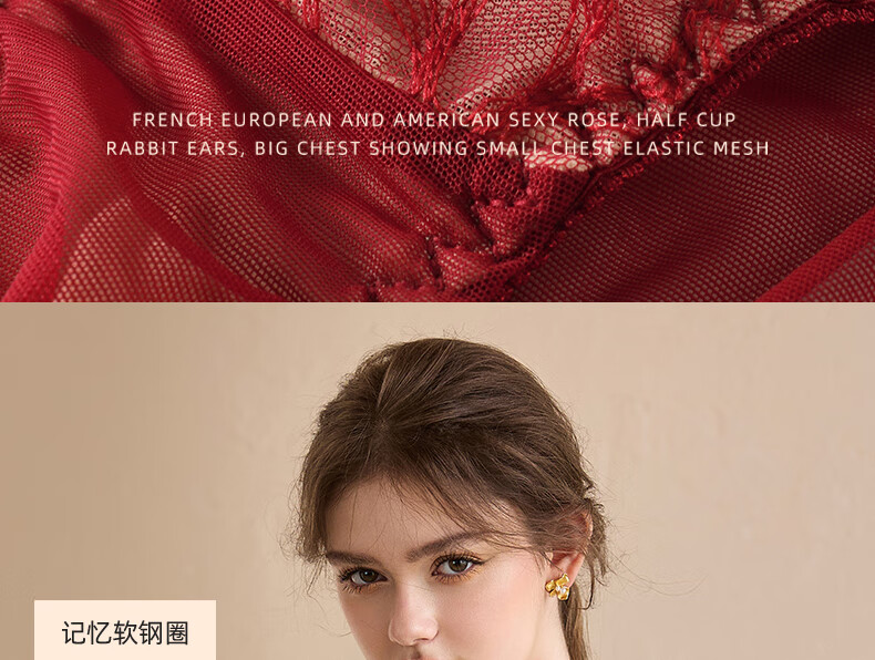 Ai Mu Autumn and Summer Zodiac Year Sexy Red Underwear Set for Women Push Up Small Breasts Soft Steel Ring Anti-Sagging French Lace Thin Bra Ancora Red (Please take one size larger) 85C 90 (90B)