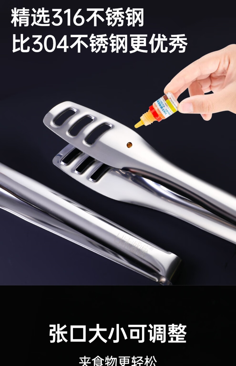 Jieyunmao one-piece 316 stainless steel clip thickened kitchen fried steak bread barbecue anti-scalding barbecue small size 316 clip