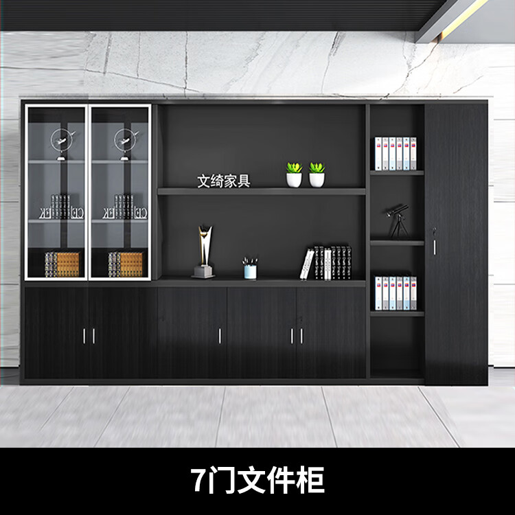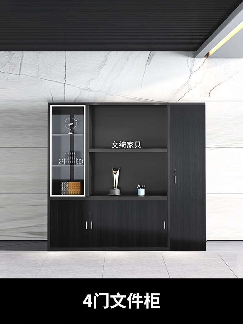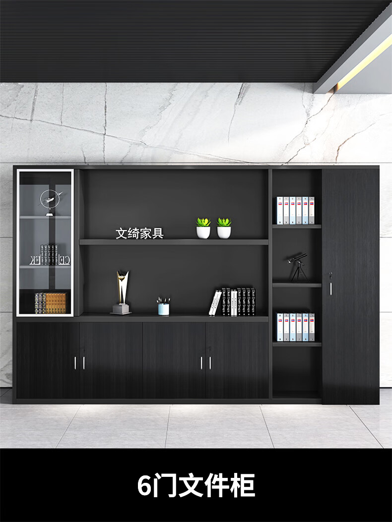 Ogisha office storage cabinet file cabinet wardrobe wooden information cabinet with lock black storage background high cabinet bookcase against the wall six doors (installation included)