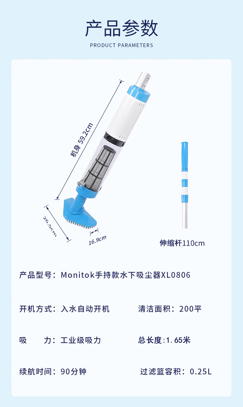 Monitok swimming pool handheld wireless suction machine cleaning robot underwater vacuum cleaner full pool cleaning artifact M8 (full pool/120 minutes)