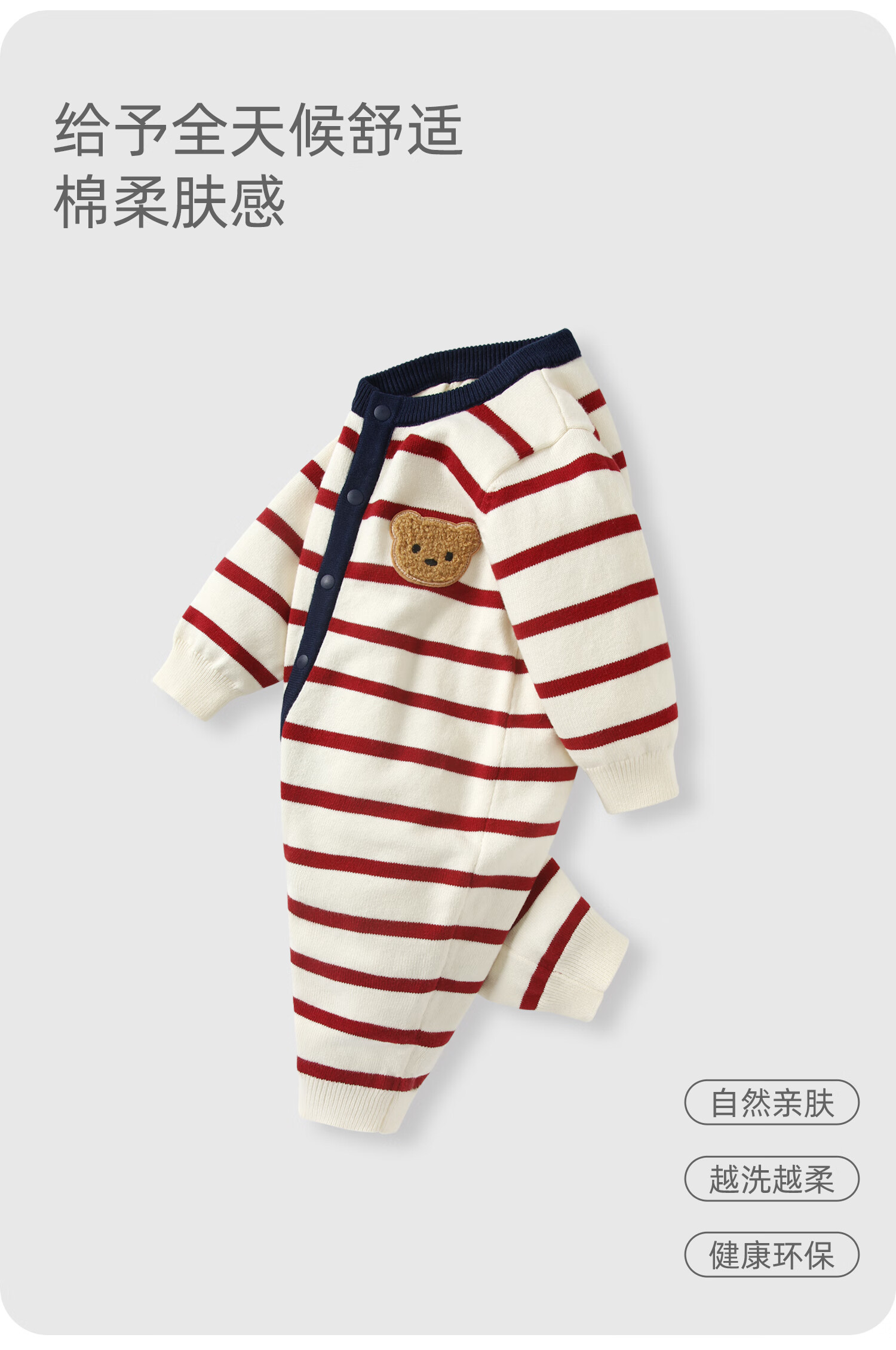 BORBOON B baby jumpsuit, autumn and winter clothes, velvet knitted sweater for baby boy, small month old New Year's greeting winter clothing, velvet 7639 73cm