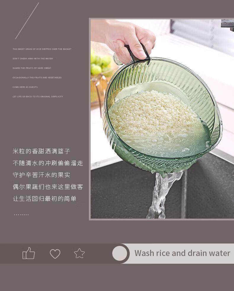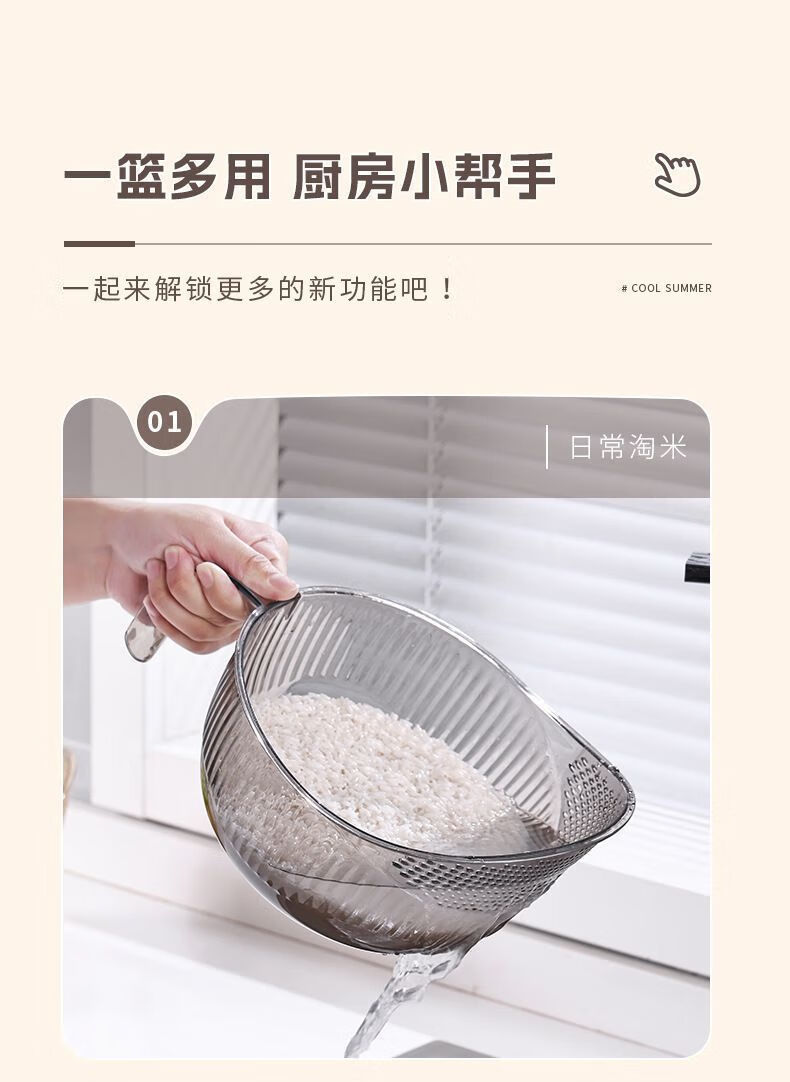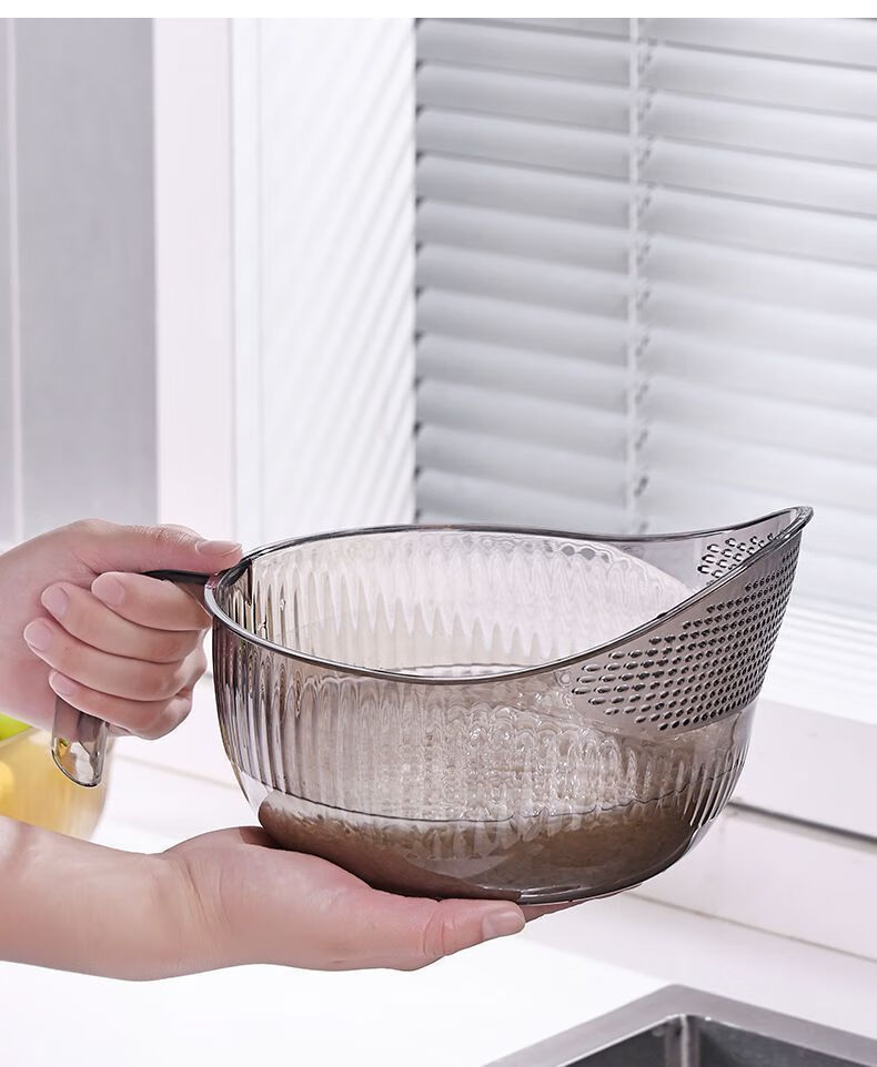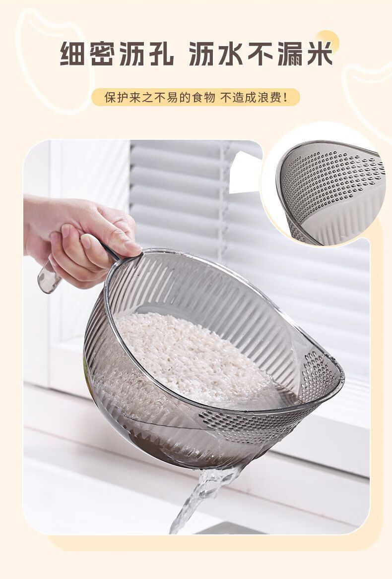 Beimu Xing rice washing artifact, rice washing, fine hole, vegetable washing, kitchen draining, household handle, multi-functional fruit and rice washing basin, multi-functional fruit and rice washing basin, 1 piece