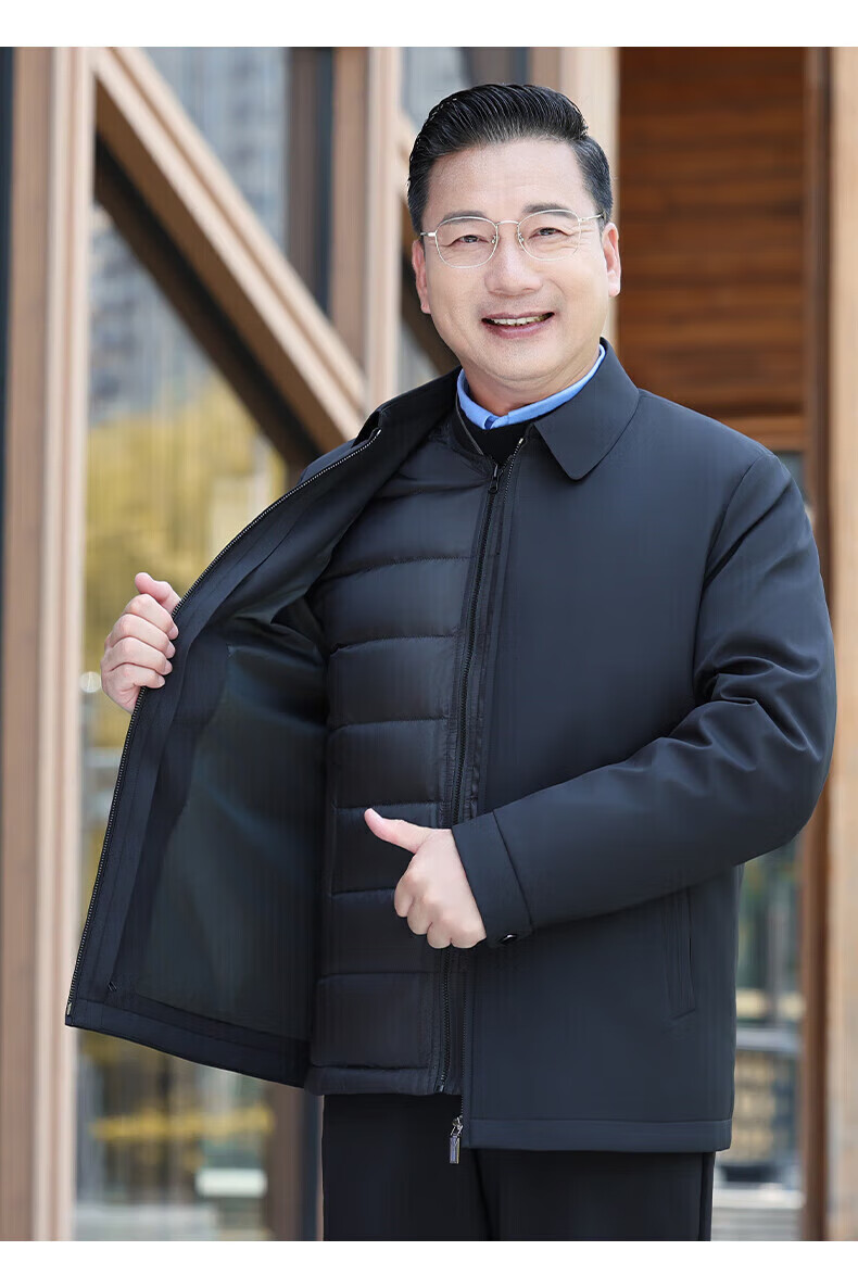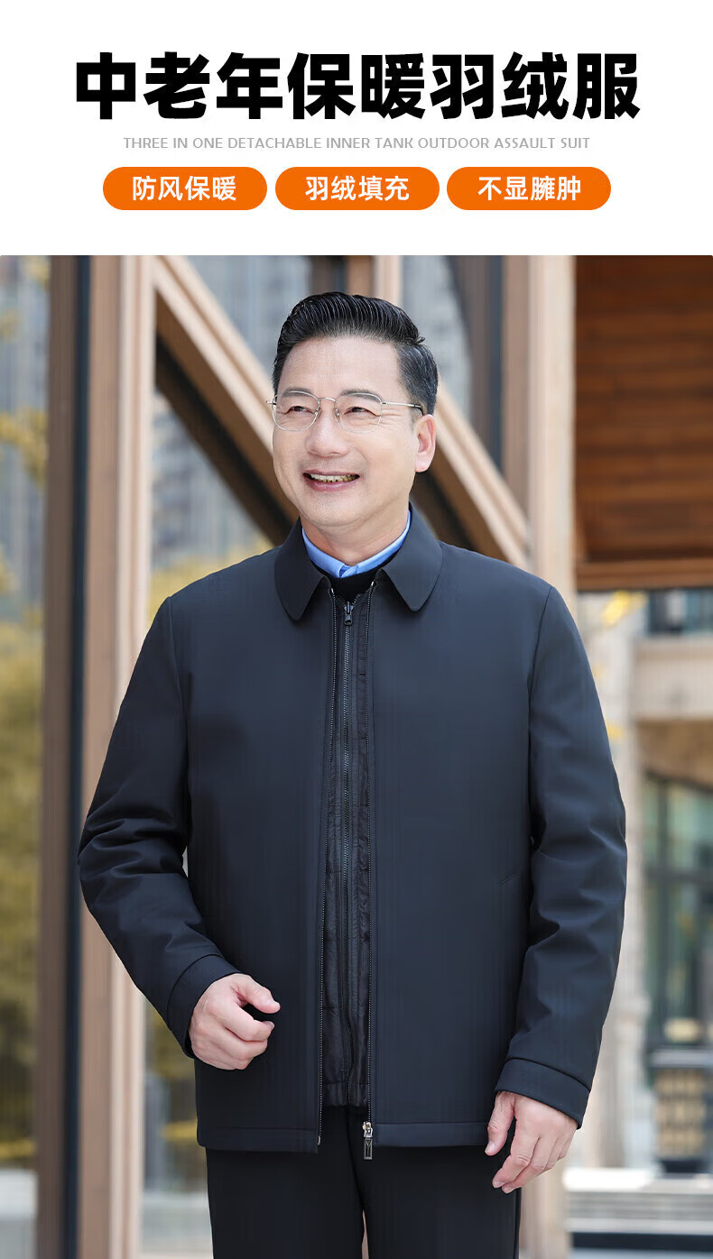 YAYA Down Jacket Men's Short 2025 Winter New Business Casual Lapel Removable Liner Warm Thick Jacket JH Black XL (180)