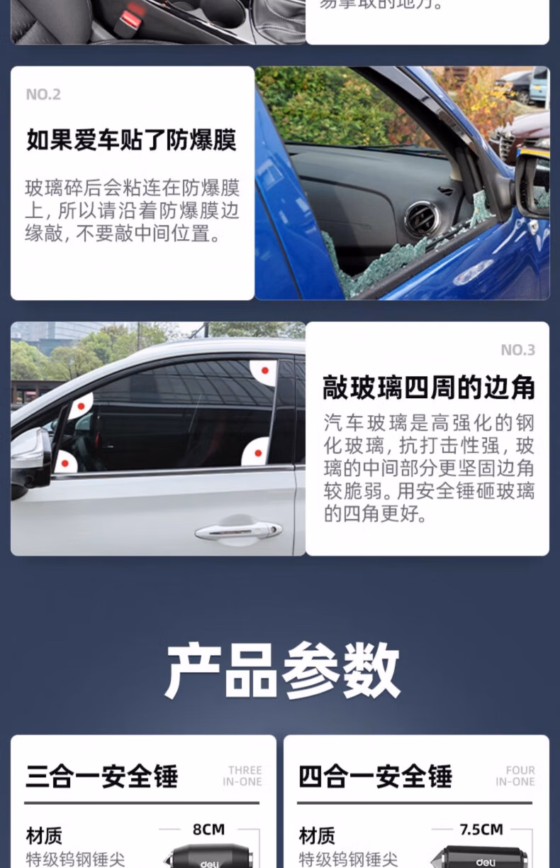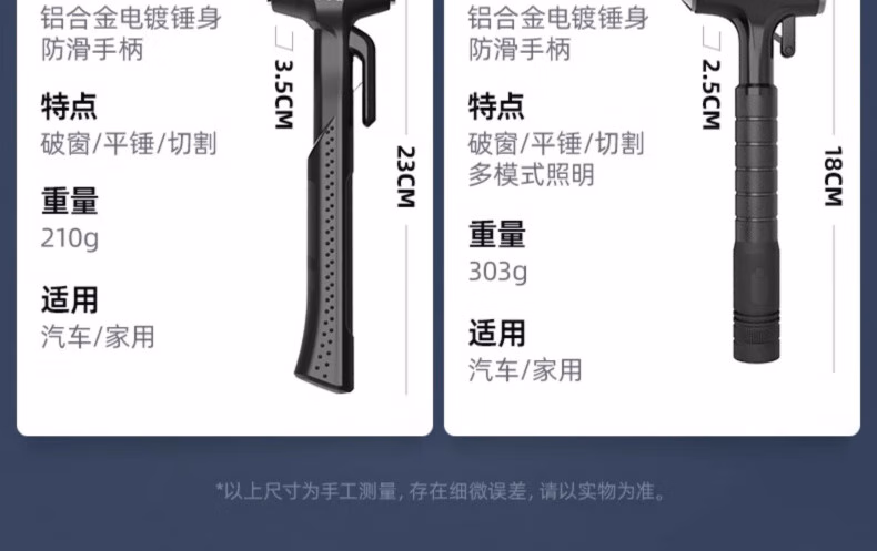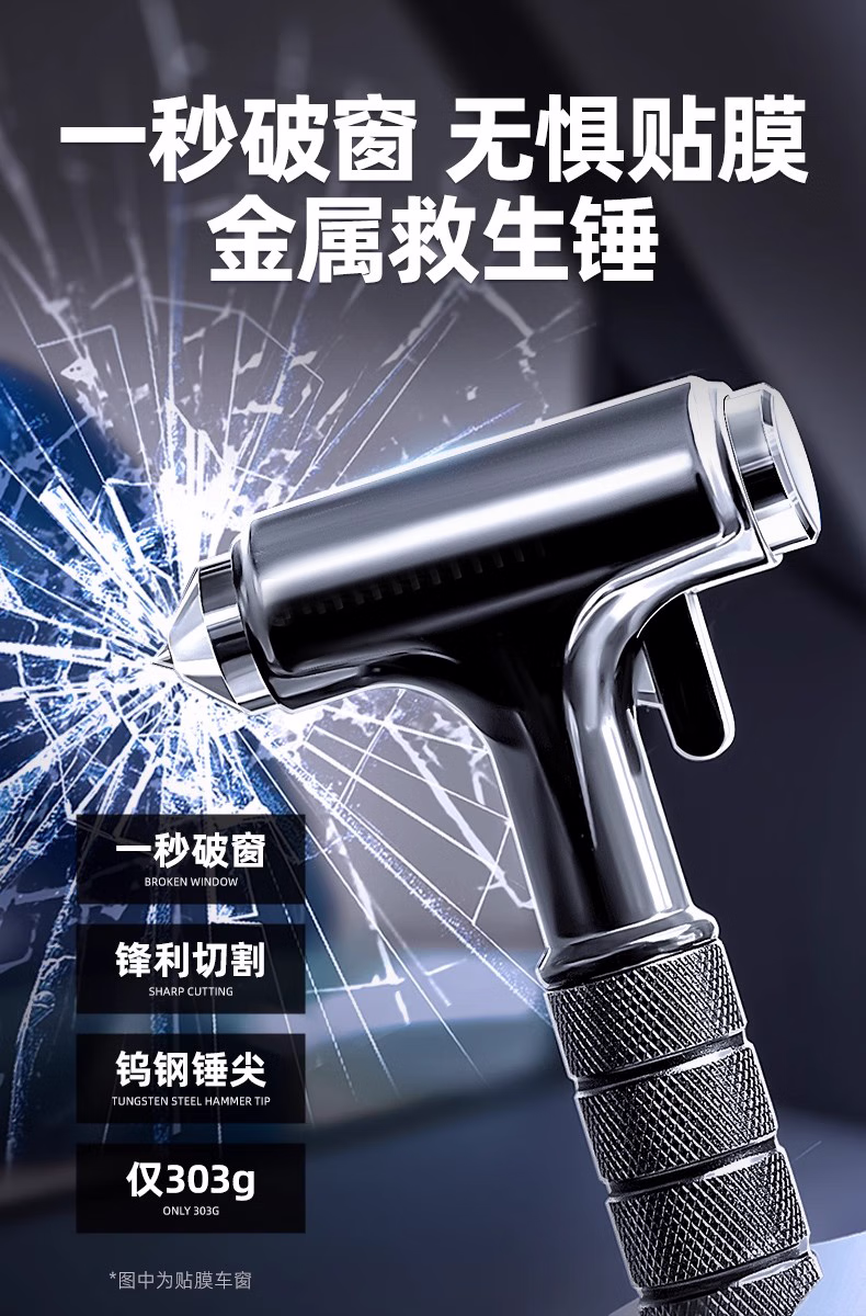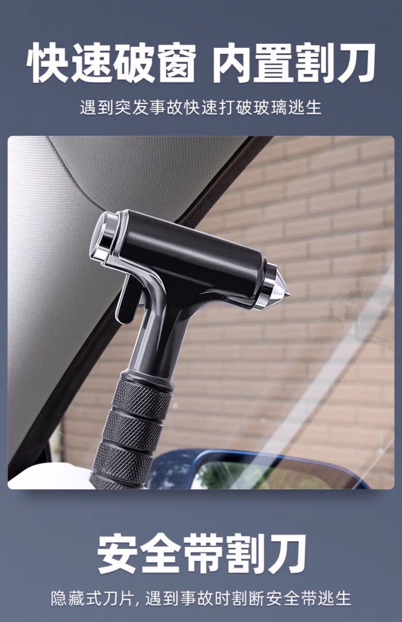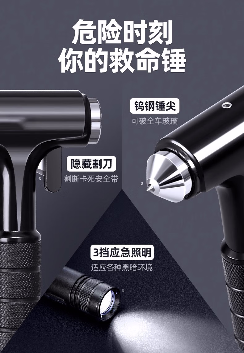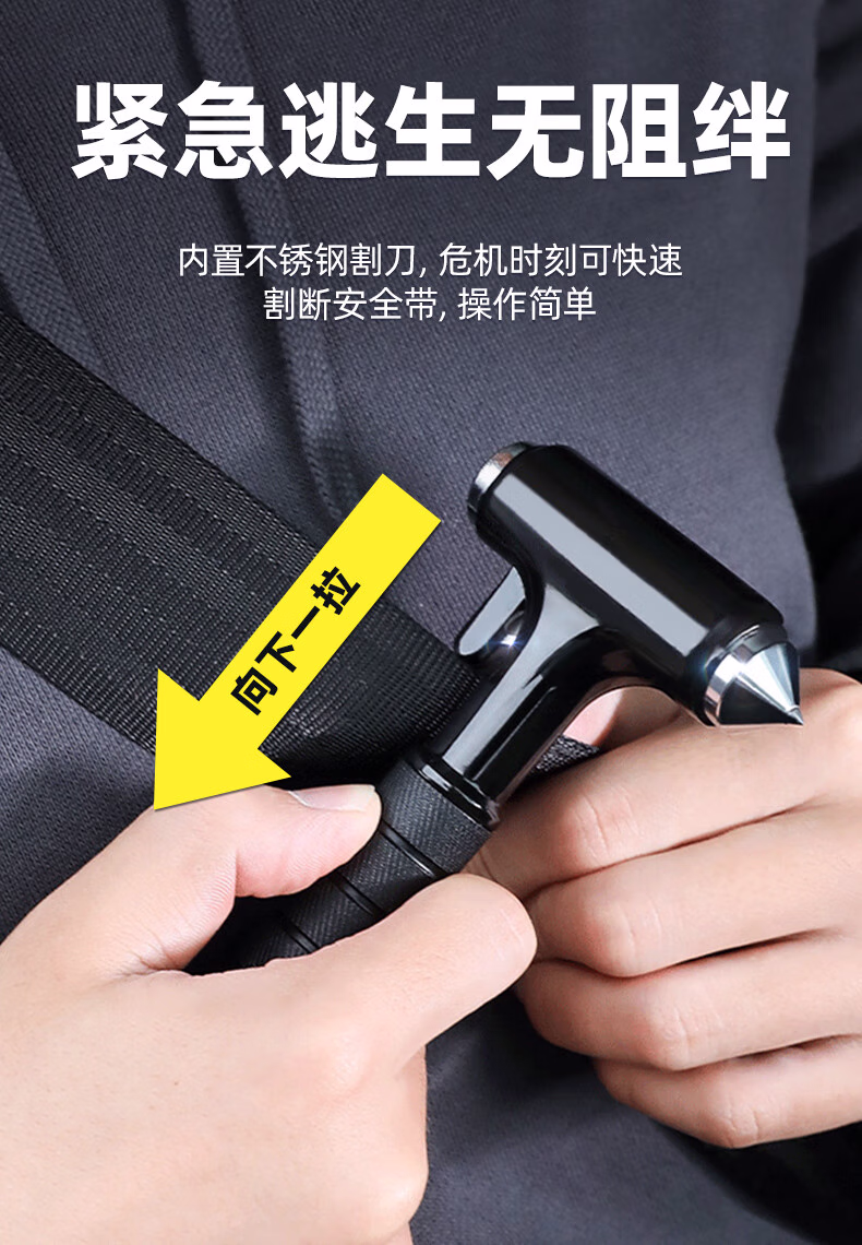 JCZS German safety hammer, car window-breaking artifact with cutter, fire emergency life-saving hammer for escaping from broken glass in the car, special grade tungsten steel, black three-in-one