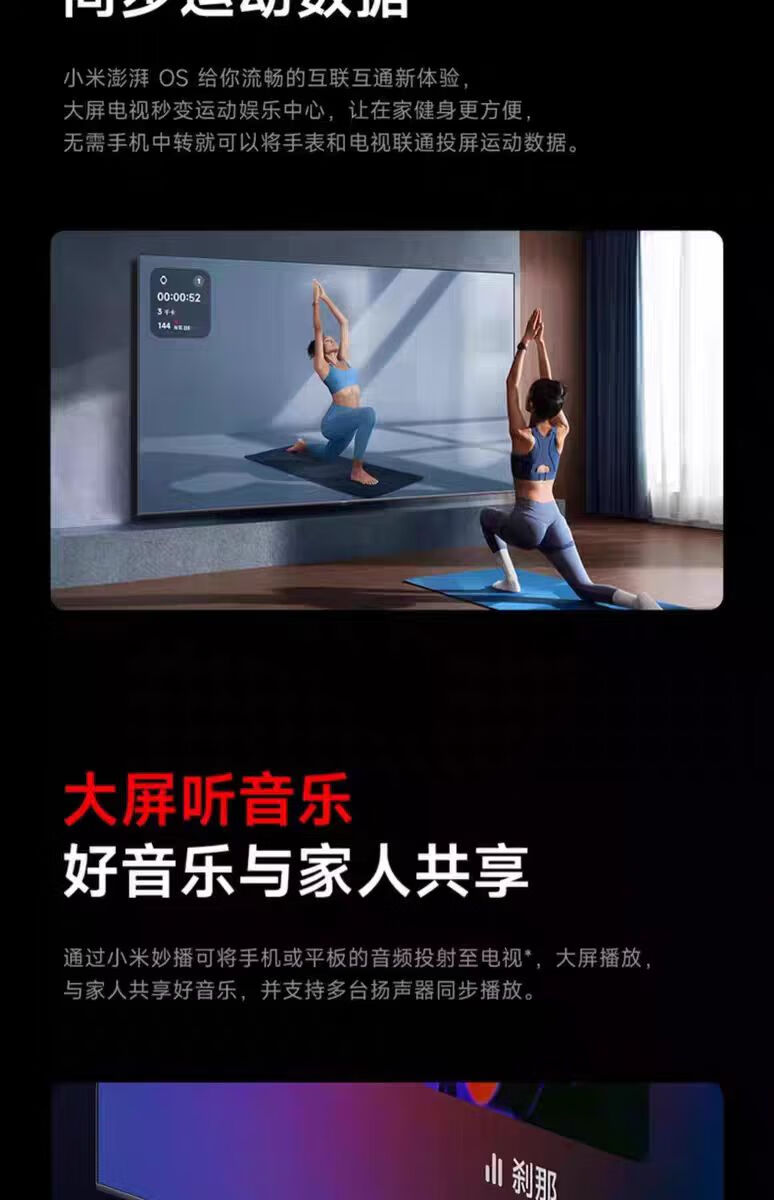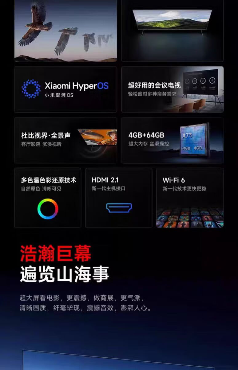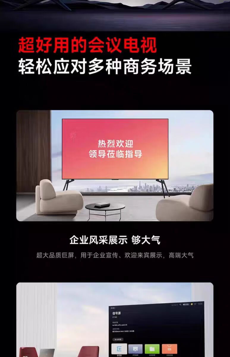Xiaomi (MI) 2025 new Xiaomi first-level energy efficiency 100-inch MAX network LCD home high-definition smart 85-inch flat-panel TV 75-inch length 168 height 98 full screen without borders