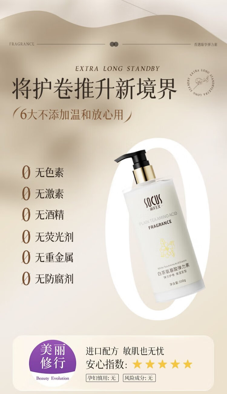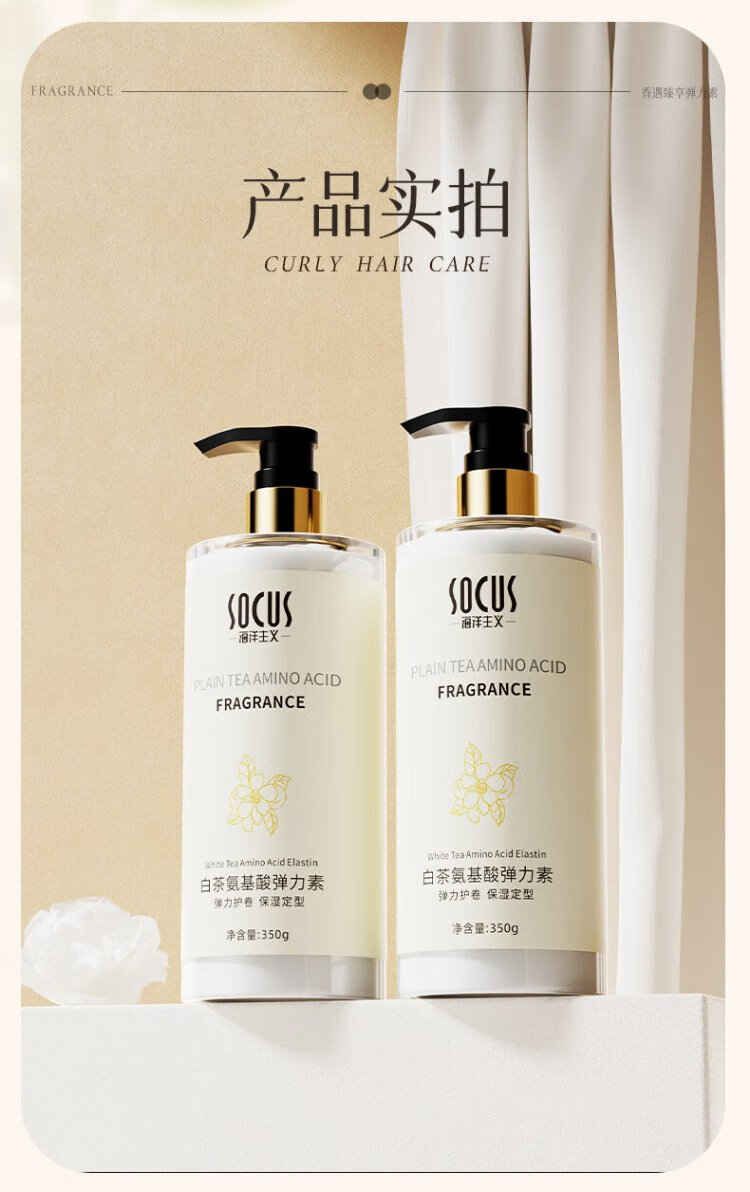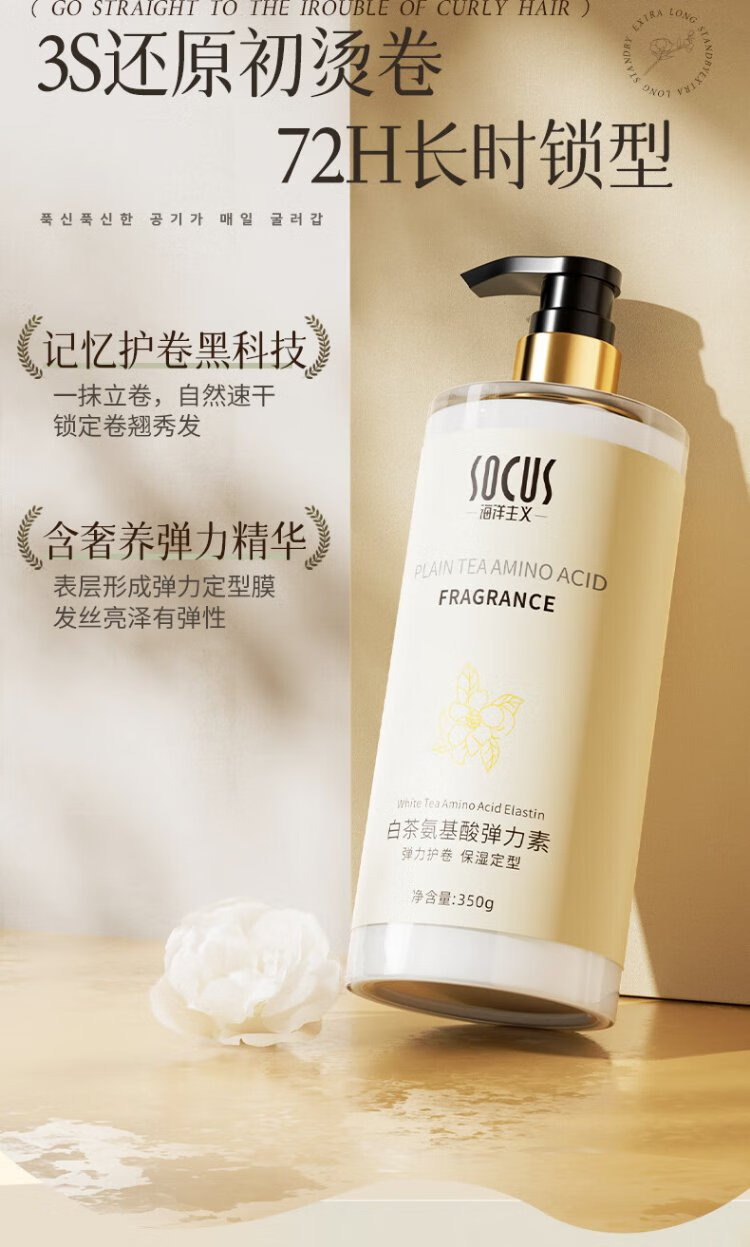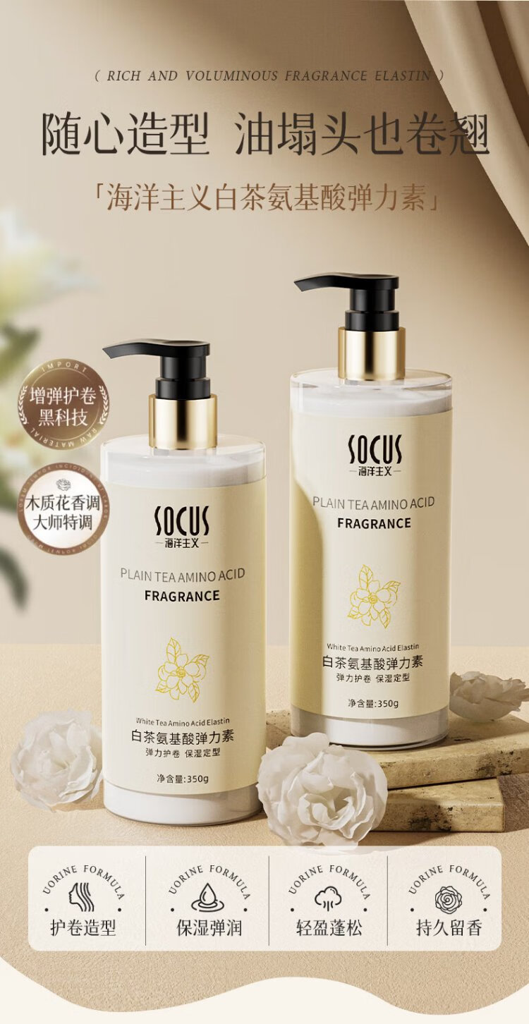 Oceanism SOCUS elastin curly hair moisturizing protector anti-frizz fluffy styling perm care special care tool no need to wash, nourishing hair care white tea amino acid elastin 350g*2 bottles