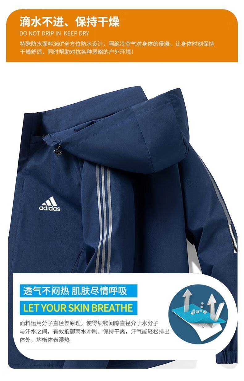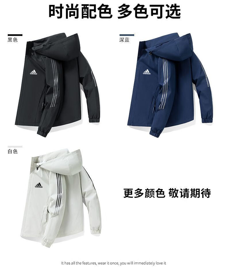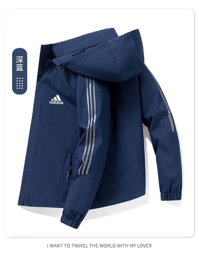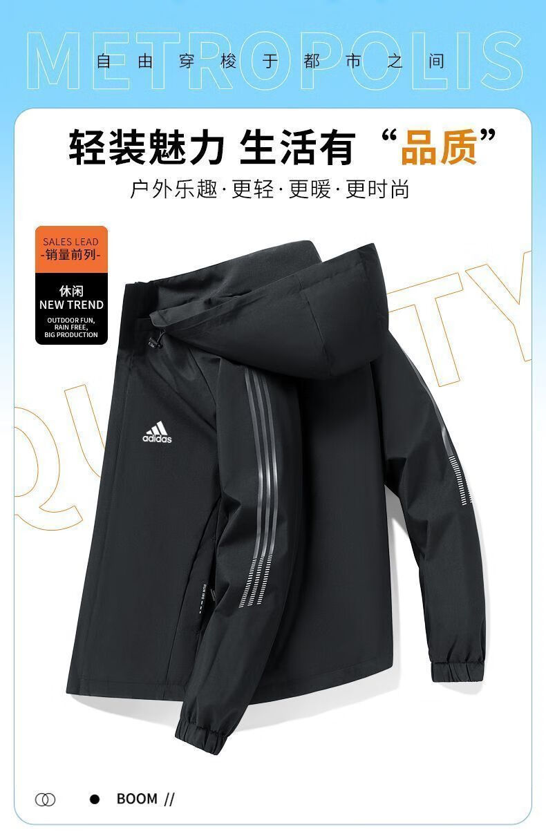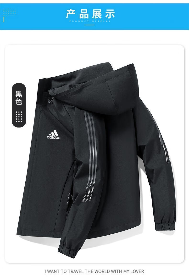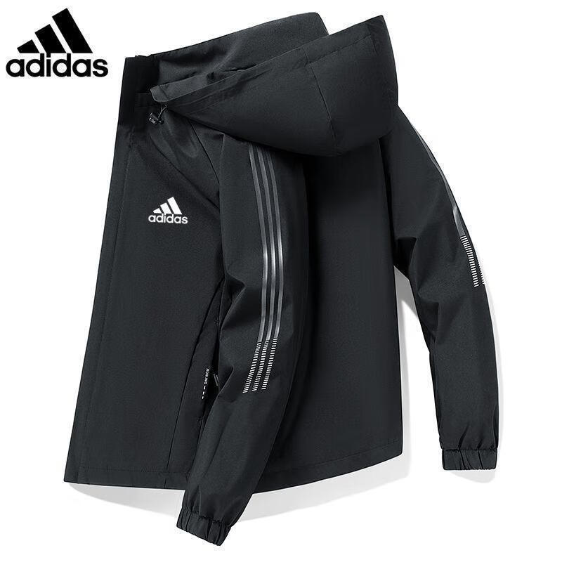 Adidas (adidas) Clover Jacket Men's Spring and Autumn New Casual Versatile Velvet Jacket Outdoor Windproof AD96 Black (Removable Cap) 3XL 155-170Jin Jin is equal to 0.5 kg