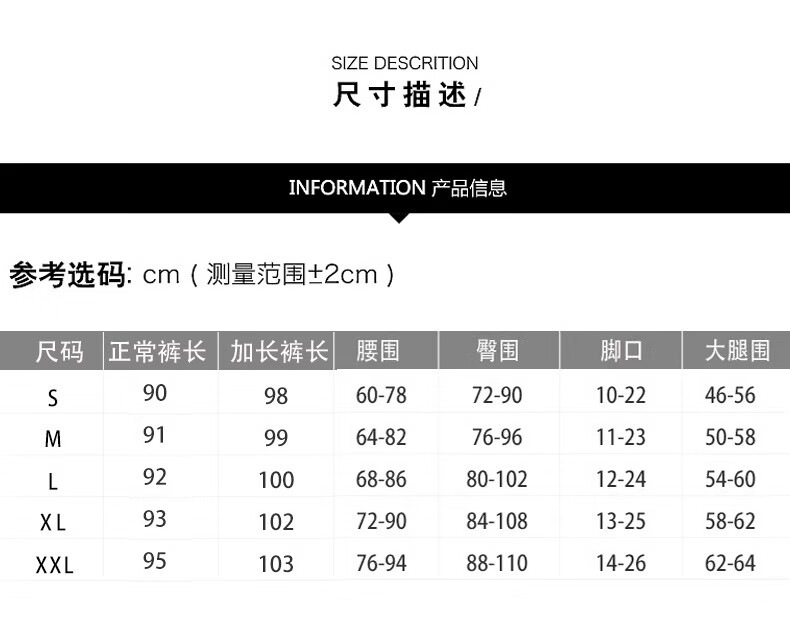 Outseam (cm) 99 cm 101.5 cm 104 cm 106.5 cm 109 cm