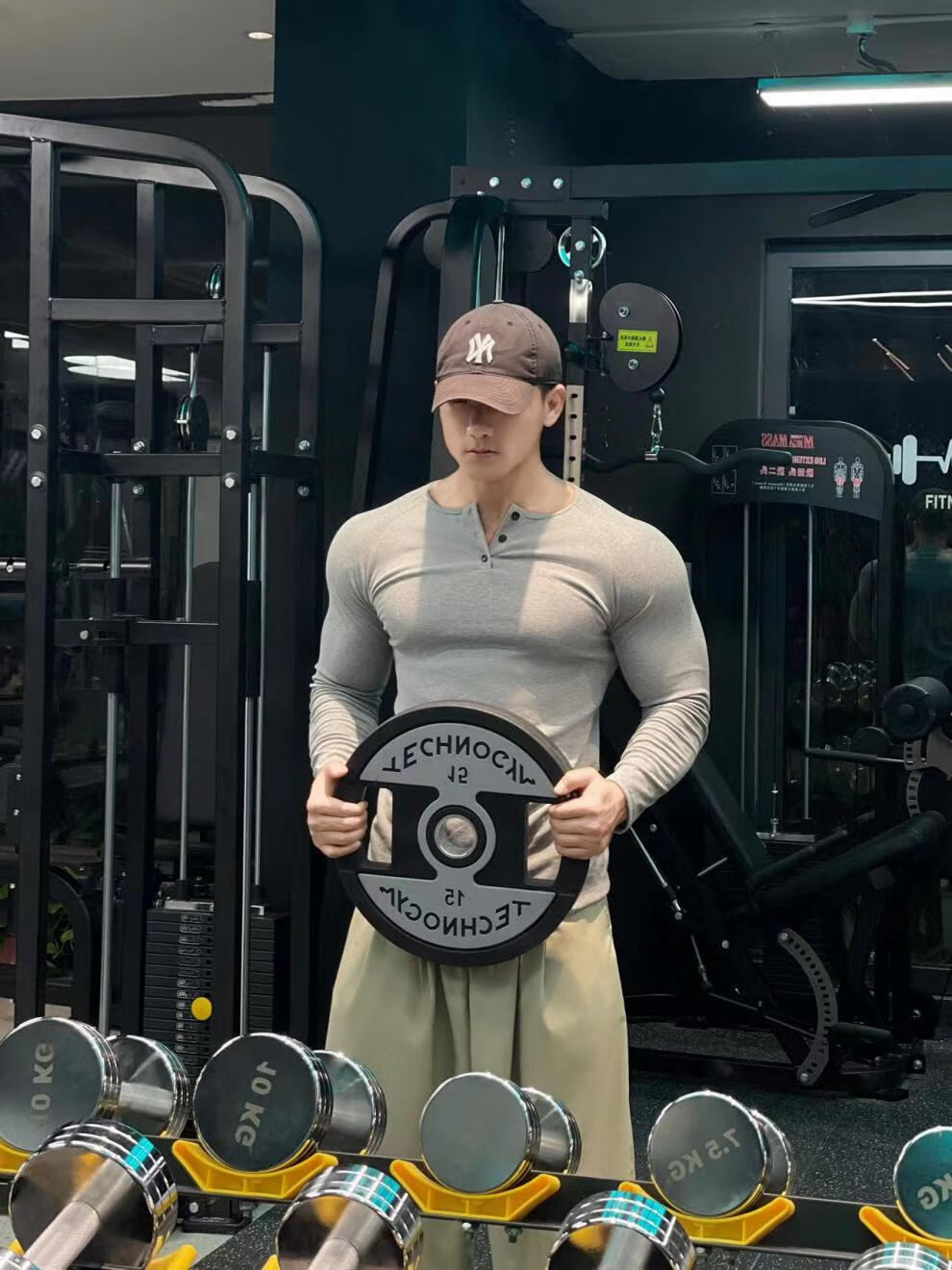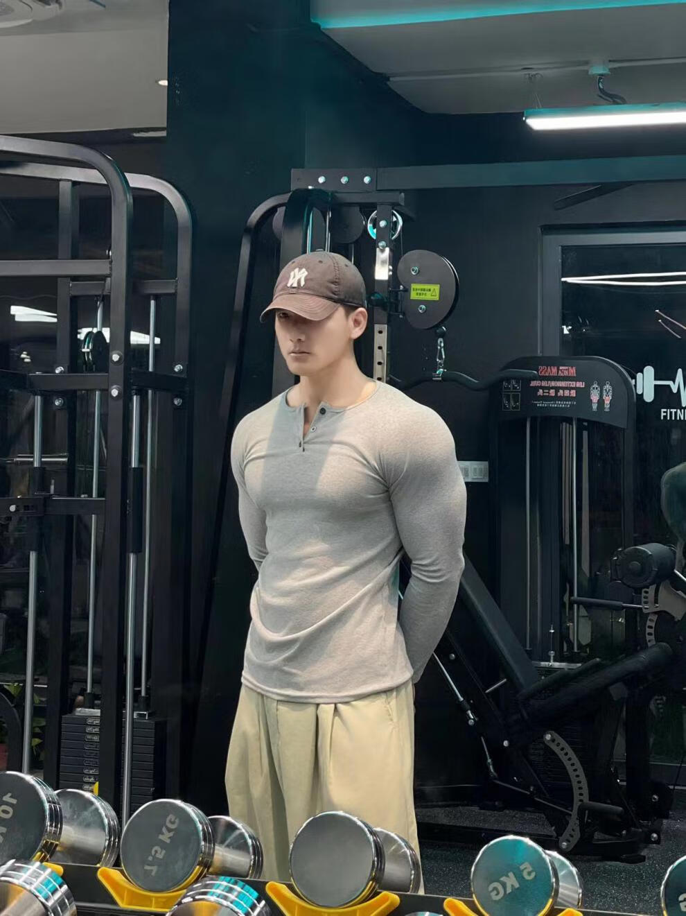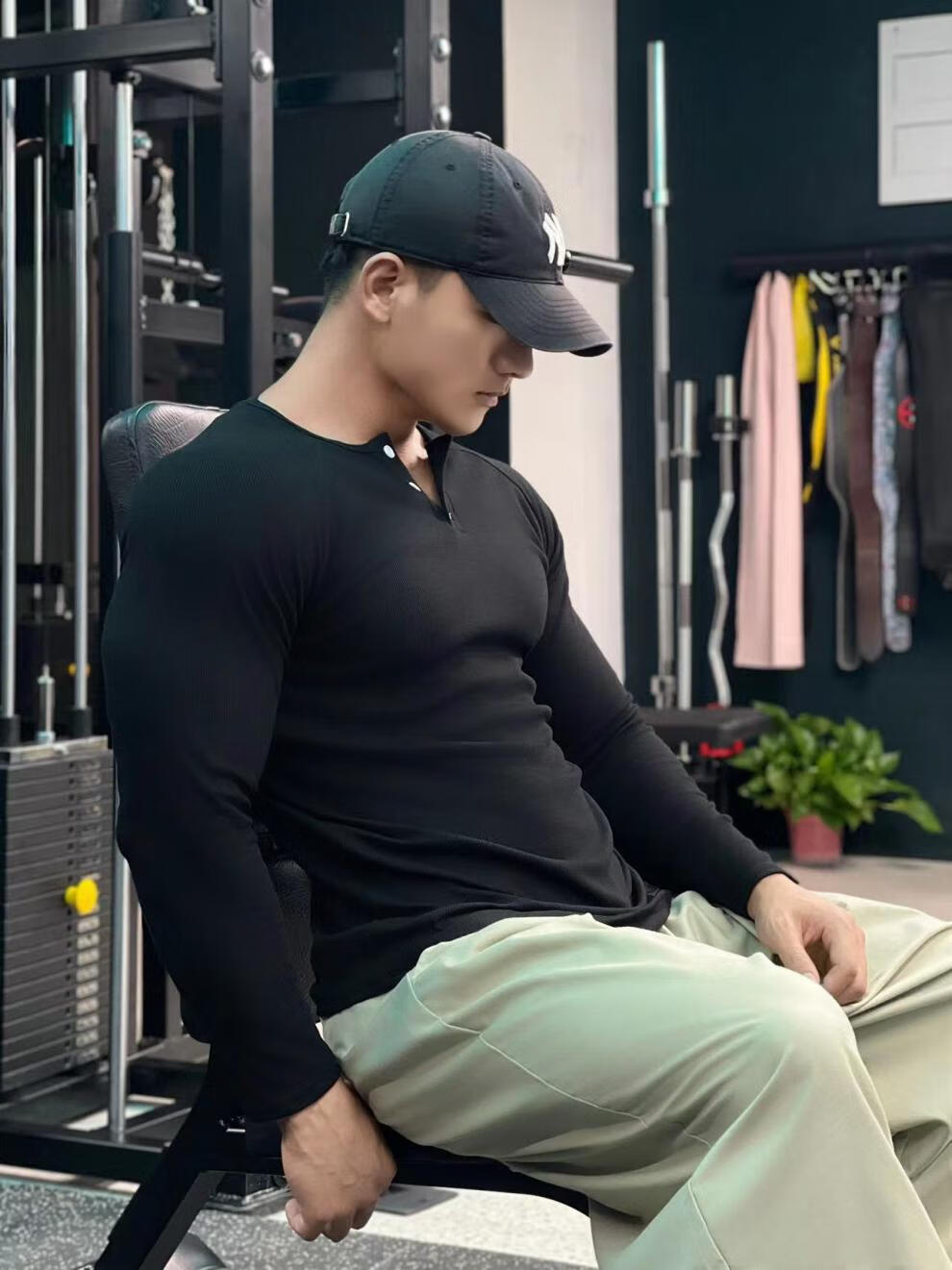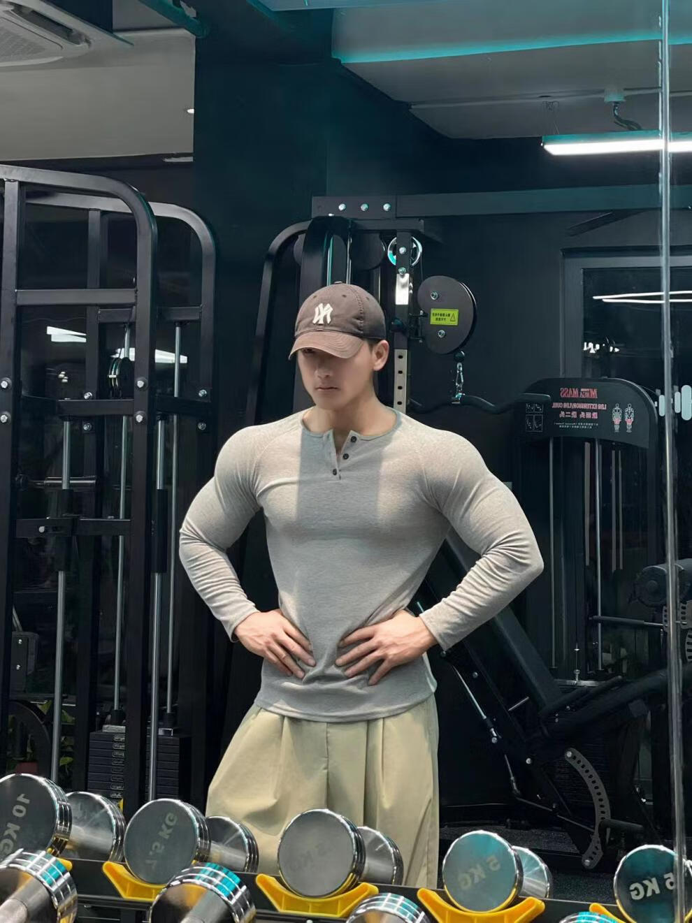 Chuangjingyi chooses fitness long-sleeved American Henry shirt long-sleeved threaded cotton retro men's tough guy raglan fitness show big Henry collar T Henry short-sleeved (black) M suitable for 50-60kg_tight slim fit