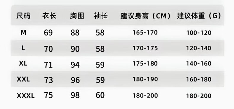 China (cm) 160-165/84-86 165-170 / 88-90 167-172 / 92-96 168-173 / 98-102 170-176 / 106-110