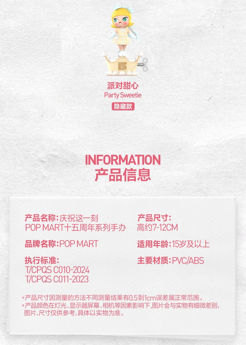 POP MARTPOPMART celebrates this moment POP MART 15th Anniversary Series Trendy Figure Blind Box 1 15th Anniversary Random Blind Box (New and Unopened)