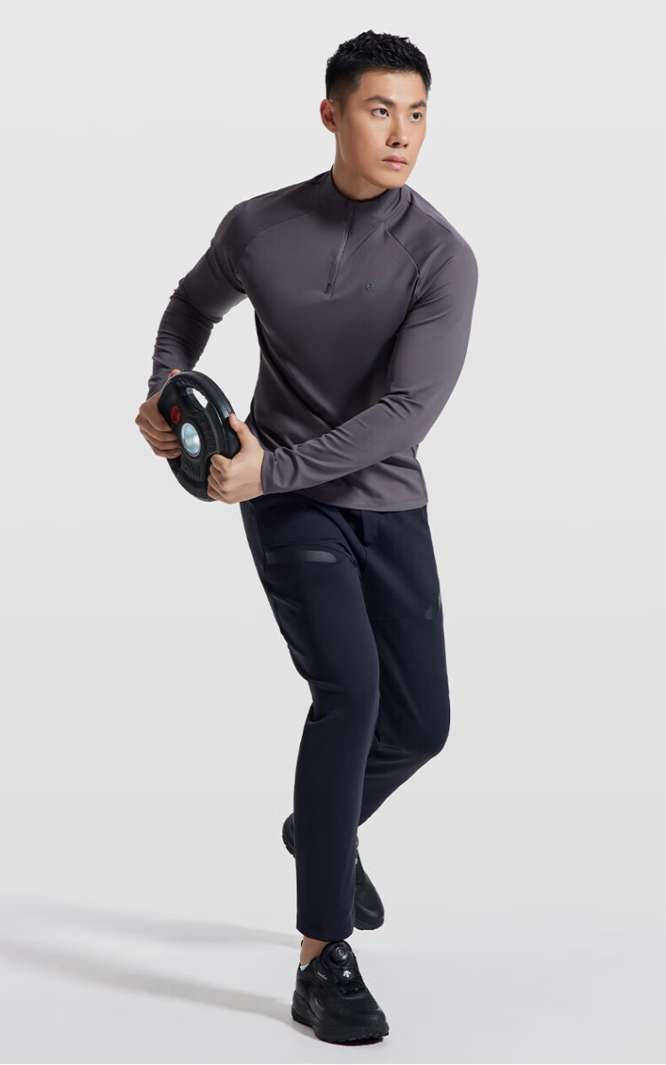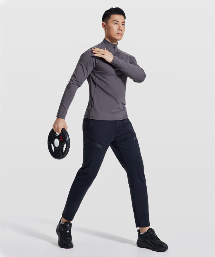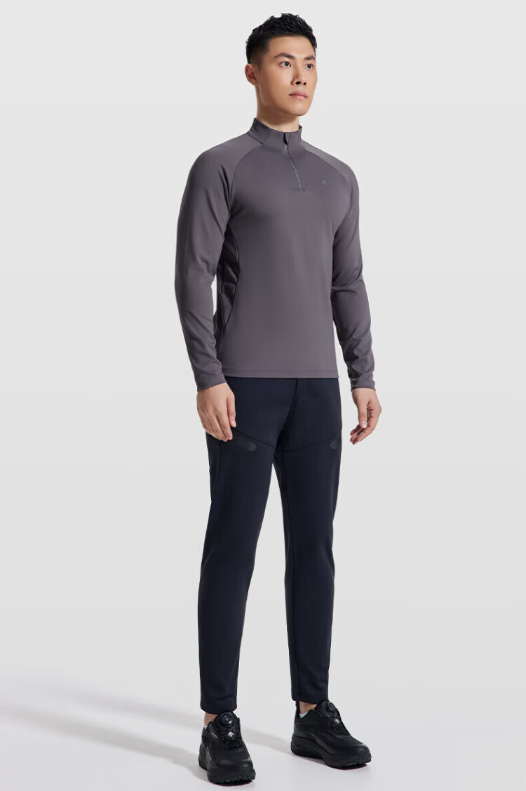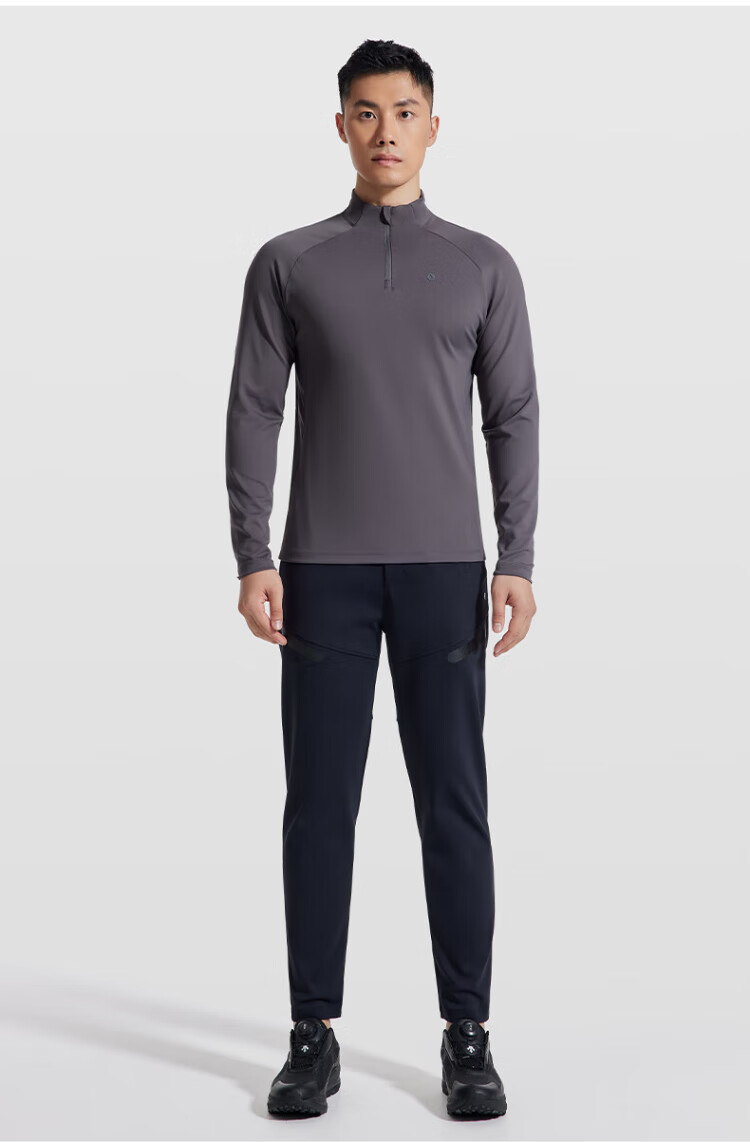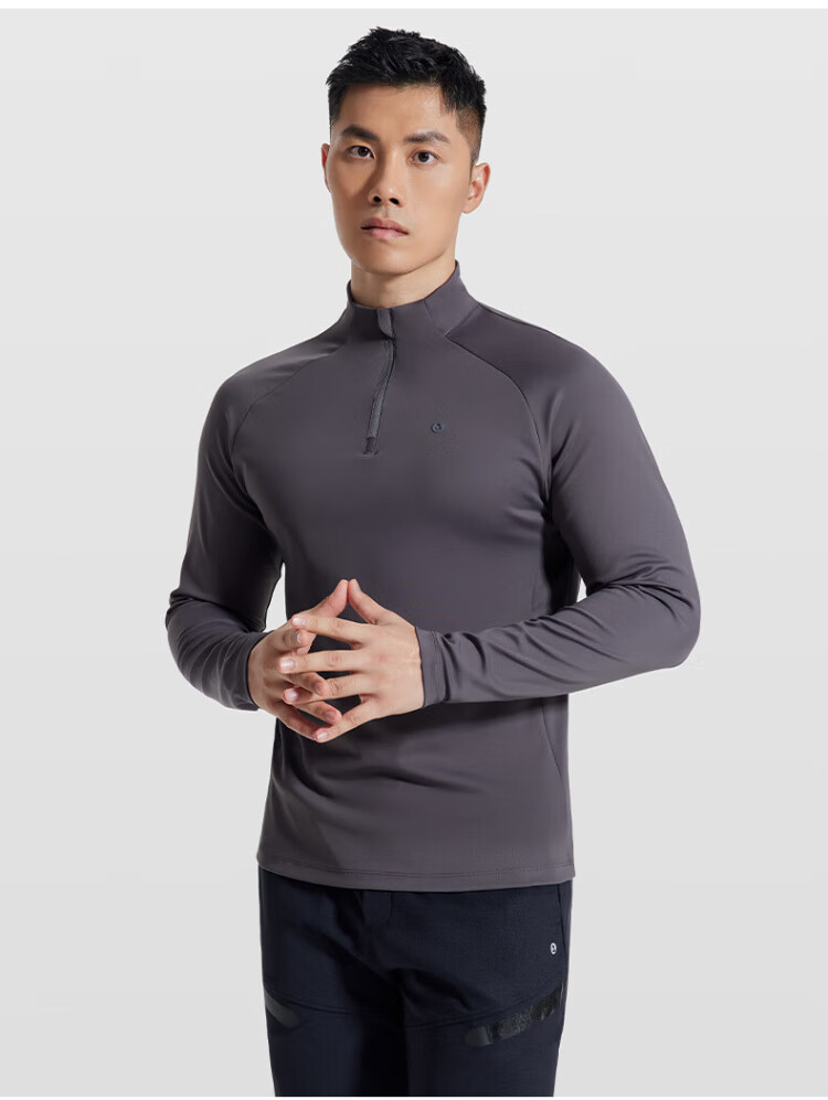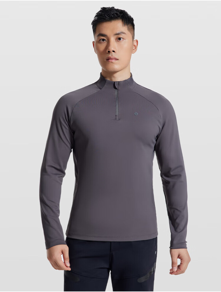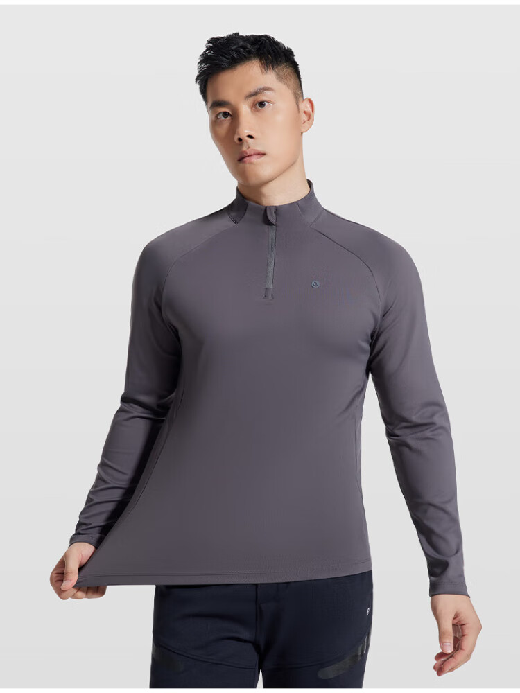 SOSOLEMON autumn and winter running long-sleeved men's half-zip comfortable and warm quick-drying training tennis badminton fitness sports bottoming shirt dark gray L