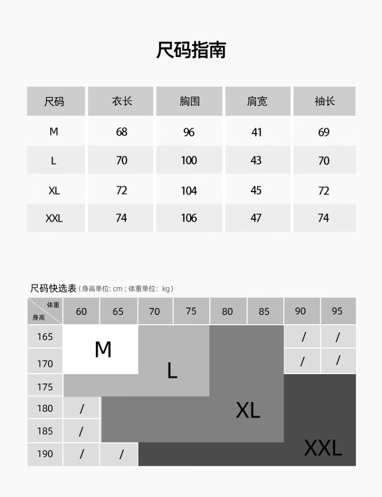 China (cm) 160-165/84-86 165-170 / 88-90 167-172 / 92-96 168-173 / 98-102 170-176 / 106-110