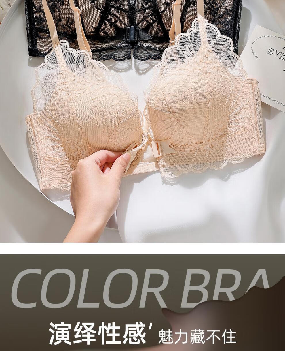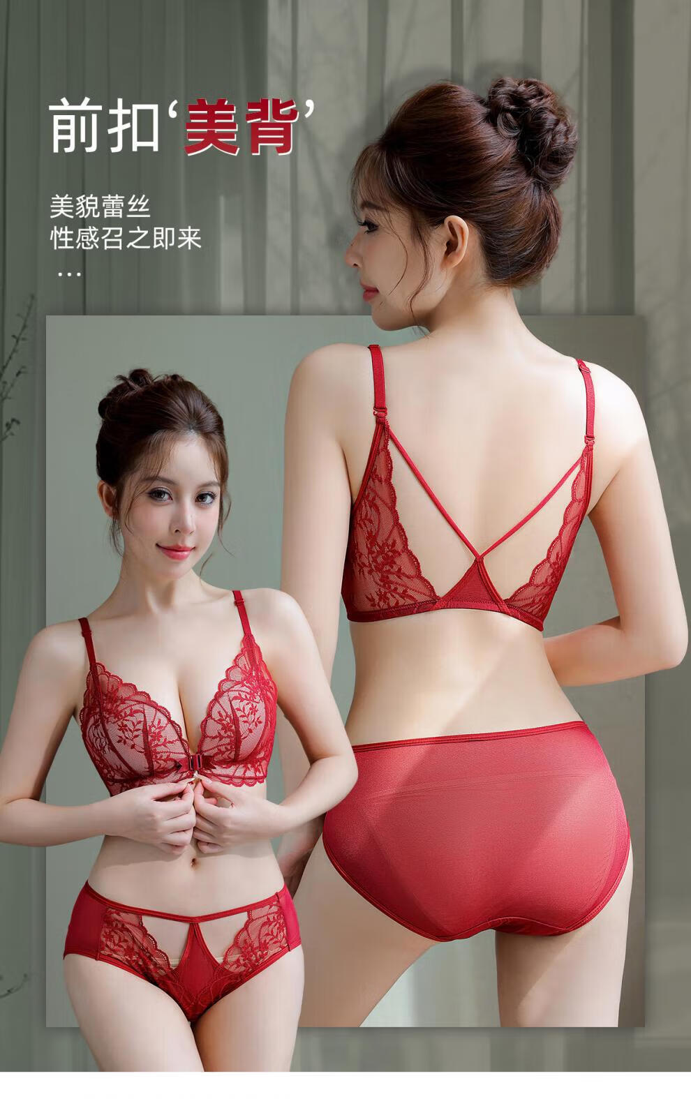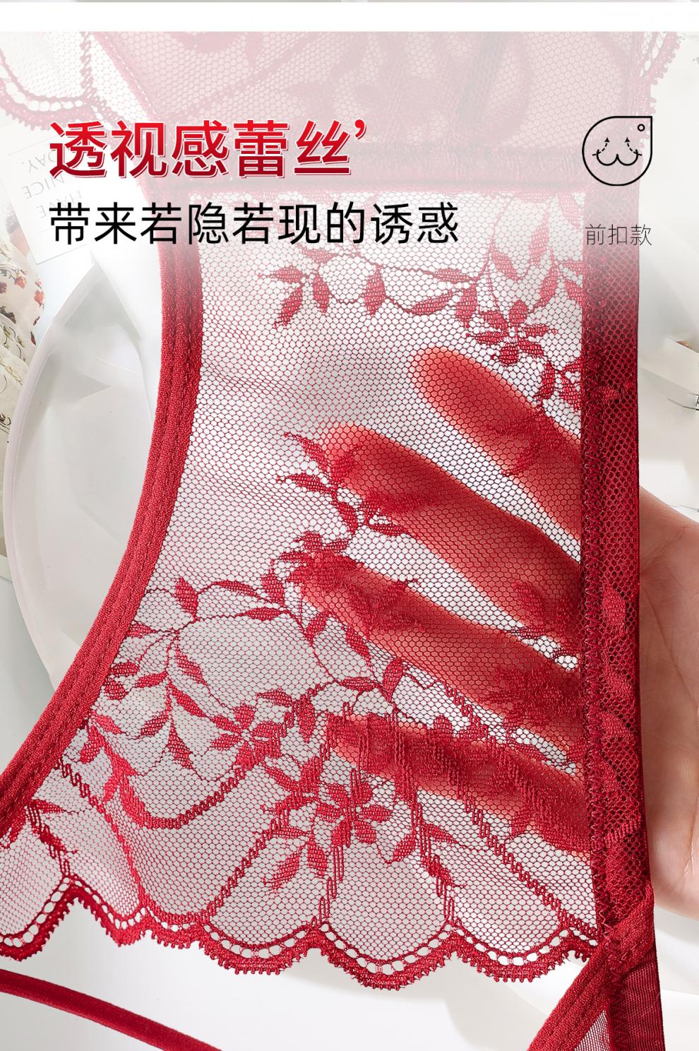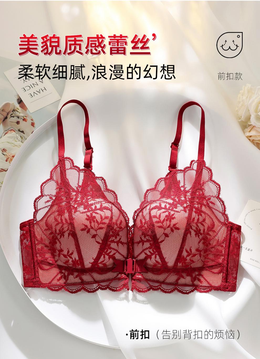 Pubusi brand sexy beautiful back bra for women, thin, small breasts, push-up, no rims, hollow lace, transparent front button bra set, burgundy single piece 85C 85/38C thin cup