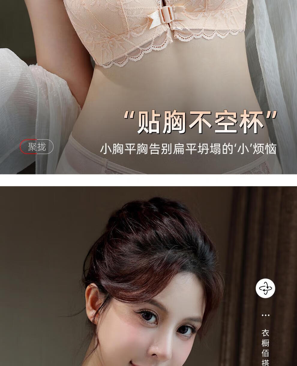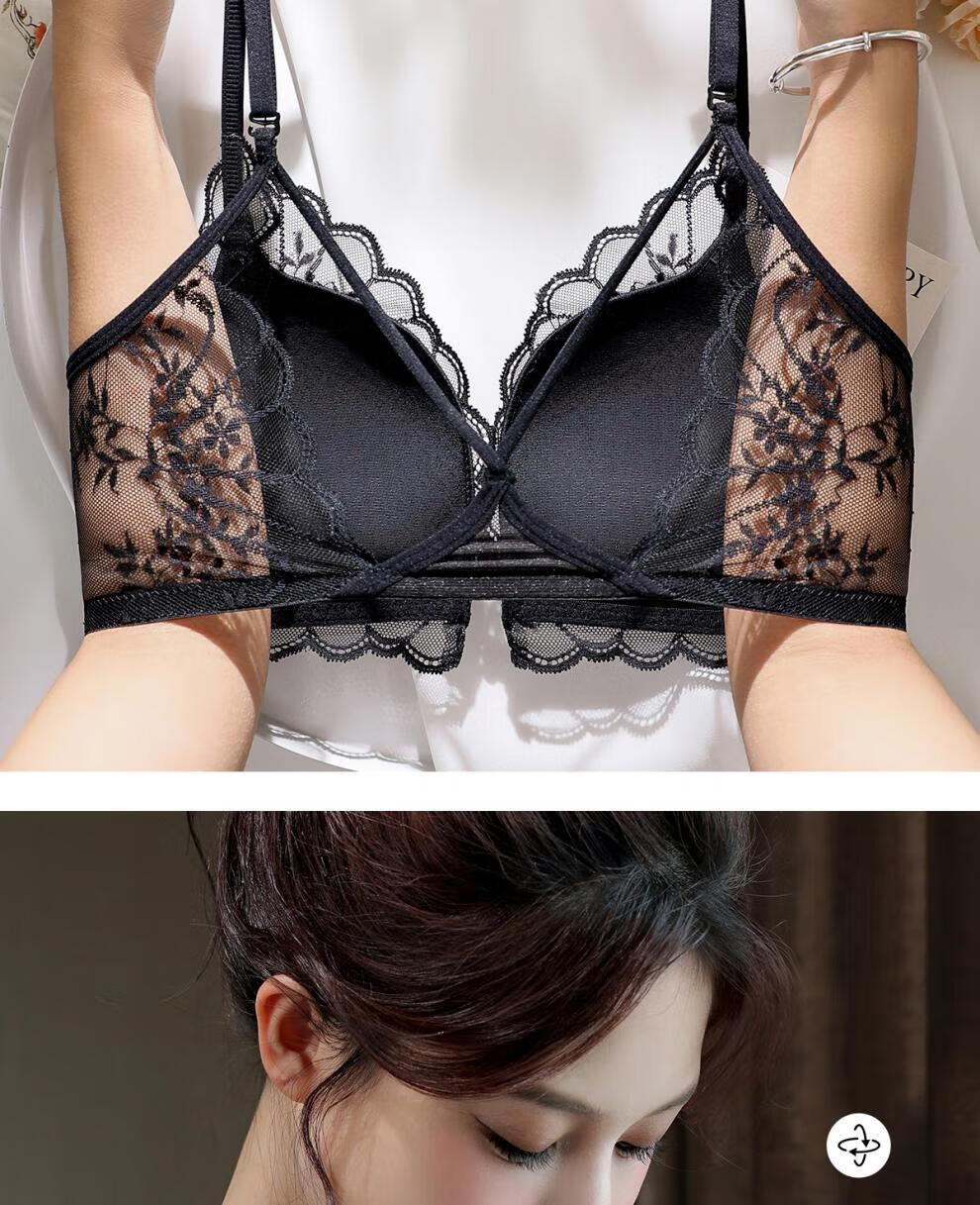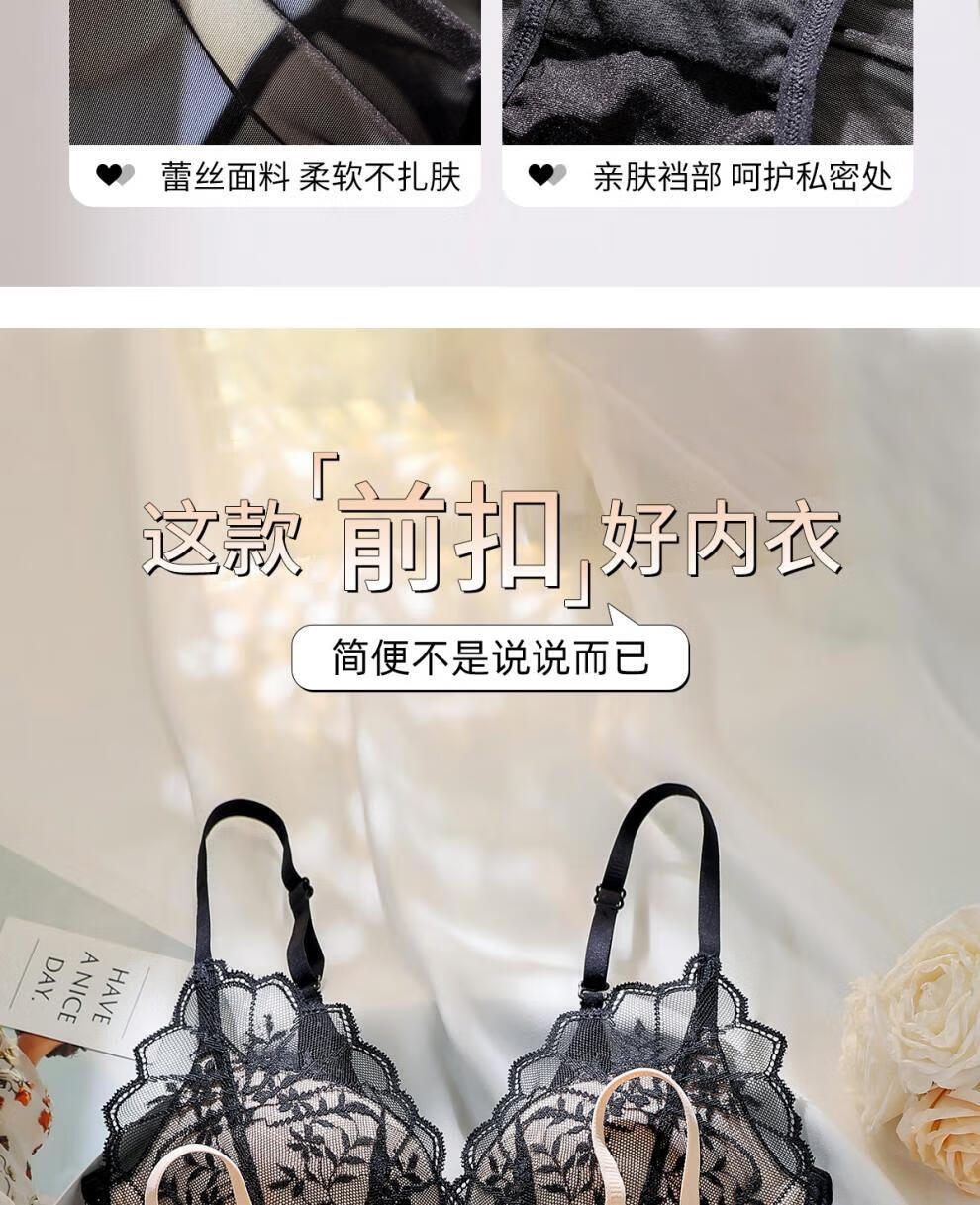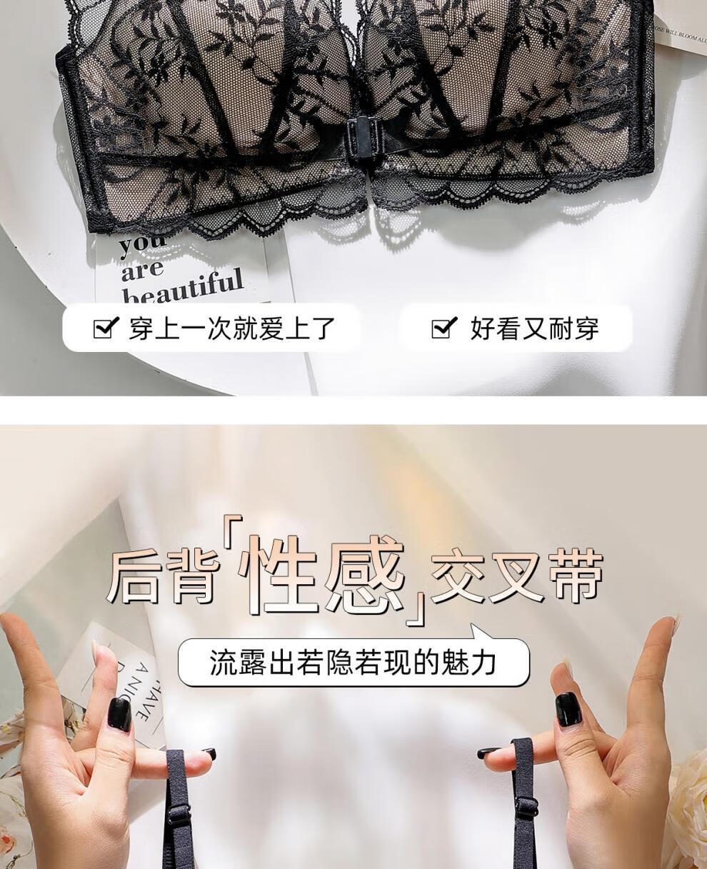 Pubusi brand sexy beautiful back bra for women, thin, small breasts, push-up, no rims, hollow lace, transparent front button bra set, burgundy single piece 85C 85/38C thin cup