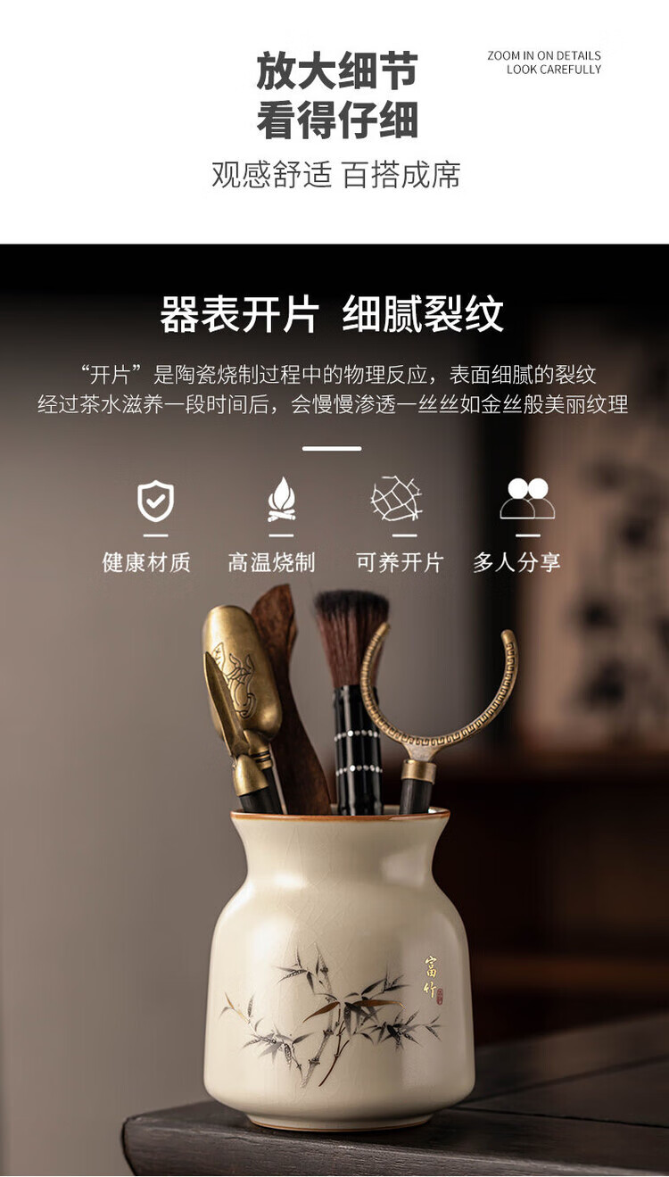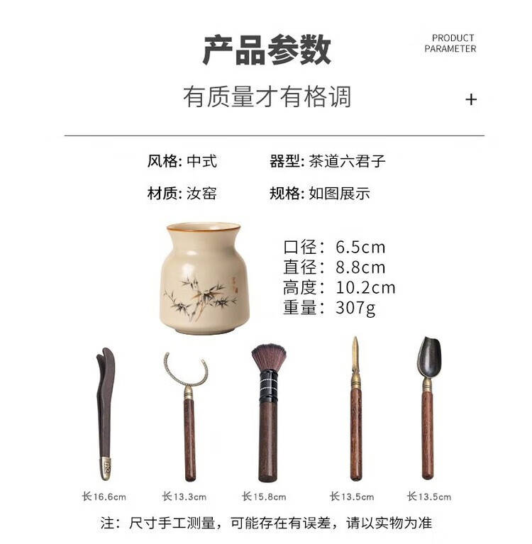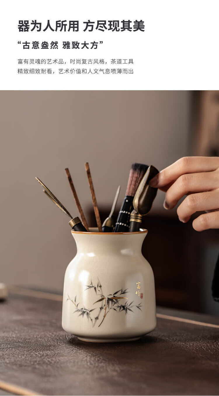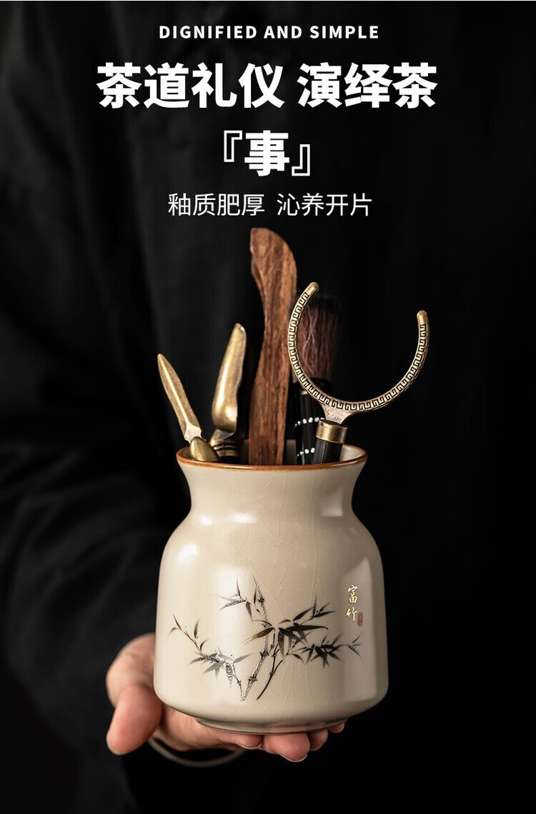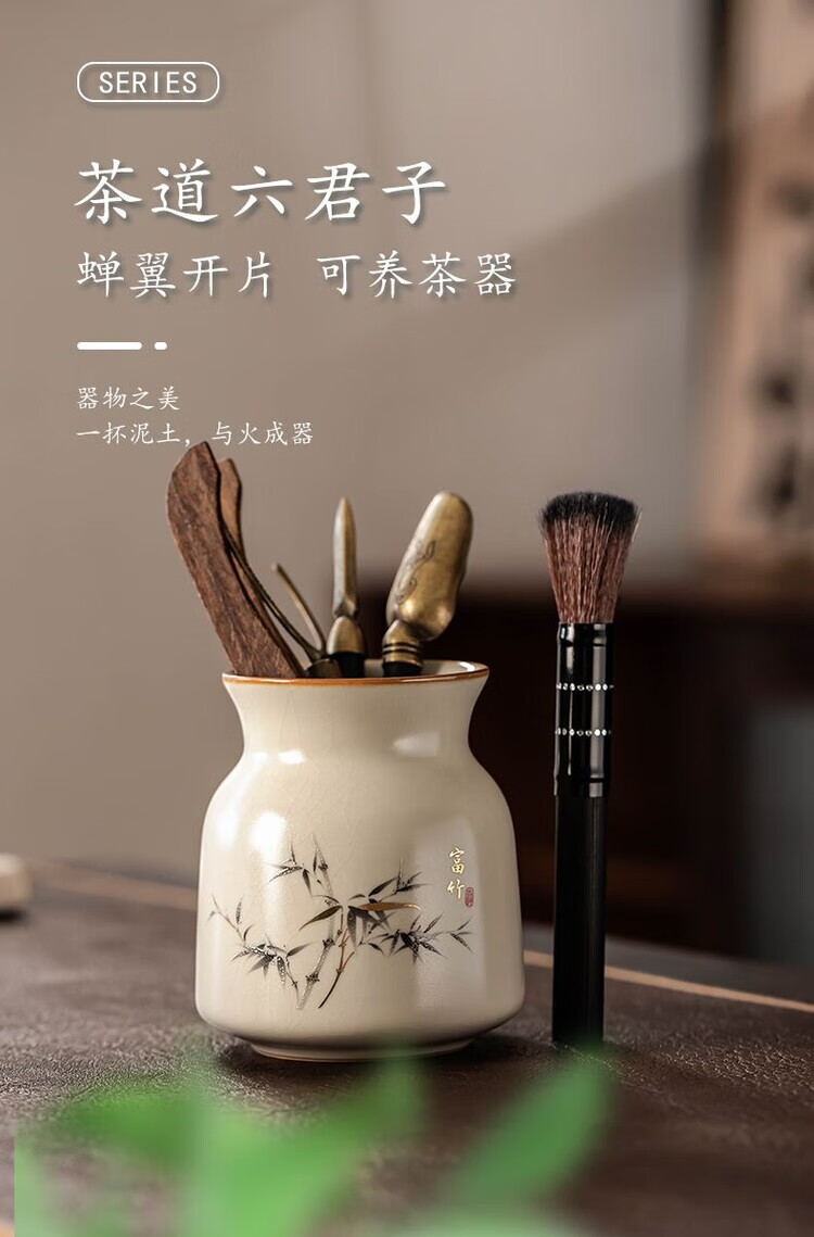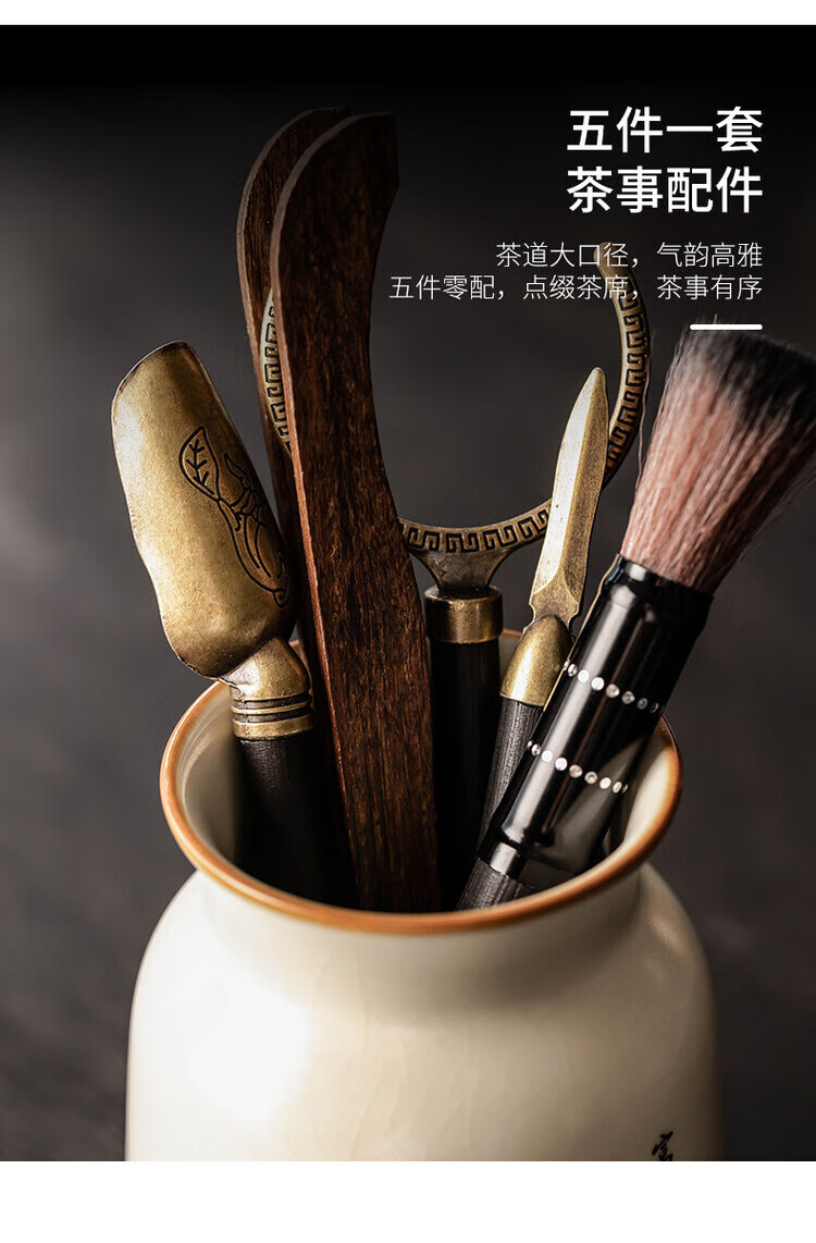 Nitu Ru Kiln Tea Ceremony Six Gentlemen Tea Clips Tea Pens Teaspoon Tea Knife Accessories Tea Supplies Six-piece Set Tools Ru Kiln Fuzhu Six Gentlemen
