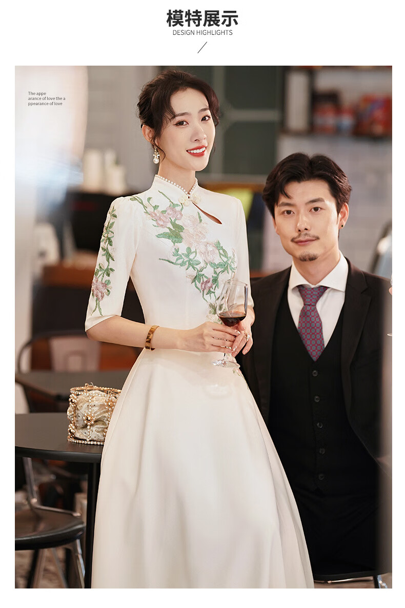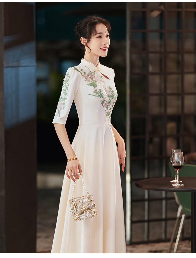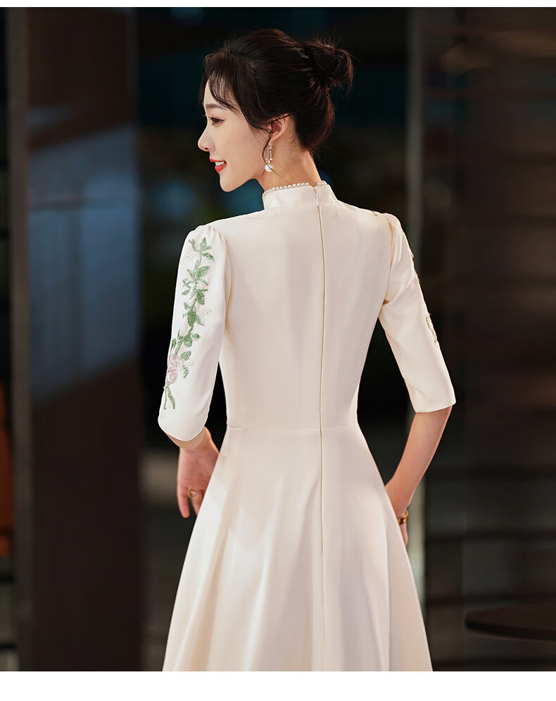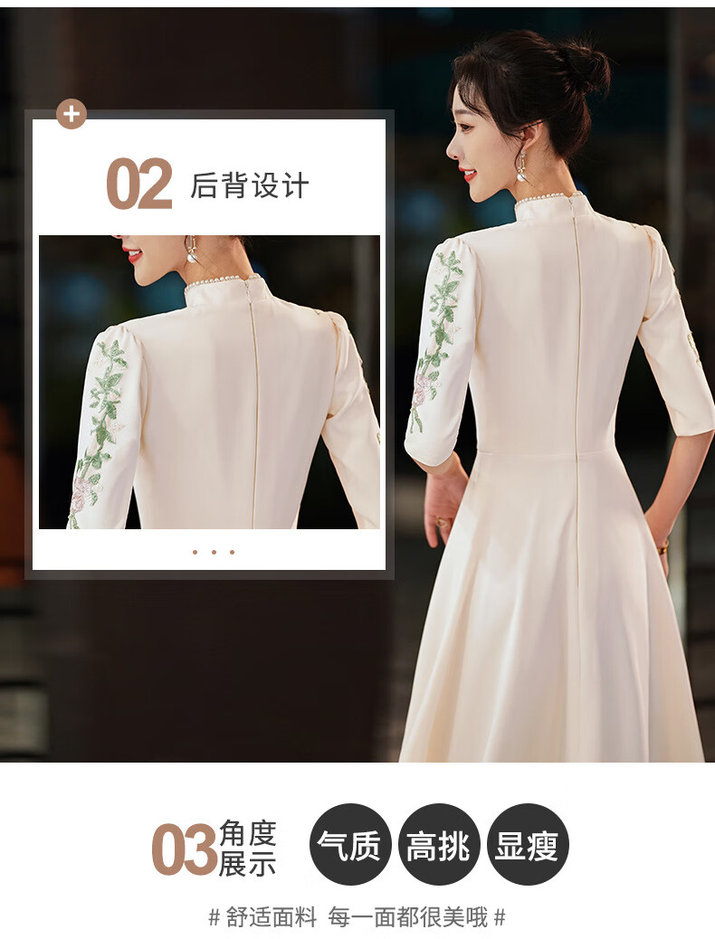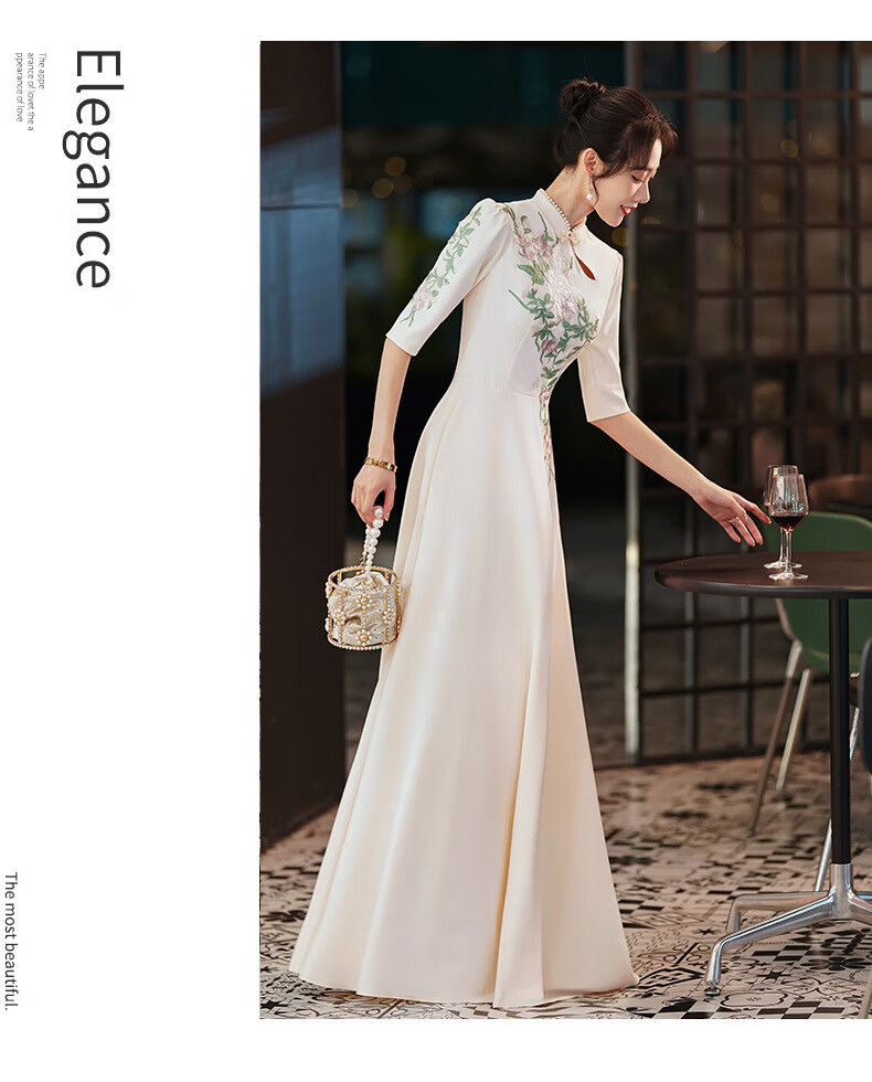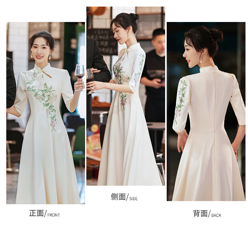 ACJK Chinese host performance clothing 2025 new champagne color bridesmaid dress evening dress simple and elegant long chorus dress champagne color S