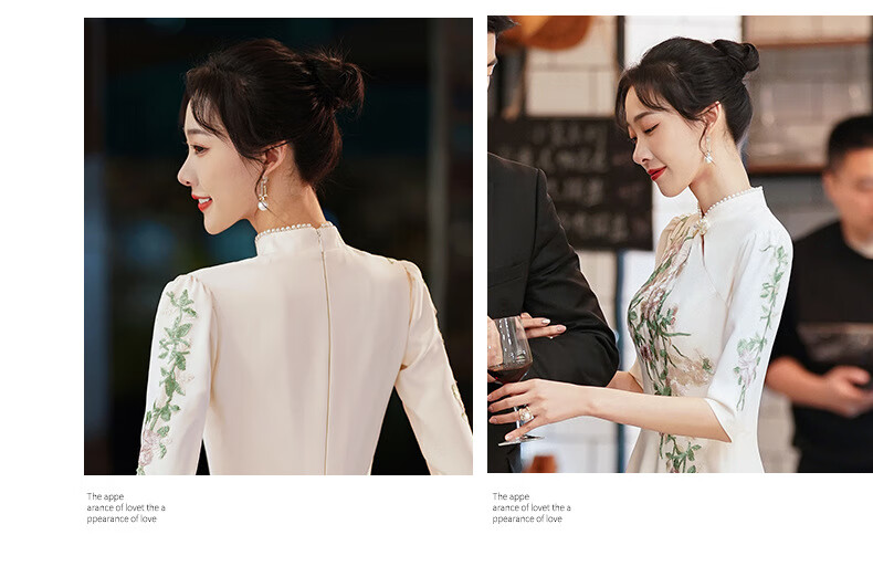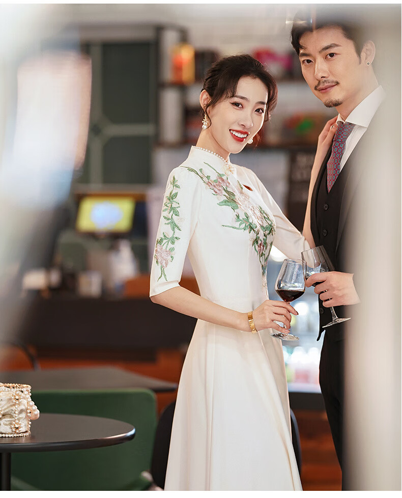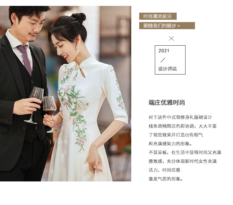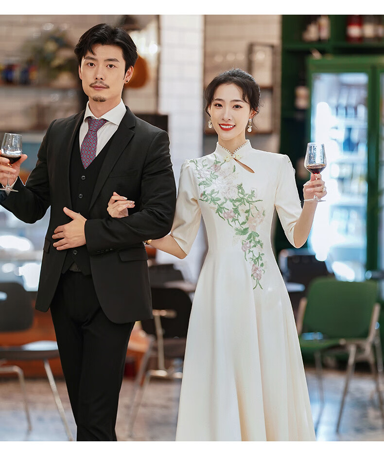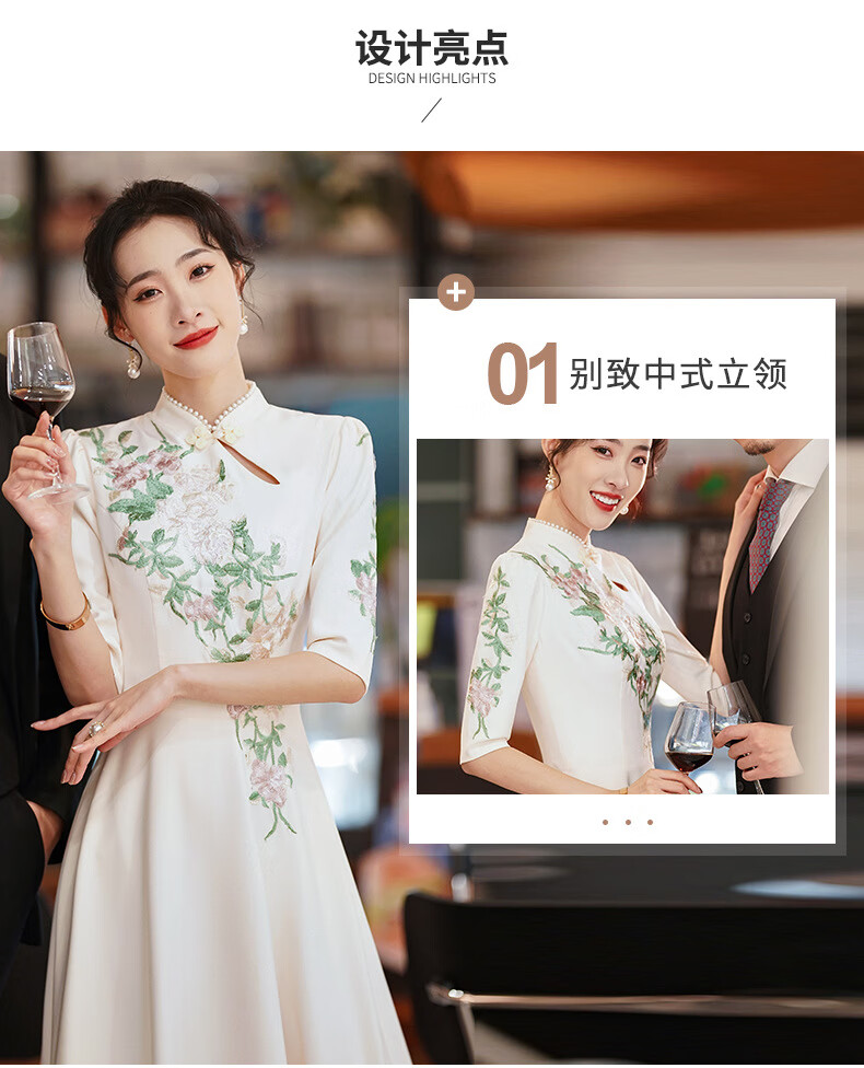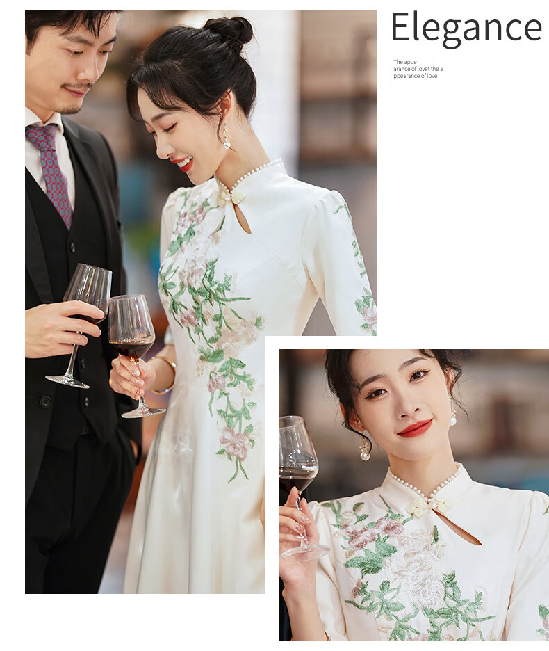 ACJK Chinese host performance clothing 2025 new champagne color bridesmaid dress evening dress simple and elegant long chorus dress champagne color S
