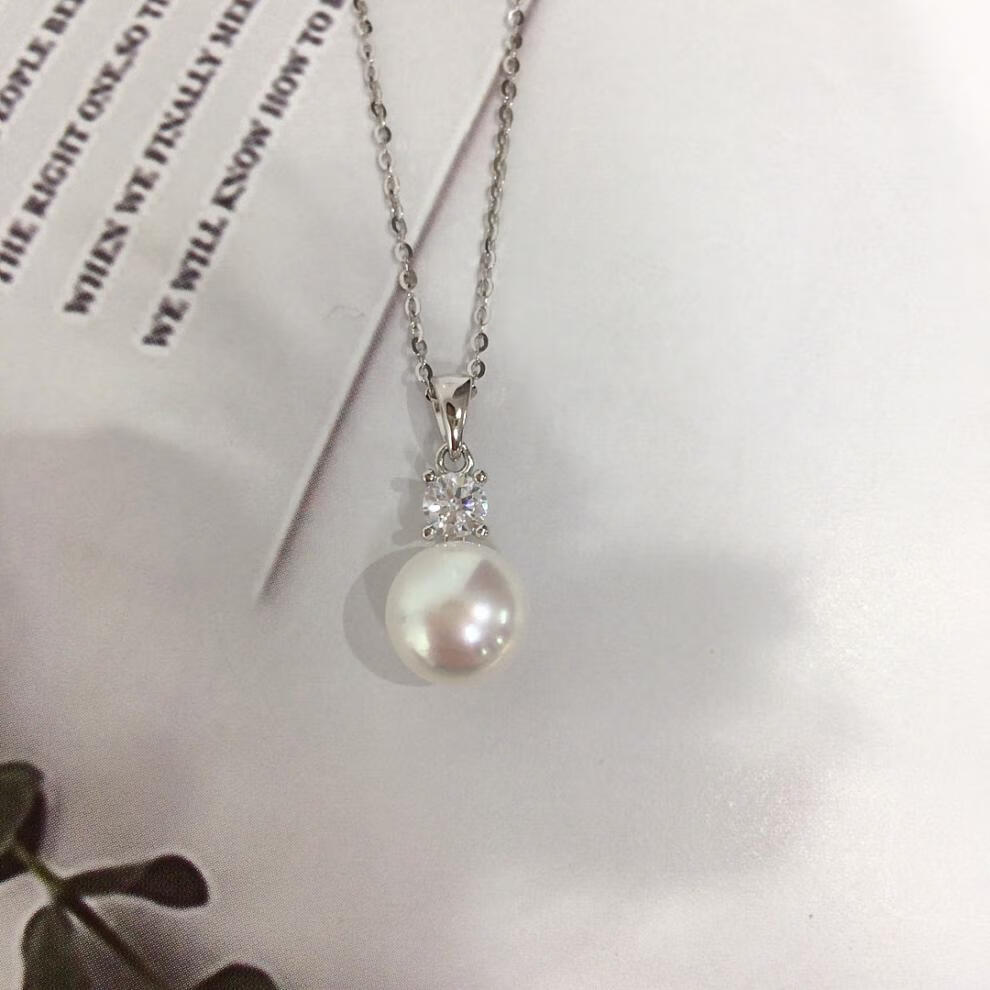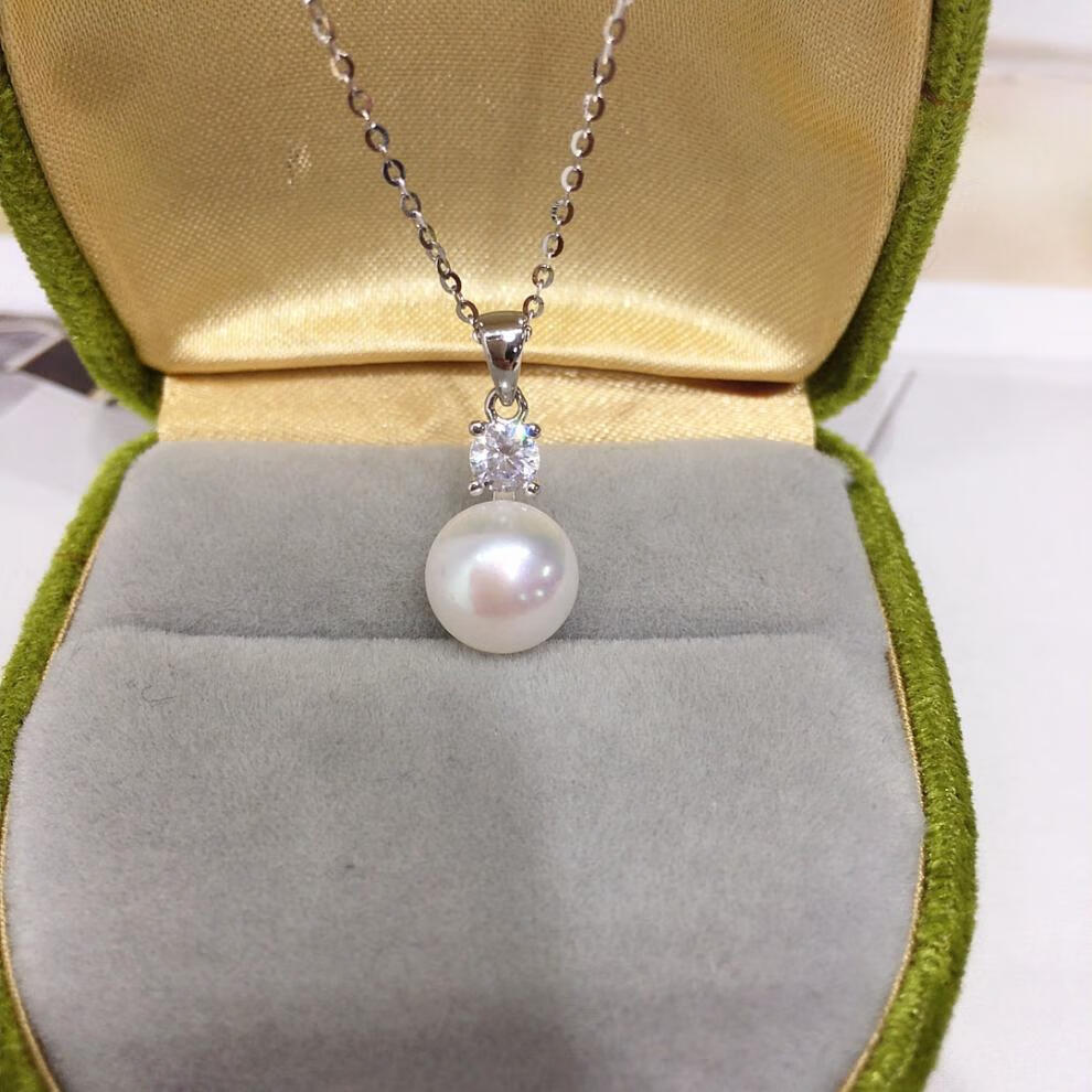 Jingjia Zhuji Pearl Freshwater Pearl Pendant Princess Diana Style S925 Sterling Silver Pearl Necklace Clavicle Chain White Pearl 10mm