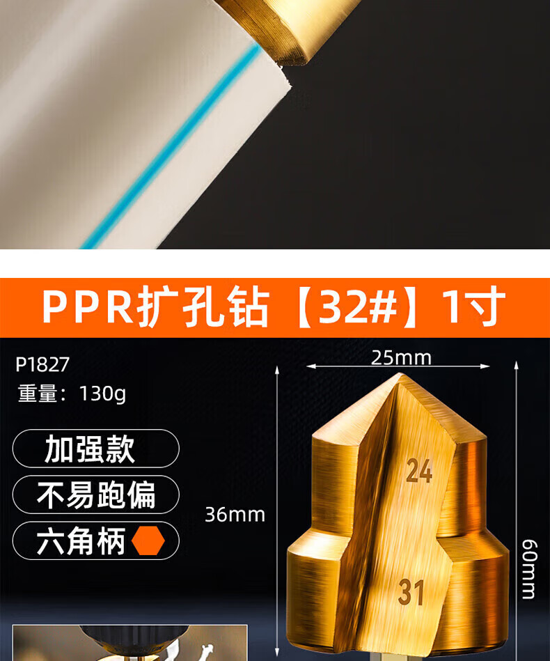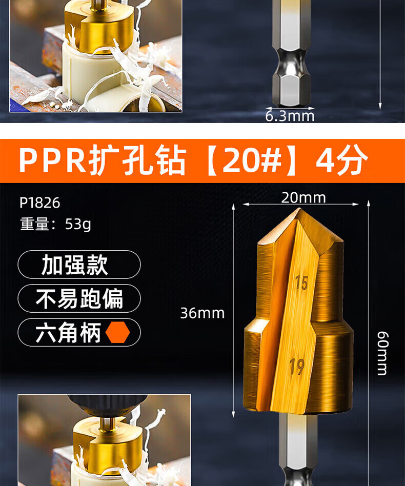 PPR lift drill bit water pipe repair reaming set 4-6-1 inch water pipe expansion water pipe punch Hexagonal handle PPR reaming drill 3-piece set 20/25/32