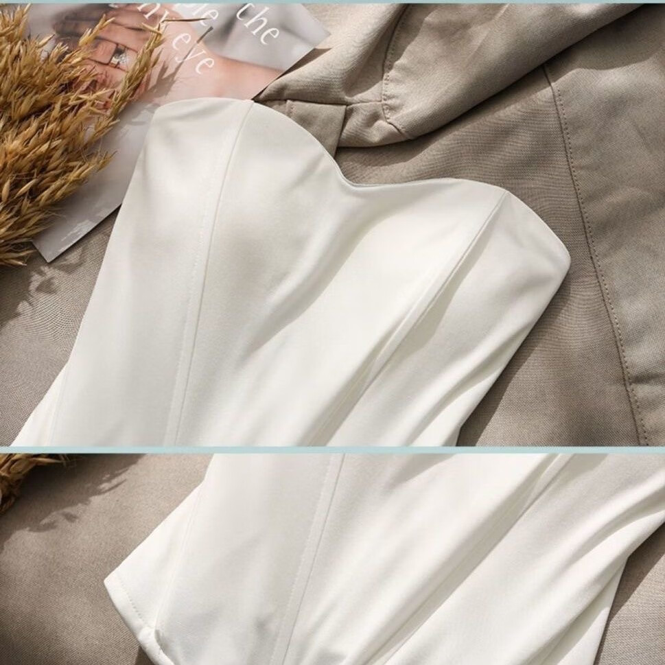 Body-shaping fishbone breast-wrapped women's vest, sexy high-waisted, slim-fitting European and American fashion, with built-in breast pads, anti-slip strips, tube top bra, black XS