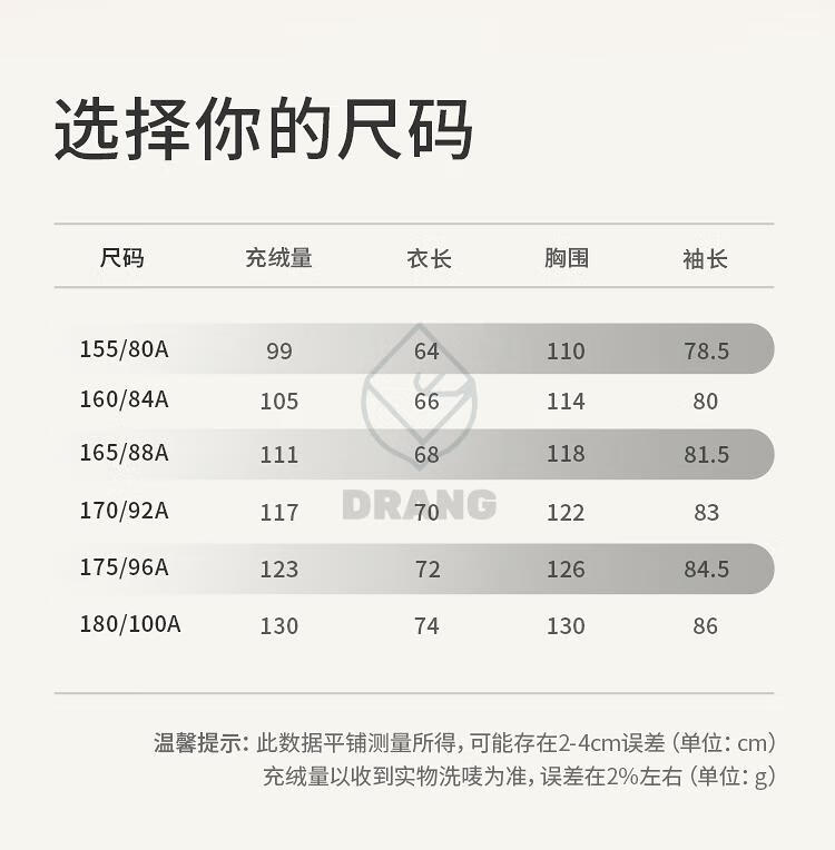 China (cm) 160-165/84-86 165-170 / 88-90 167-172 / 92-96 168-173 / 98-102 170-176 / 106-110