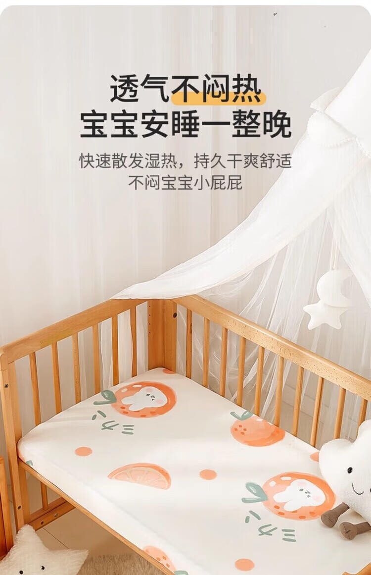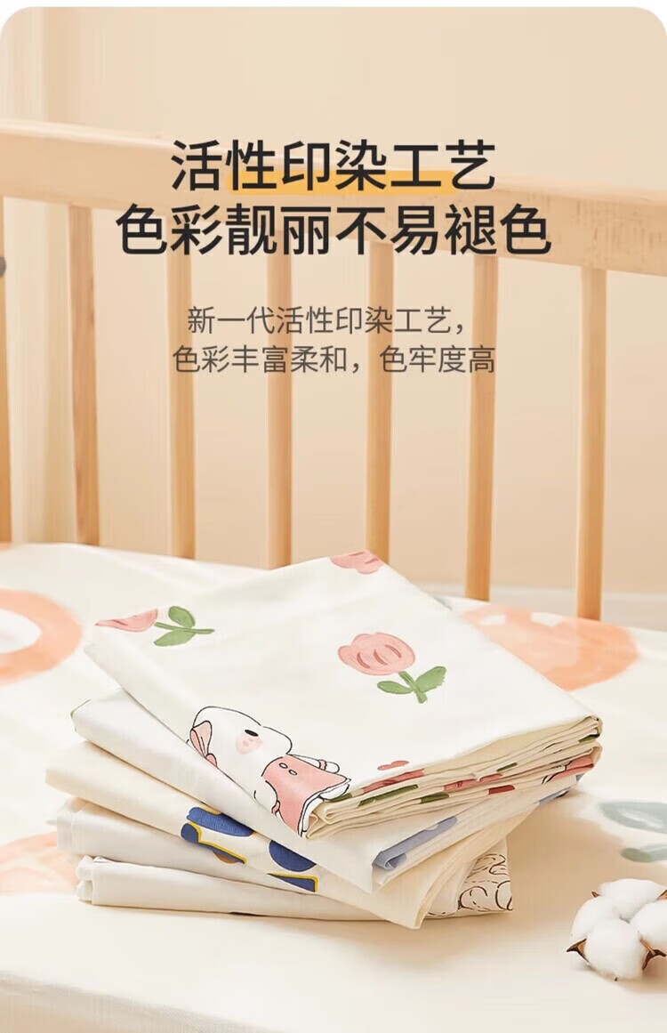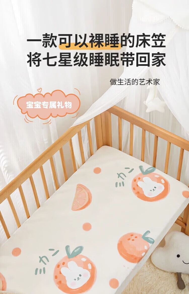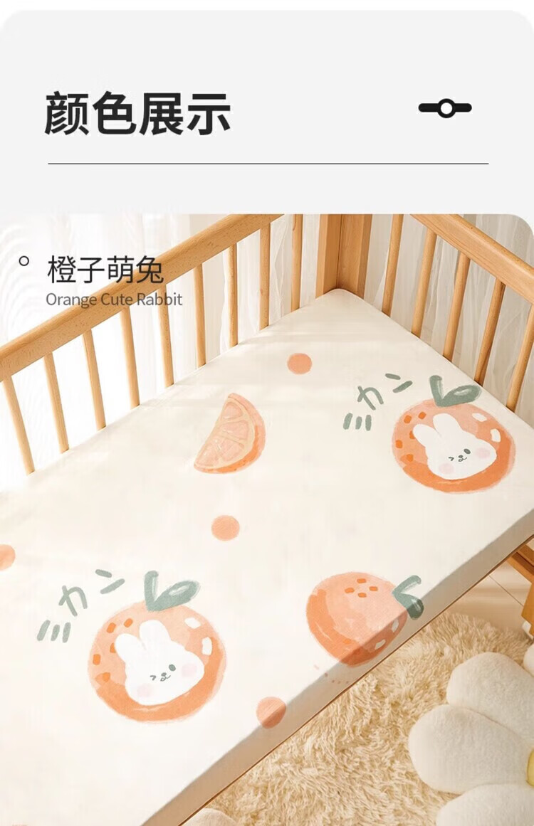 Li Mengsi crib fitted sheet children's spliced bed pure cotton type A baby bedding mattress cover customized orange cute rabbit (type A quality, skin-friendly and breathable, comfortable sleep in all seasons) 70*120