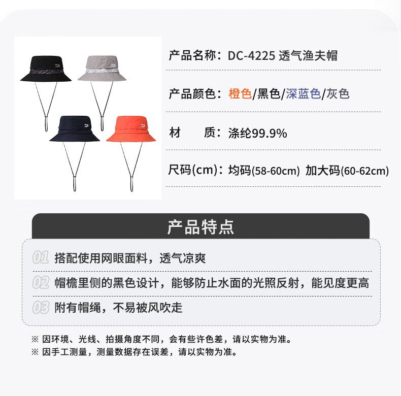 25 spring and summer DC-4225 breathable fisherman hat sunshade fishing hat sun protection hat drawstring hat one size black