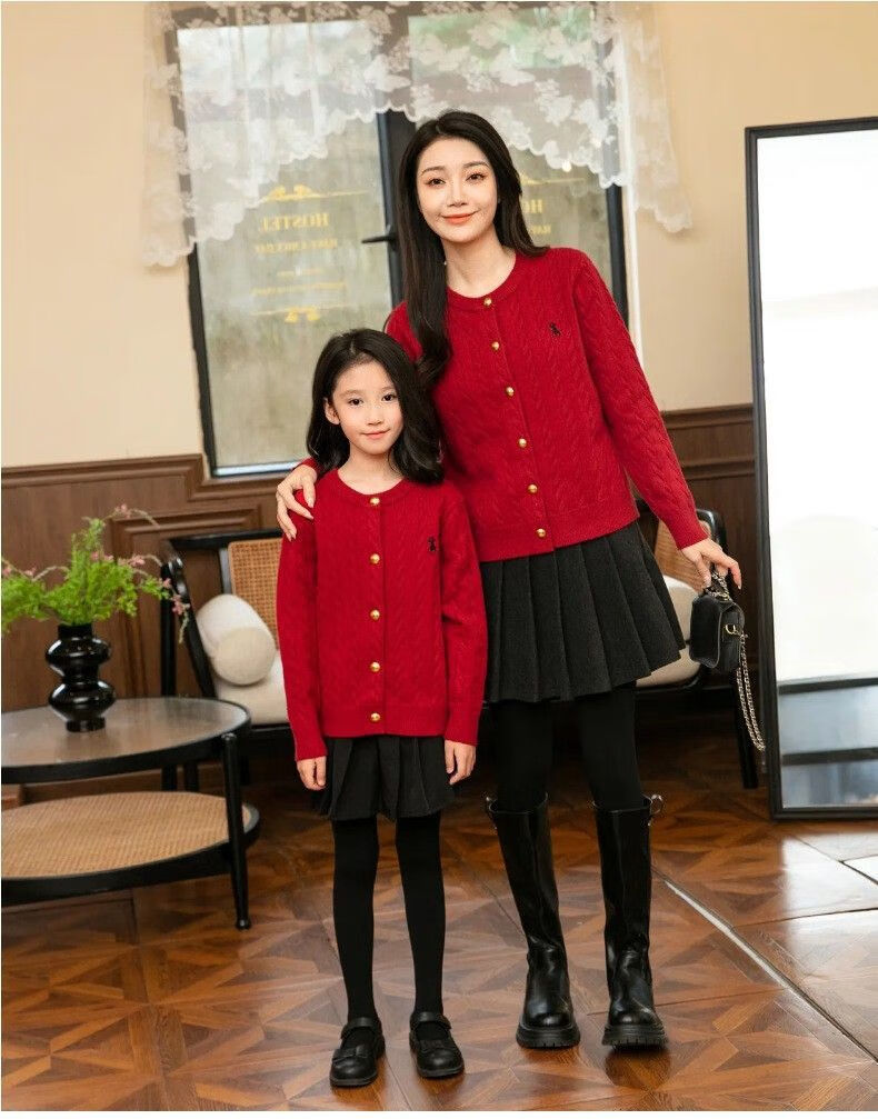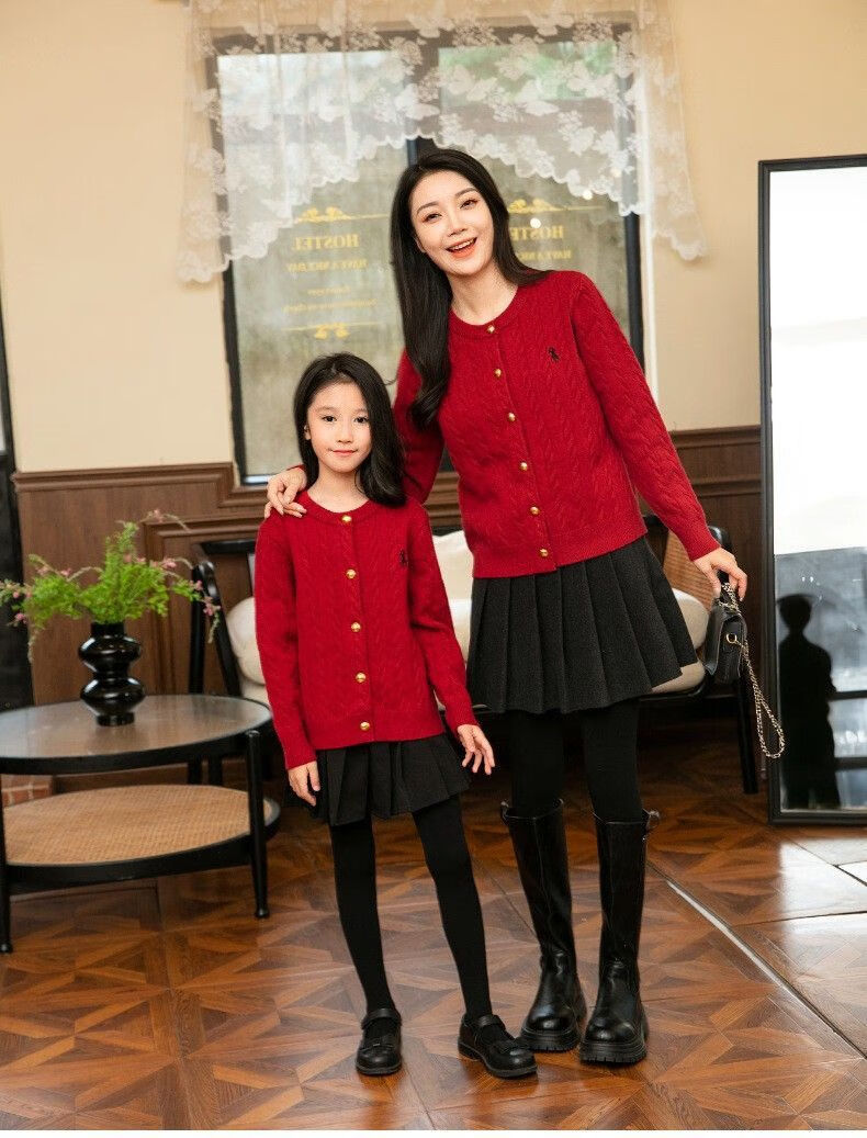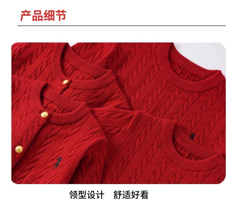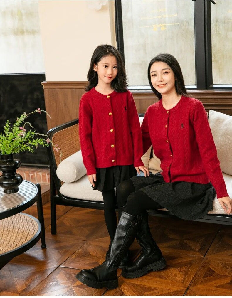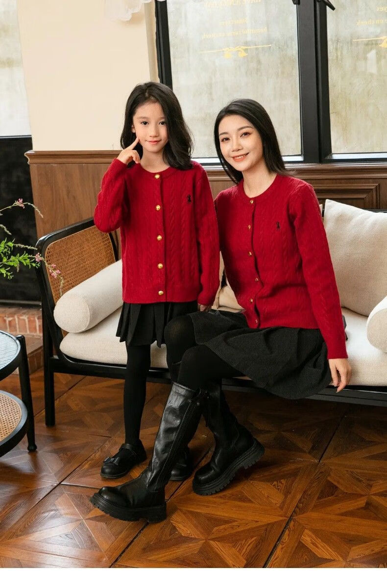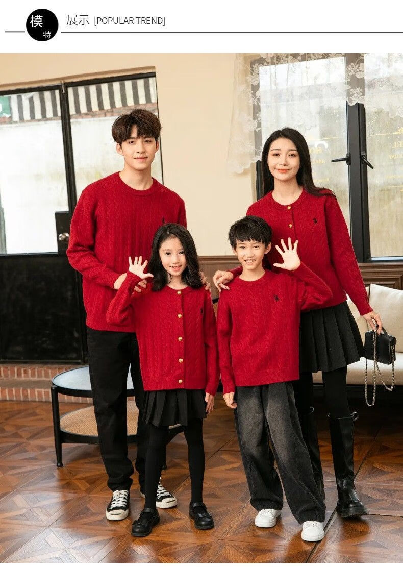 Didi.Ni HEYDIDY New Year's parent-child clothing 2025 family blessing autumn and winter family of three, mother and daughter New Year's red New Year's greetings sweater red cardigan sweater 80 children's recommended weight 15-20