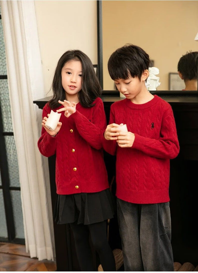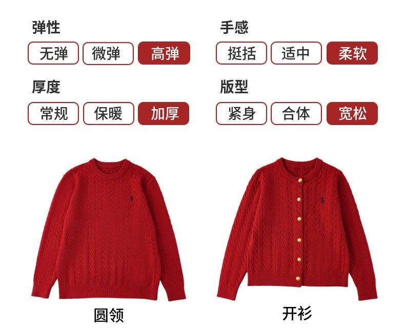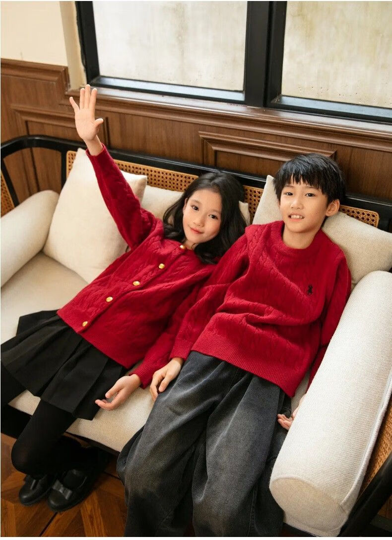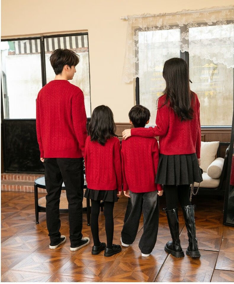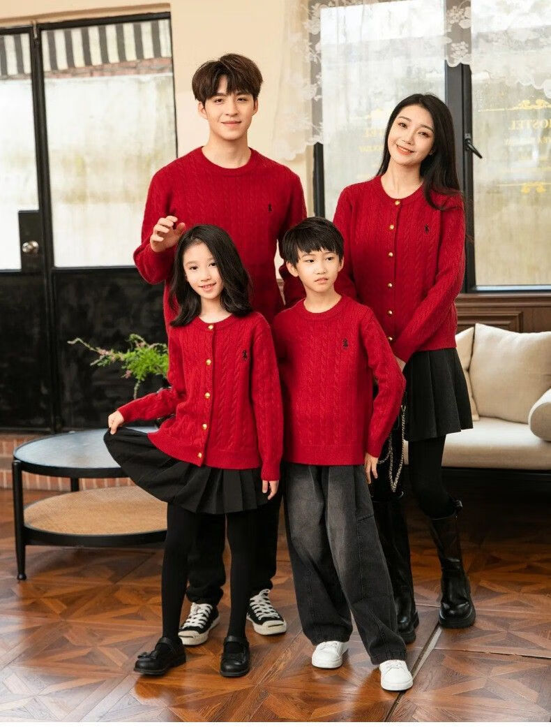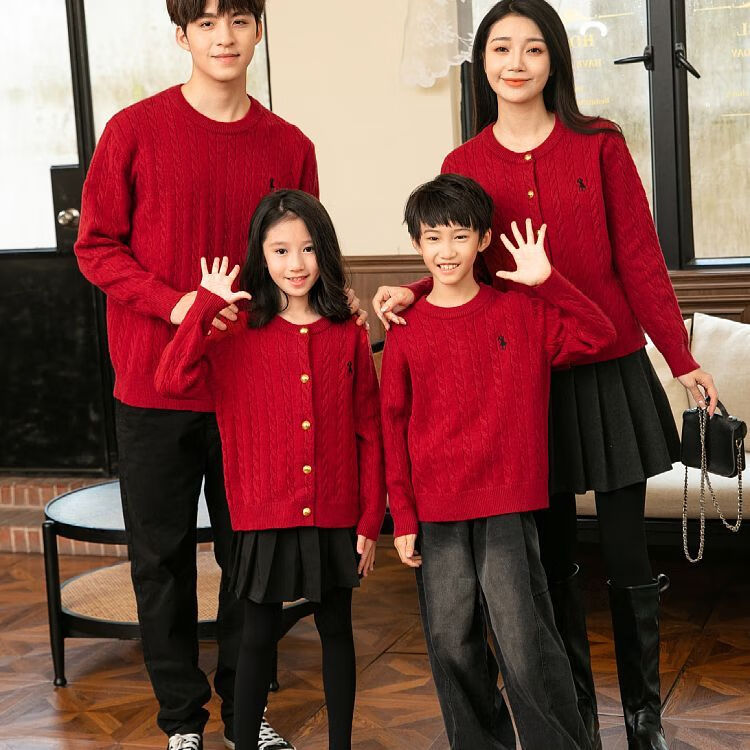 Didi.Ni HEYDIDY New Year's parent-child clothing 2025 family blessing autumn and winter family of three, mother and daughter New Year's red New Year's greetings sweater red cardigan sweater 80 children's recommended weight 15-20