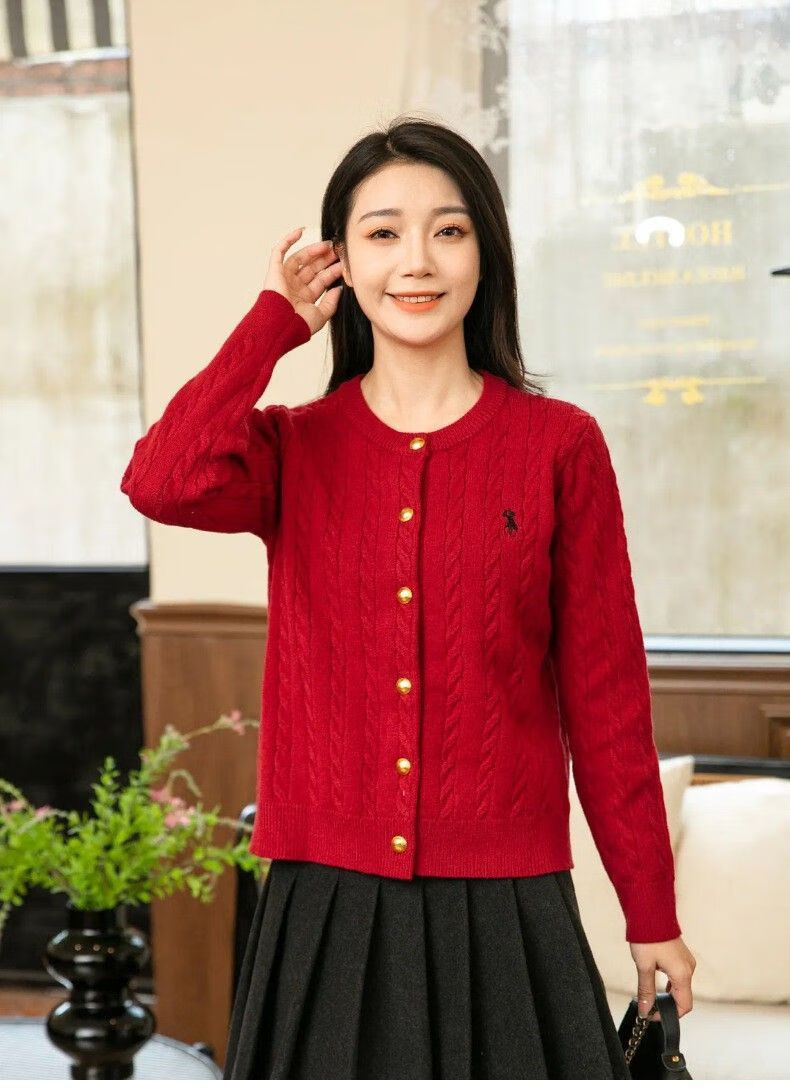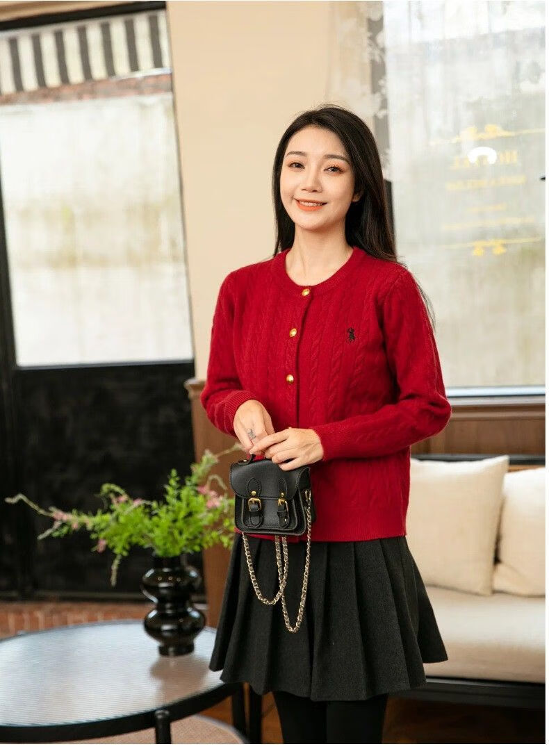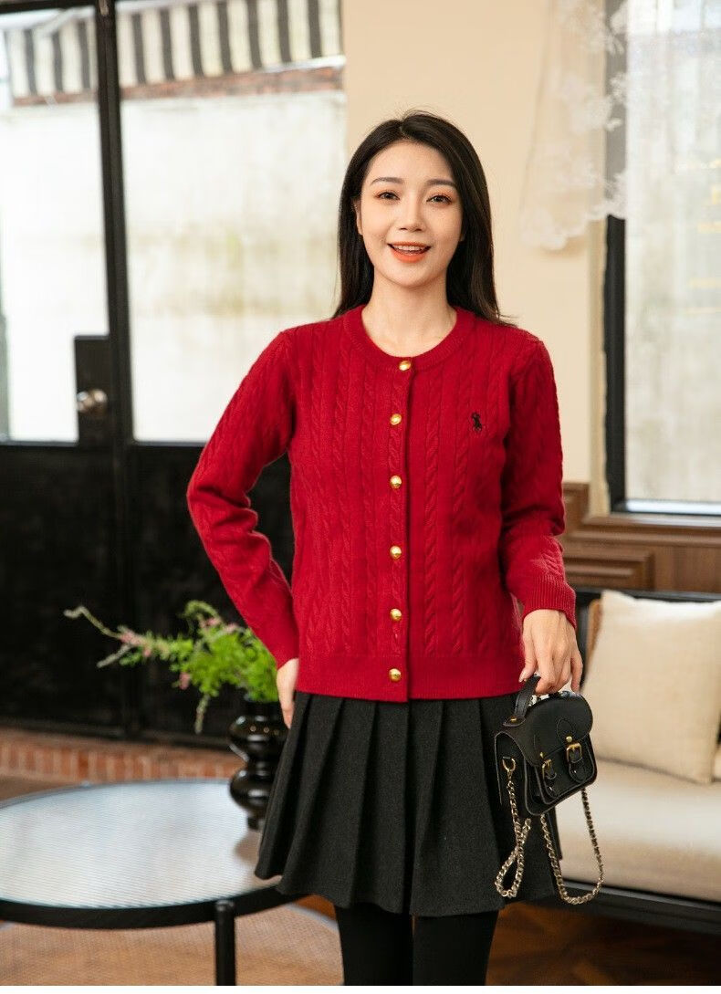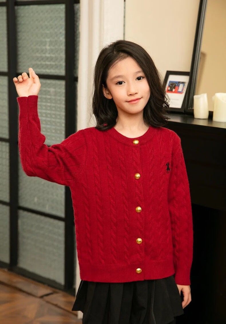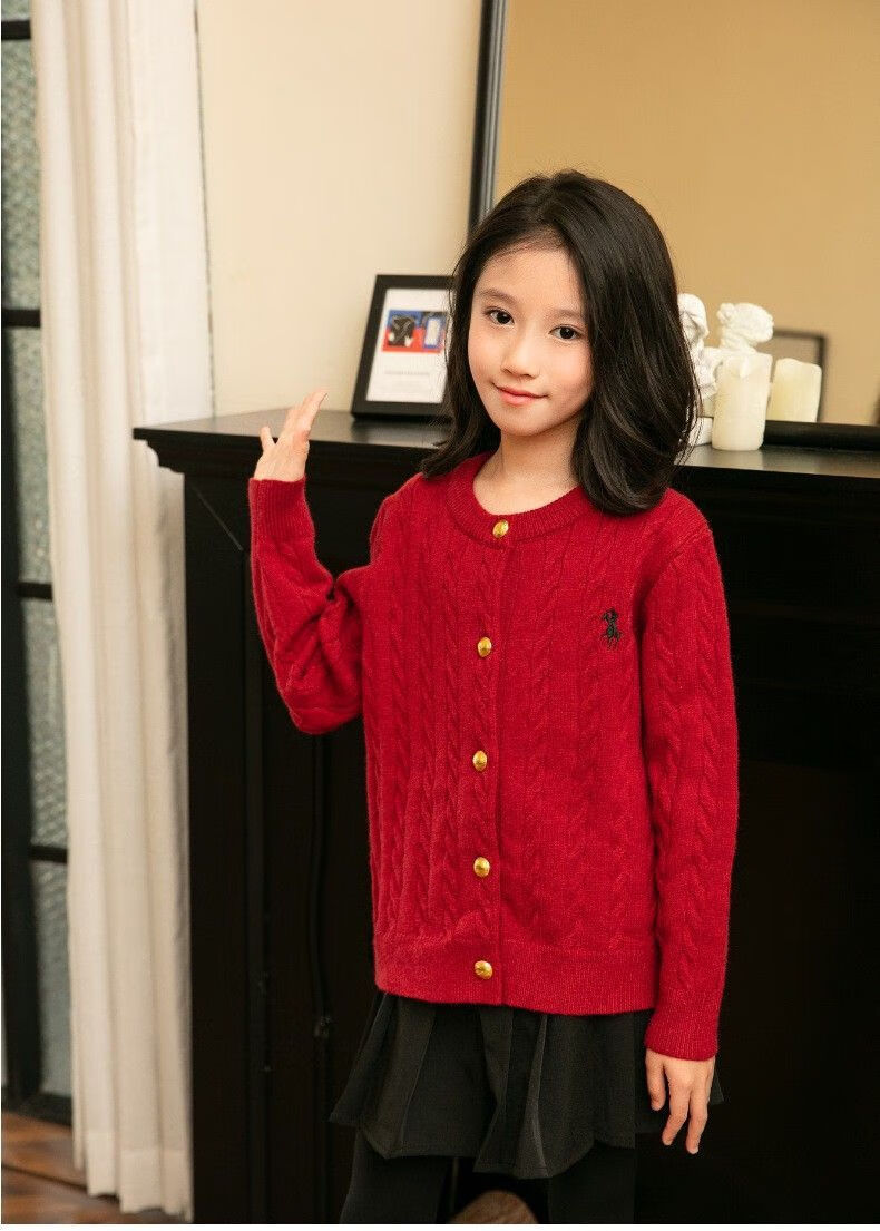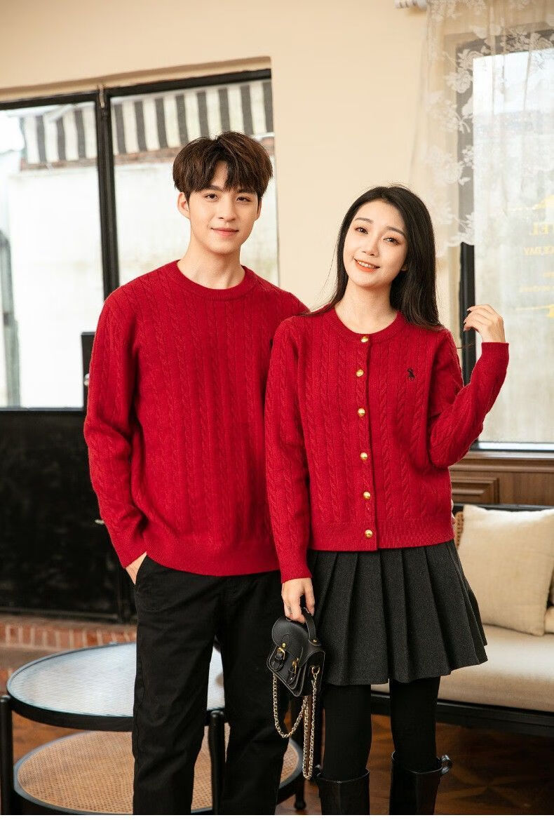 Didi.Ni HEYDIDY New Year's parent-child clothing 2025 family blessing autumn and winter family of three, mother and daughter New Year's red New Year's greetings sweater red cardigan sweater 80 children's recommended weight 15-20