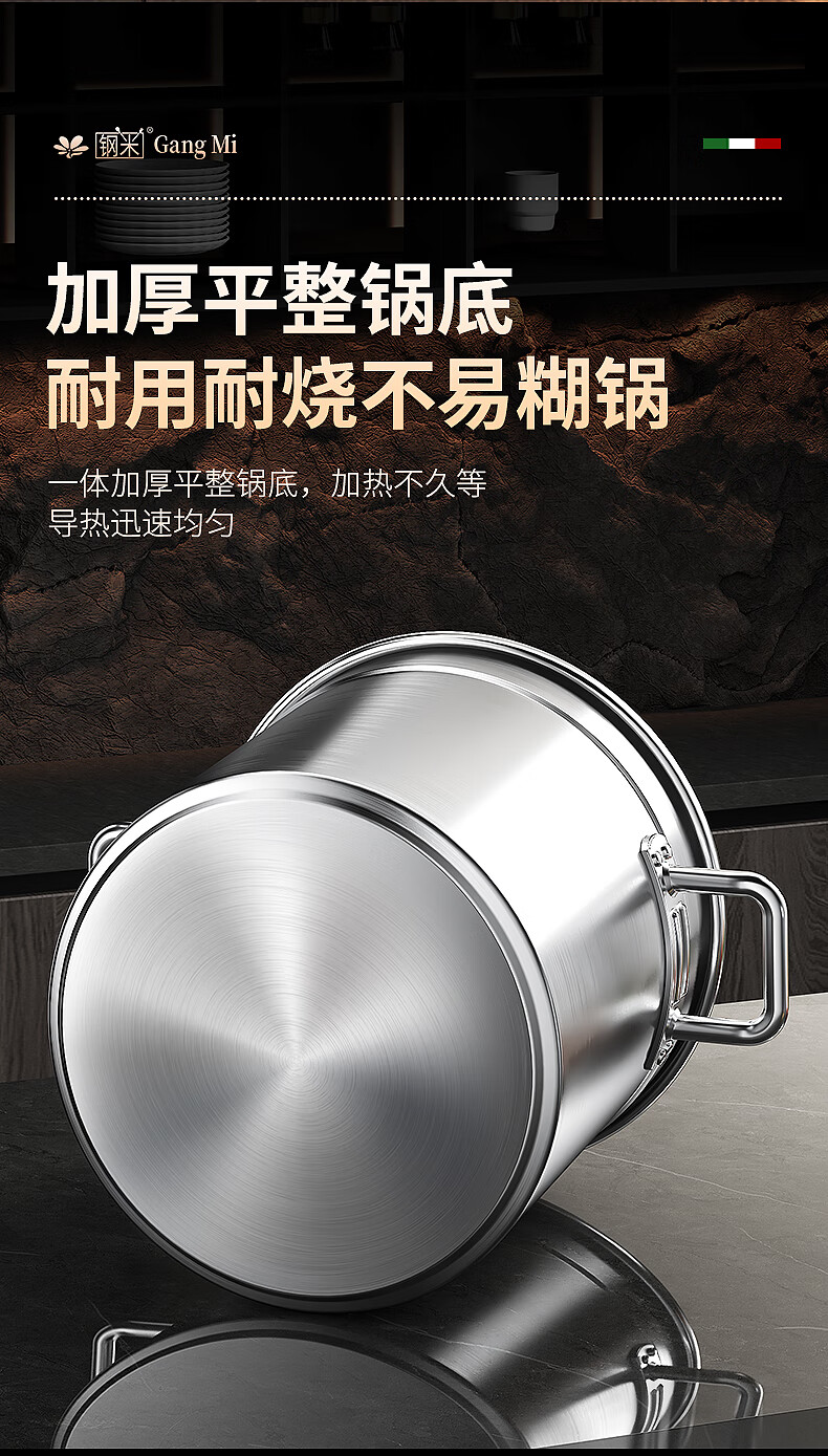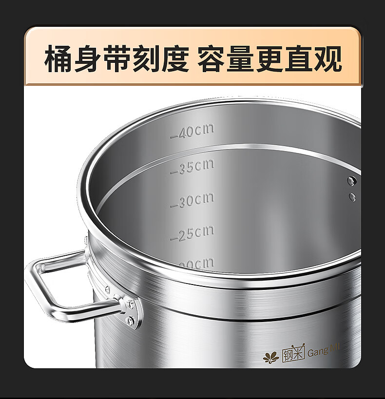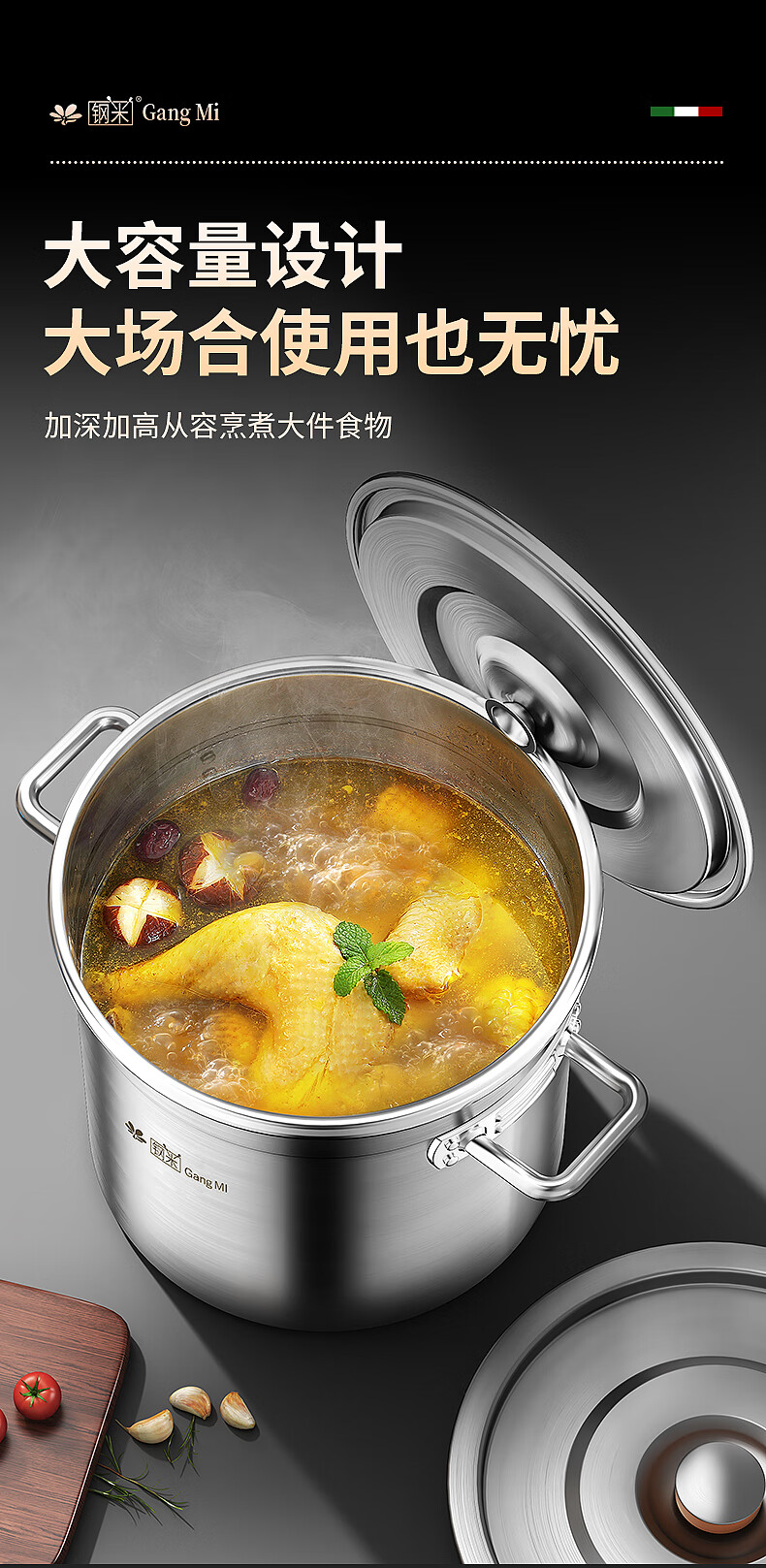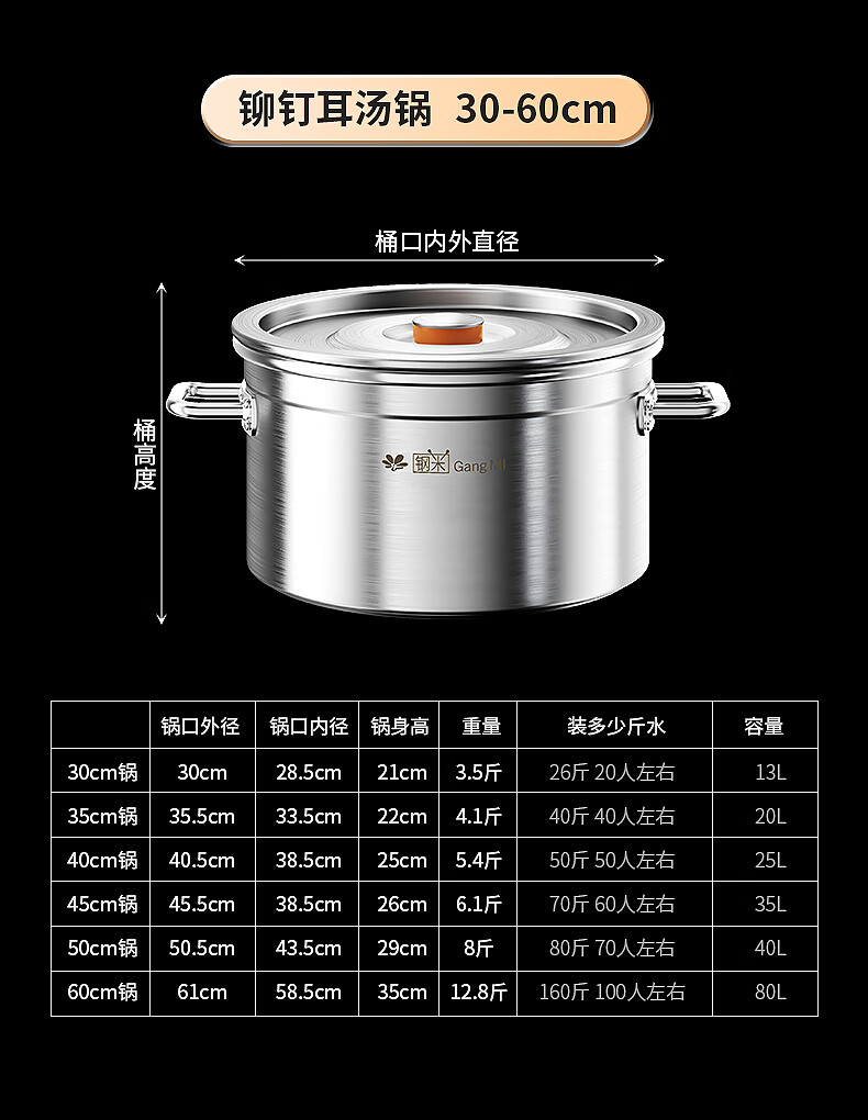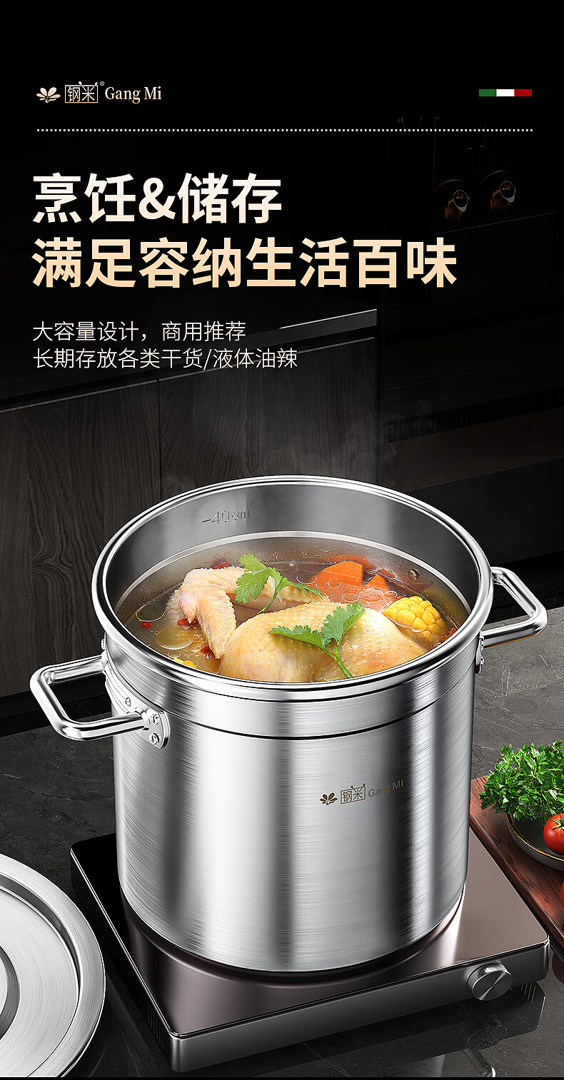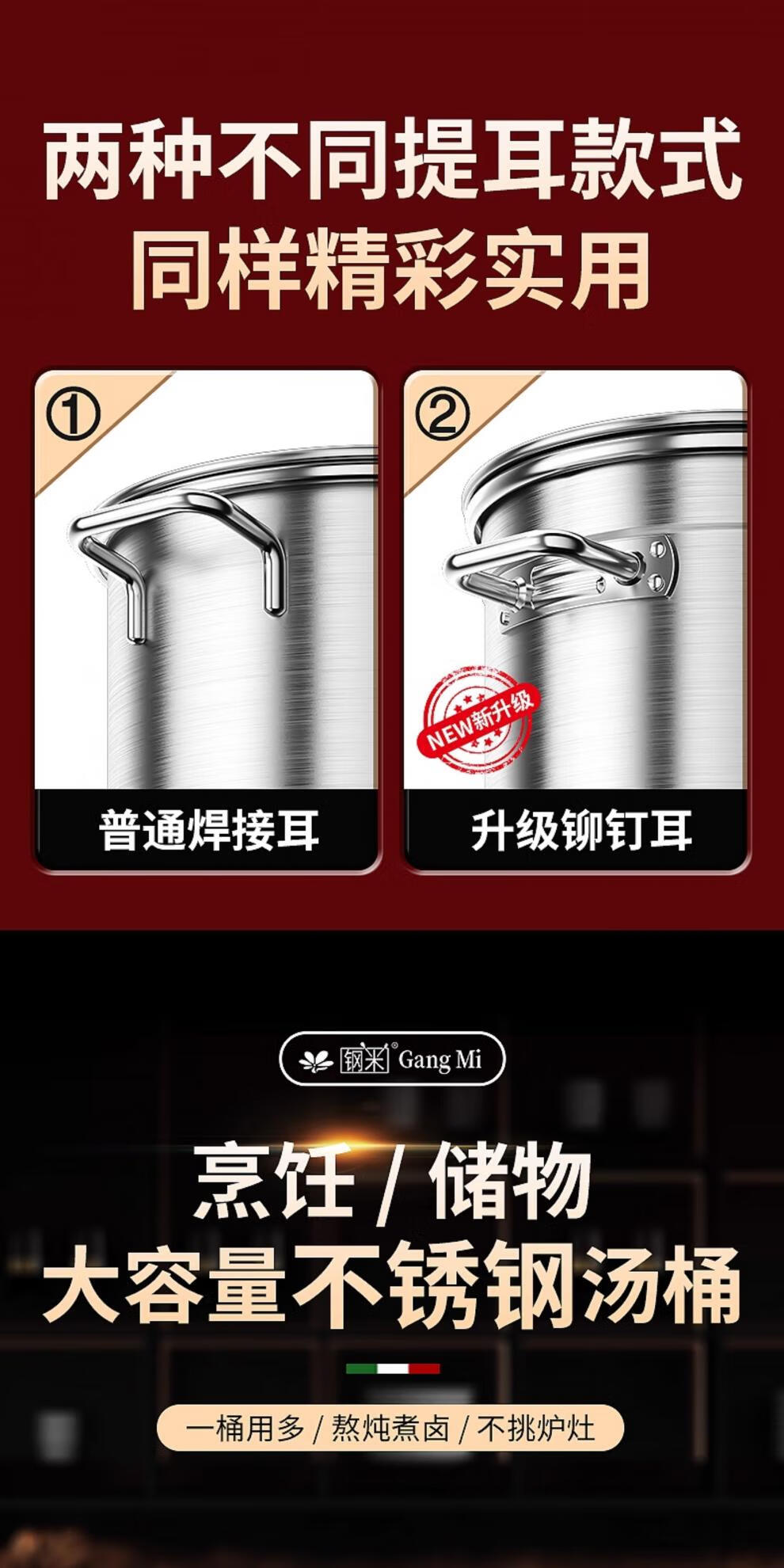 Fat Donglai's same style stainless steel soup bucket commercial braised meat large capacity round bucket with lid brine boiling extra thick soup pot induction cooker extra thick rivet ears diameter 40 high 25 - capacity about 25L weight about 5