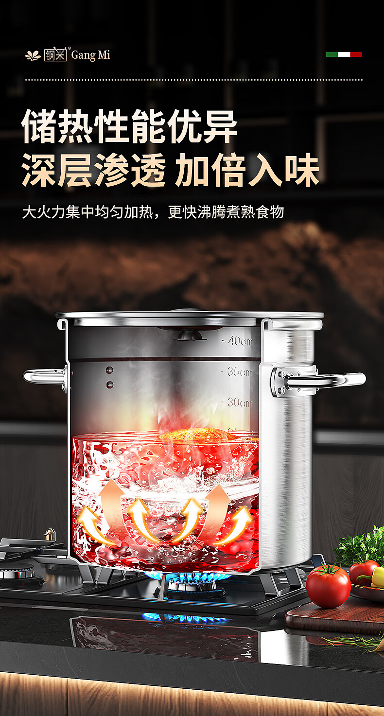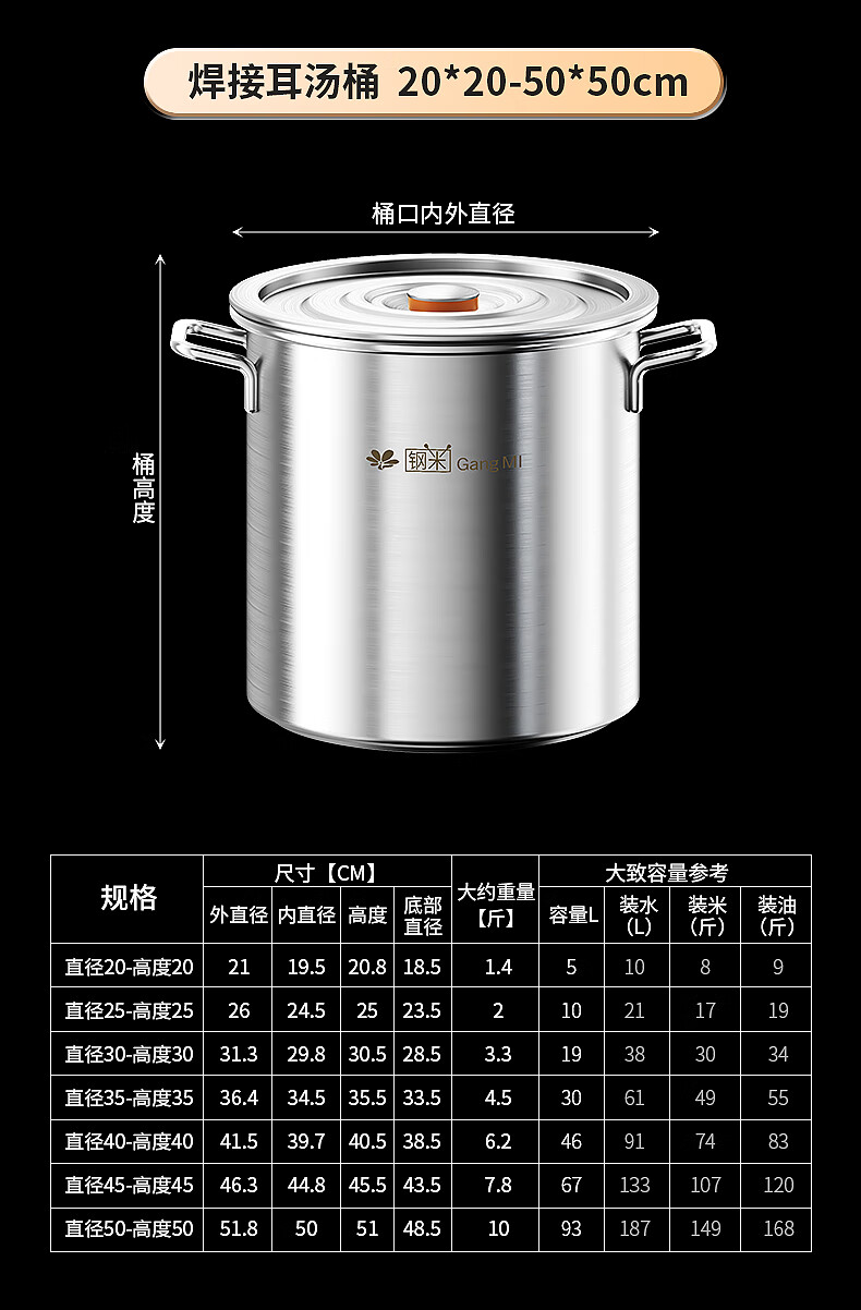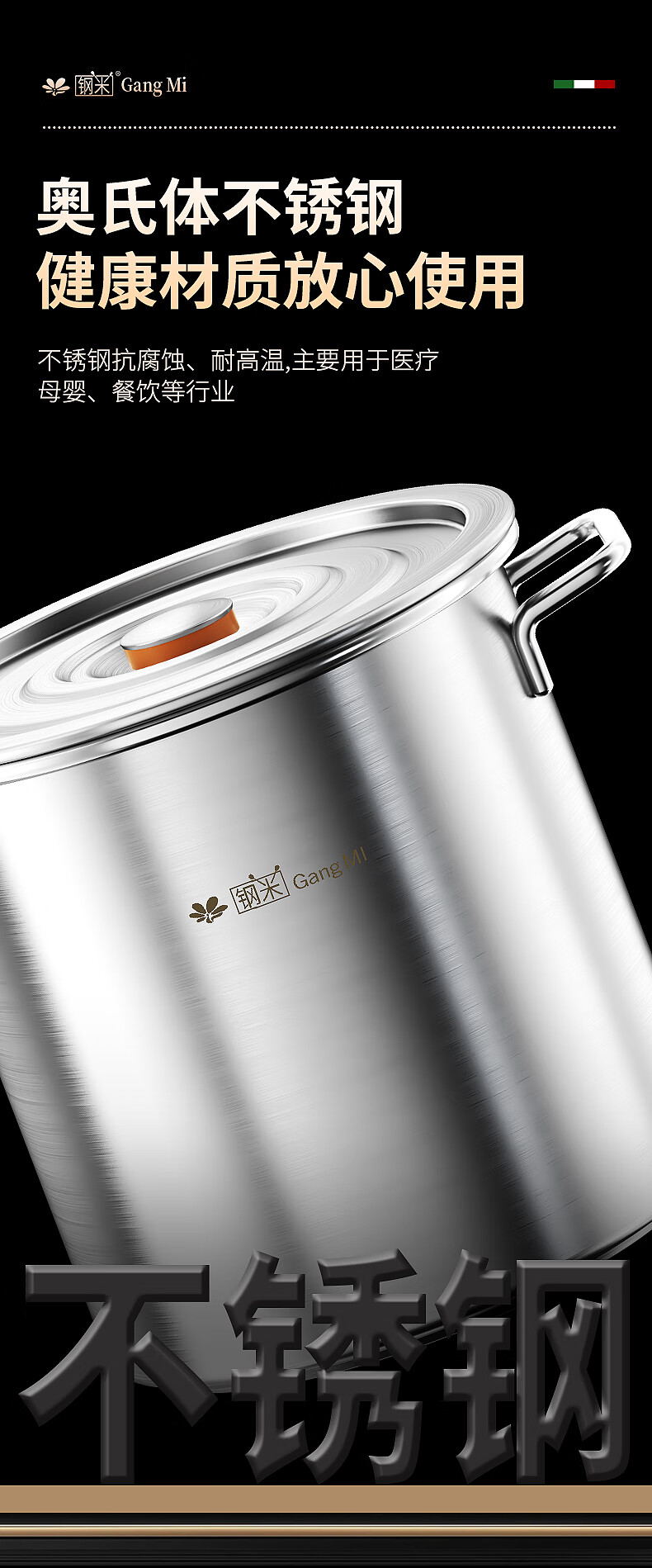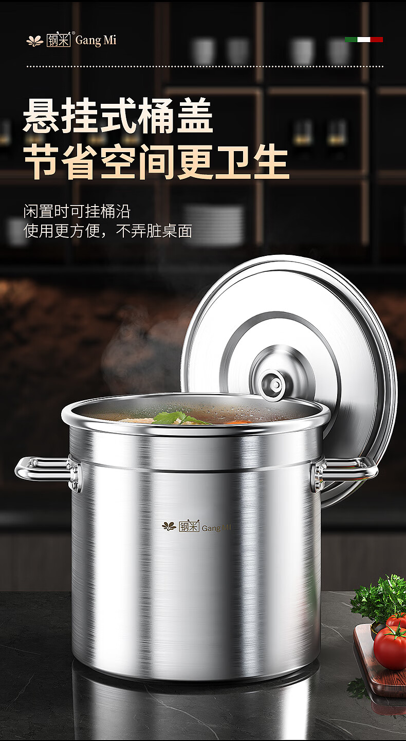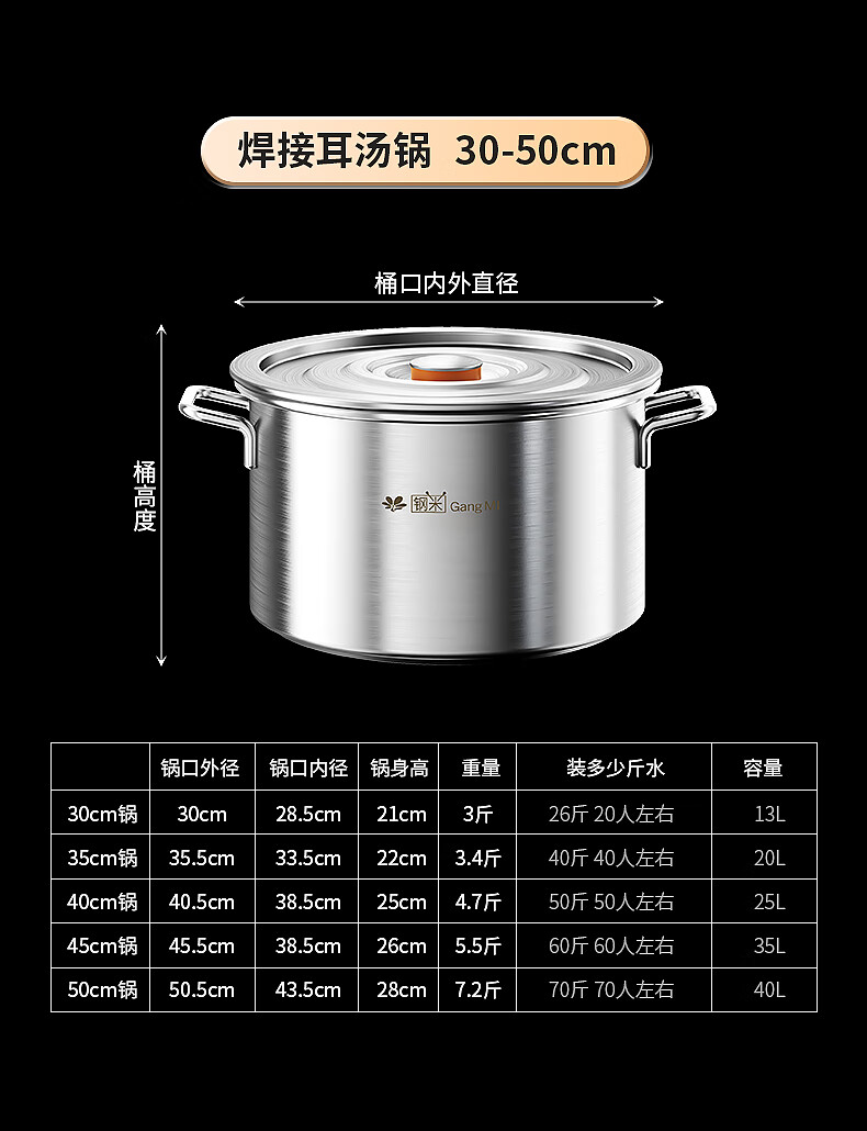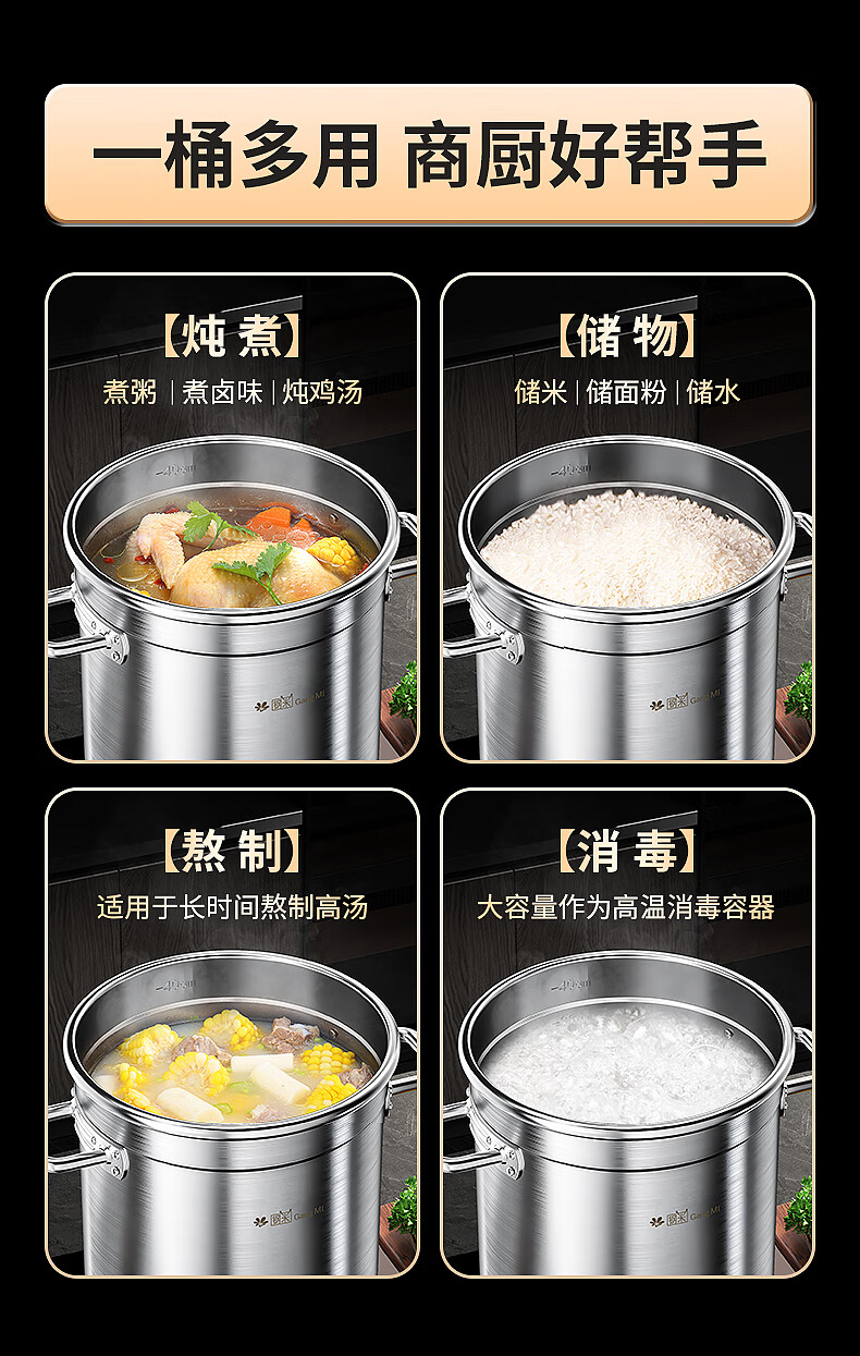 Fat Donglai's same style stainless steel soup bucket commercial braised meat large capacity round bucket with lid brine boiling extra thick soup pot induction cooker extra thick rivet ears diameter 40 high 25 - capacity about 25L weight about 5