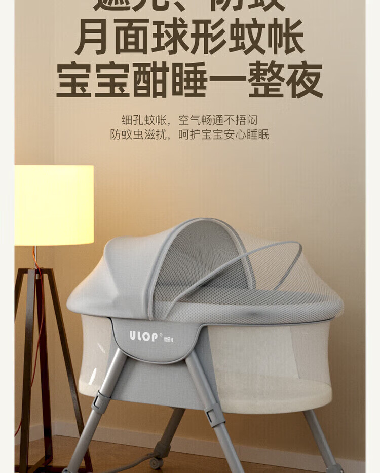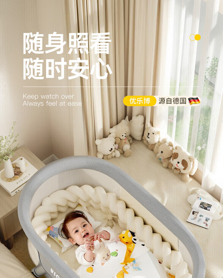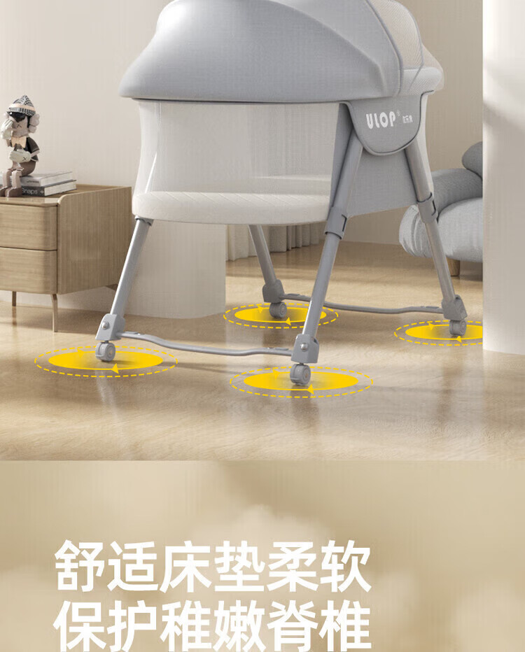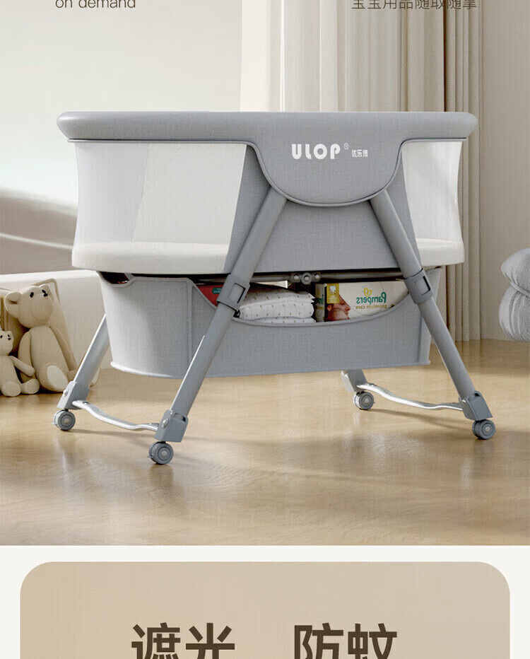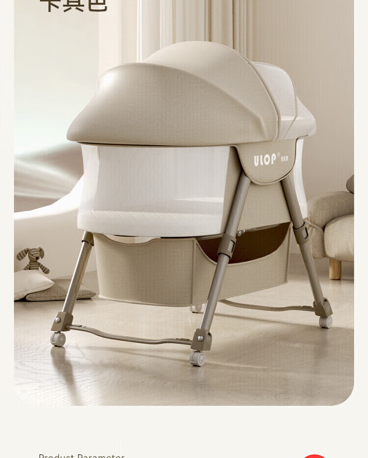 YOULEBO crib removable portable cradle bed foldable multifunctional bb bed newborn gift khaki installation-free + universal wheel + mosquito net + can be used as a cradle
