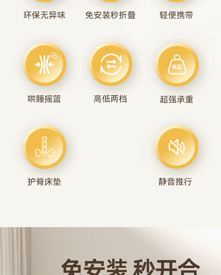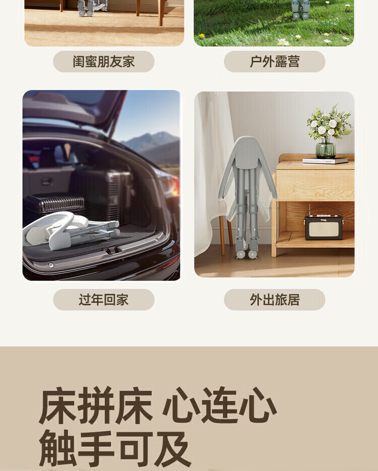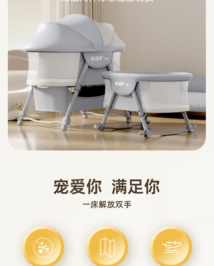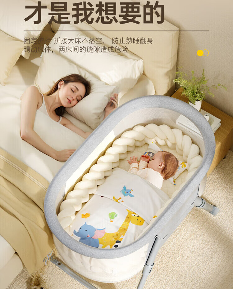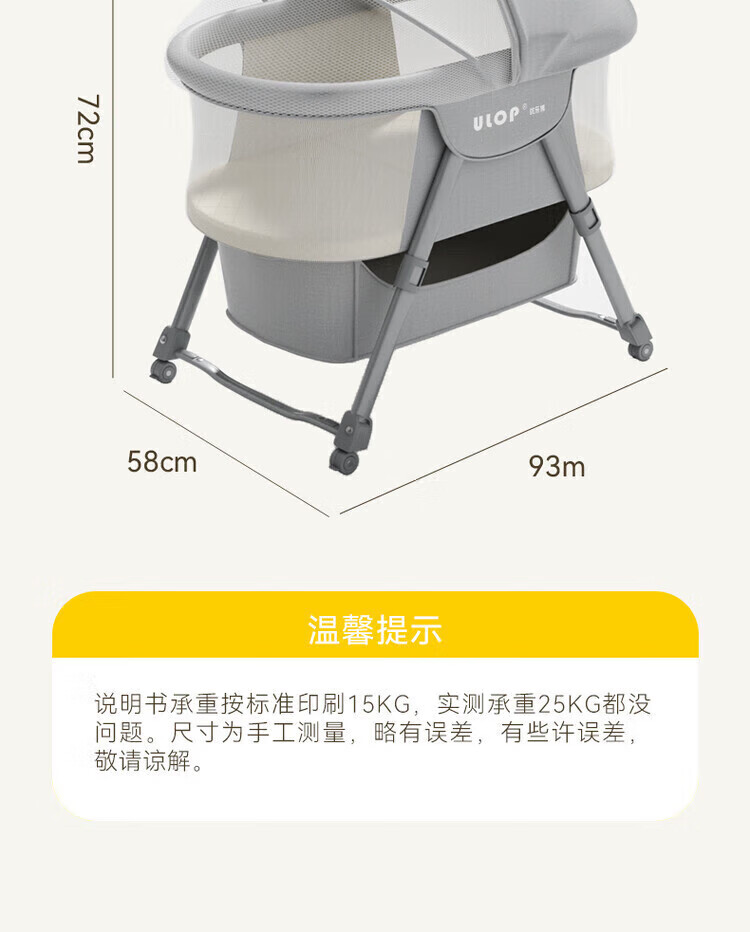 YOULEBO crib removable portable cradle bed foldable multifunctional bb bed newborn gift khaki installation-free + universal wheel + mosquito net + can be used as a cradle