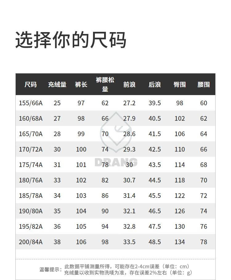 China (cm) 165 / 88-90 170 / 96-98 175 / 108-110 180 / 118-122 185 / 126-130