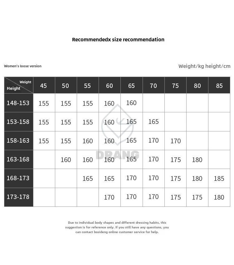 China (cm) 160-165/84-86 165-170 / 88-90 167-172 / 92-96 168-173 / 98-102 170-176 / 106-110