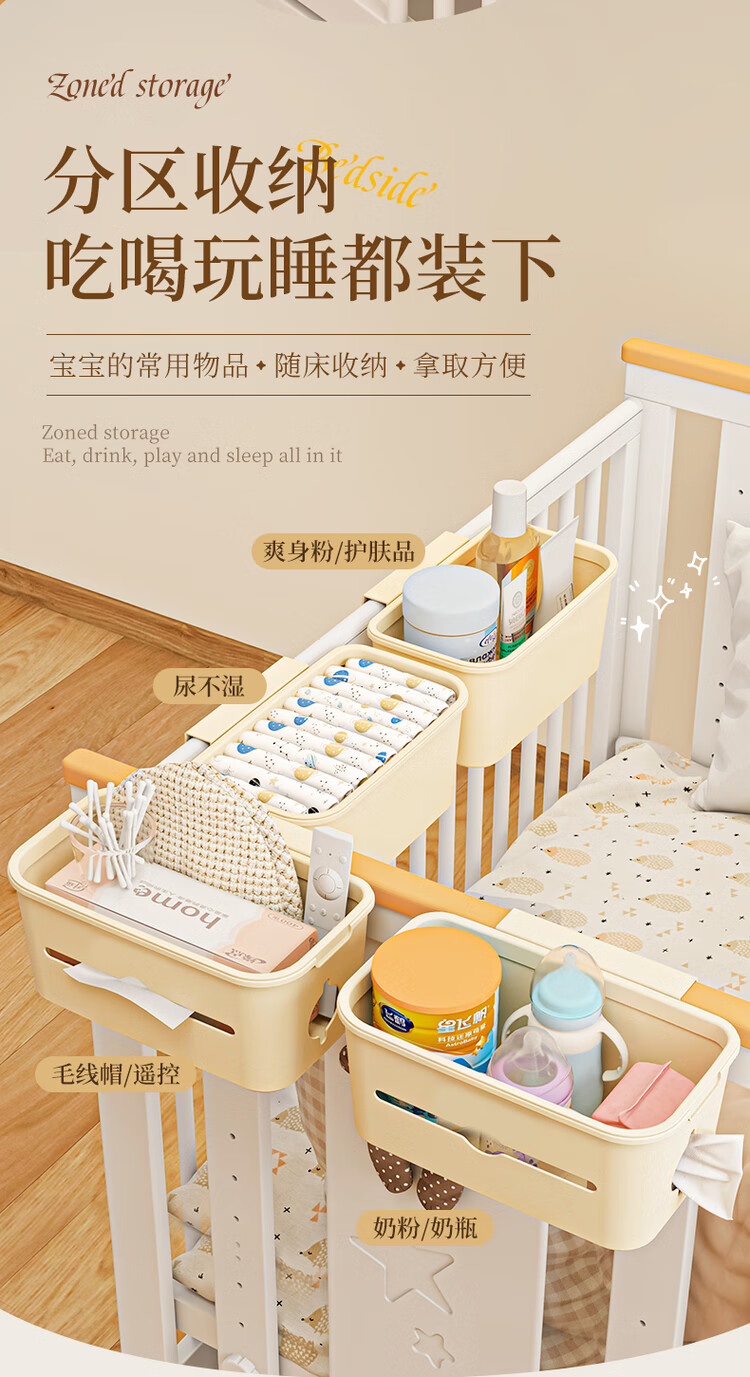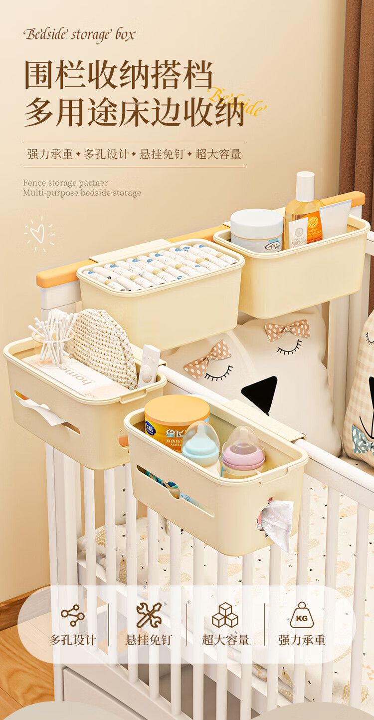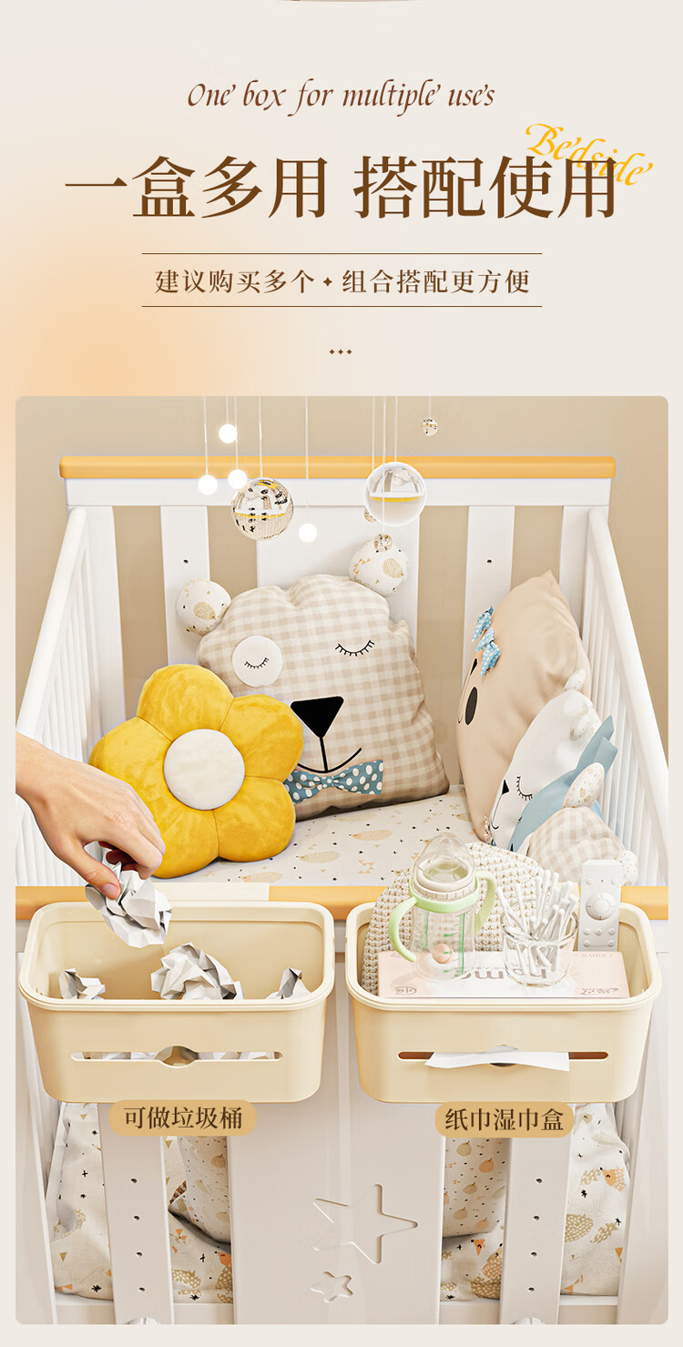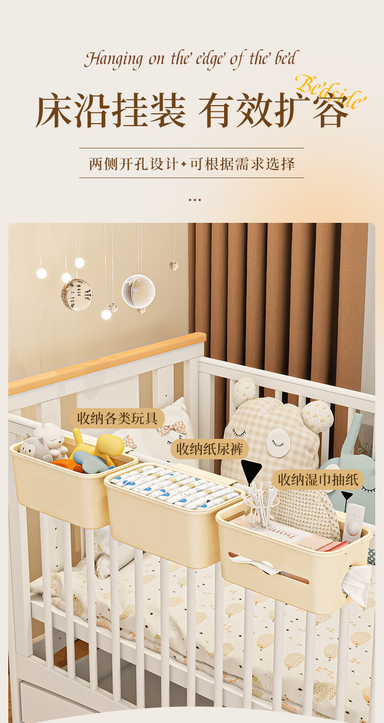 Pupan crib storage hanging basket bedside bedside baby changing table side diaper storage bag cream three-in-one hanging basket saliva/diaper/storage