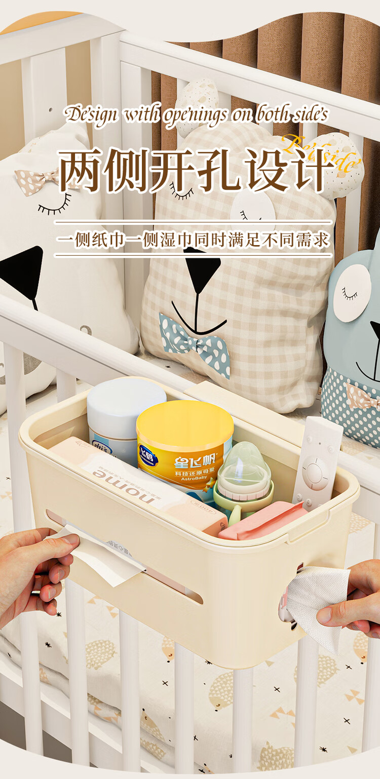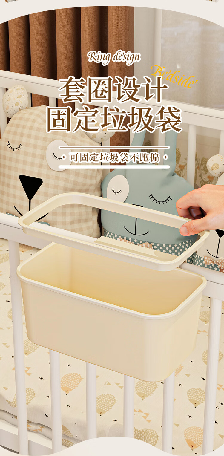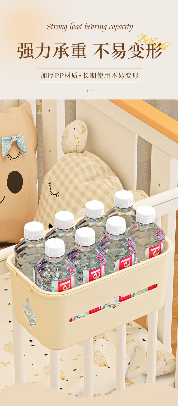 Pupan crib storage hanging basket bedside bedside baby changing table side diaper storage bag cream three-in-one hanging basket saliva/diaper/storage