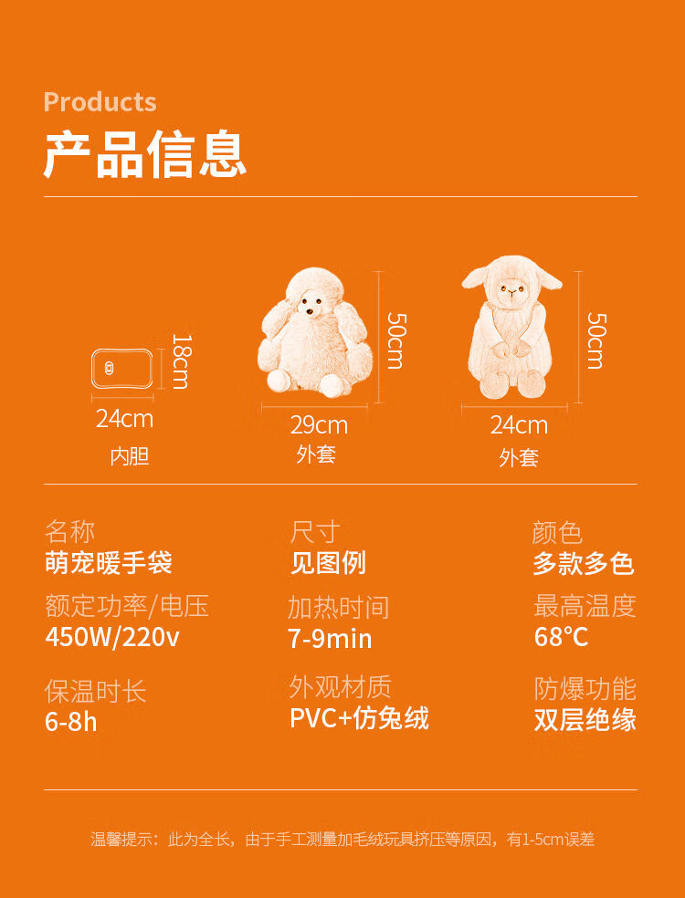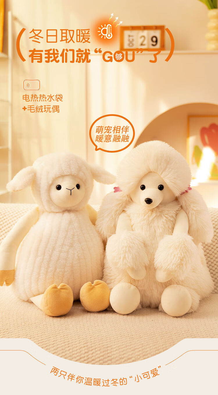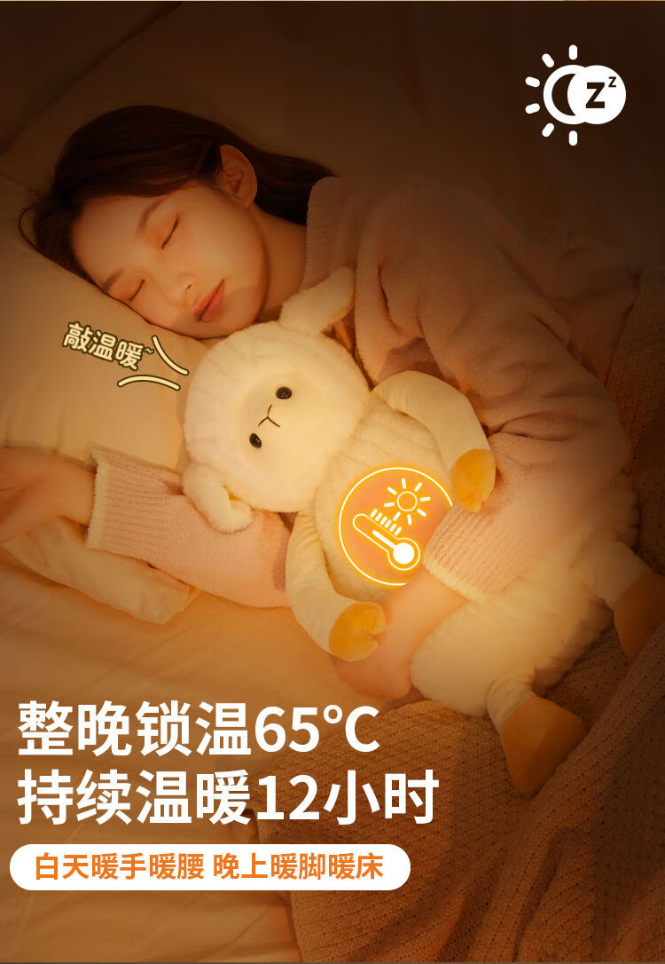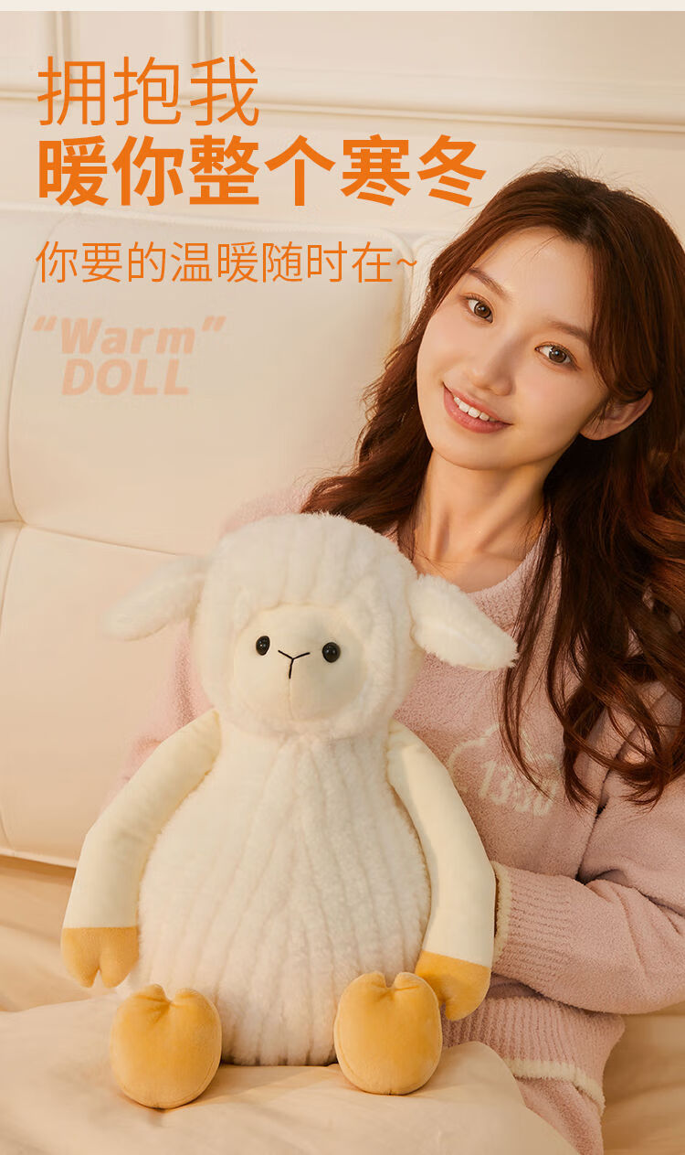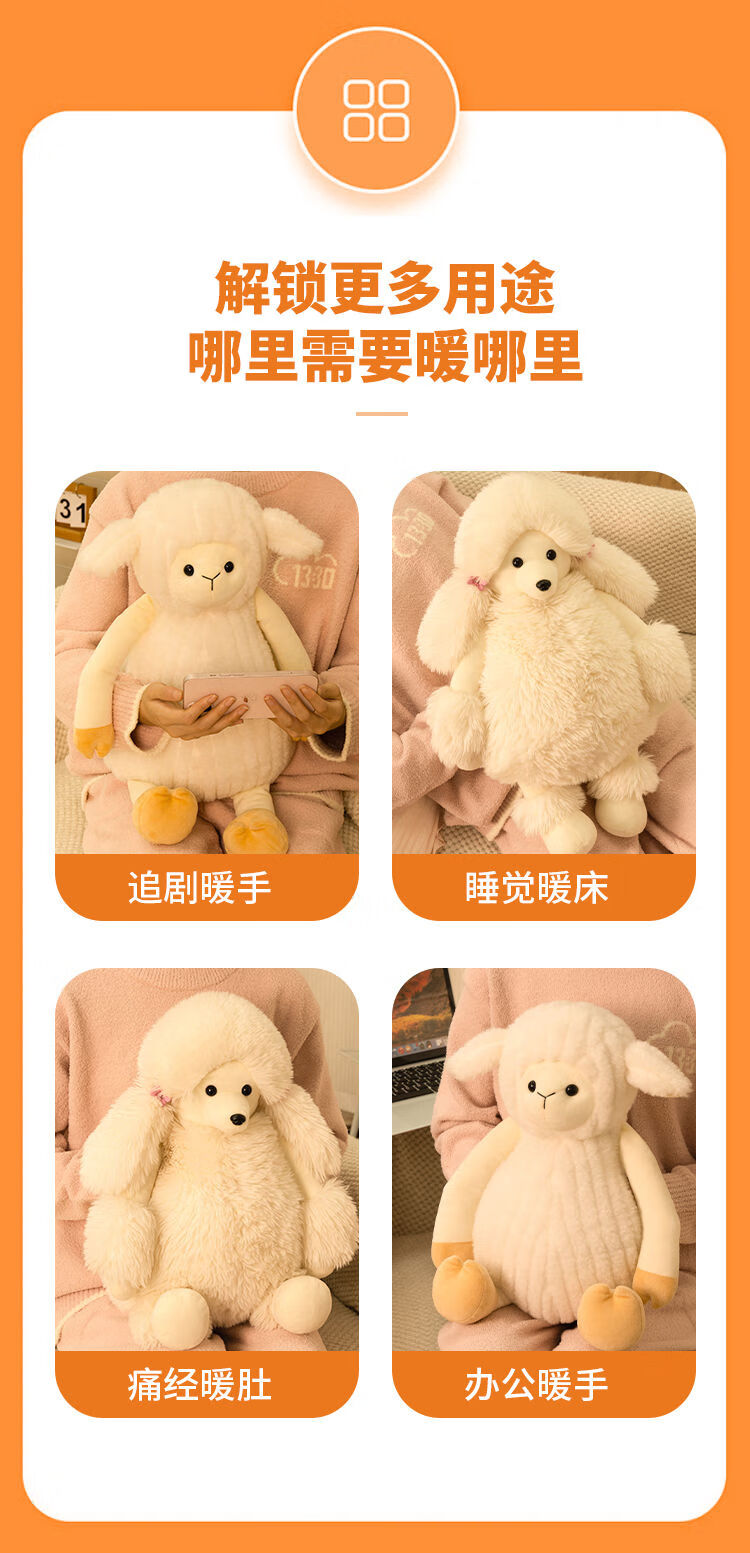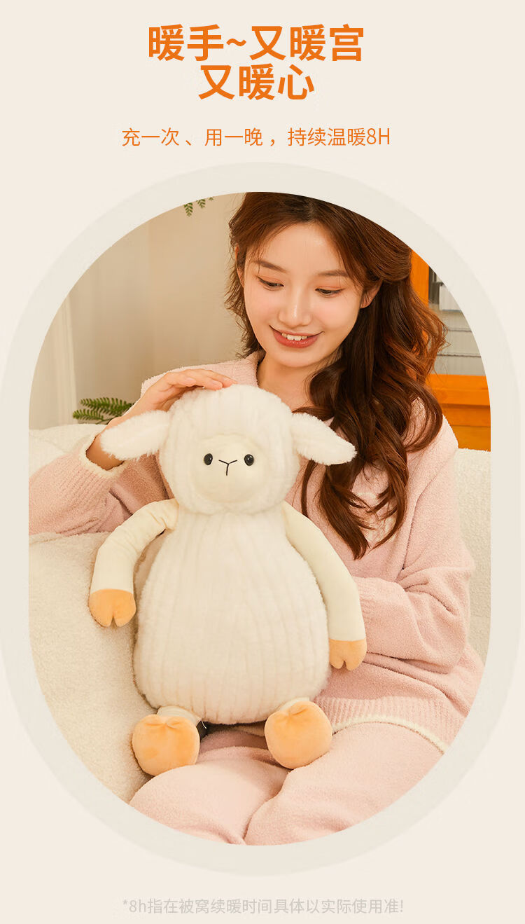 Lingge grid hot water bottle rechargeable explosion-proof lamb warm water bottle to warm baby hand-held electric heater hot treasure quilt special plush toy hot water bottle sitting sheep-warm