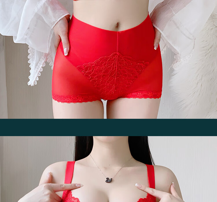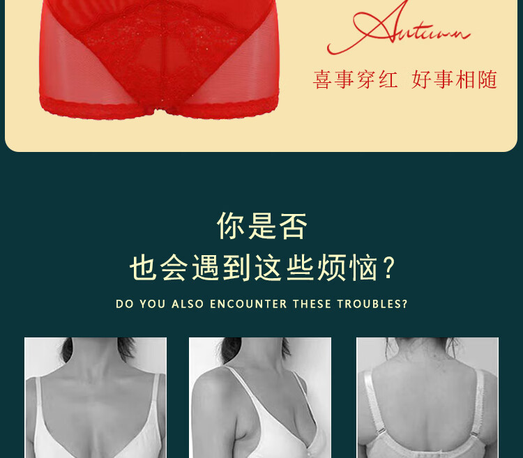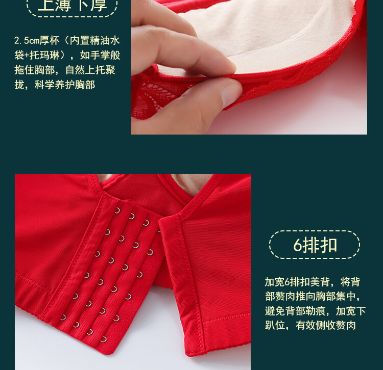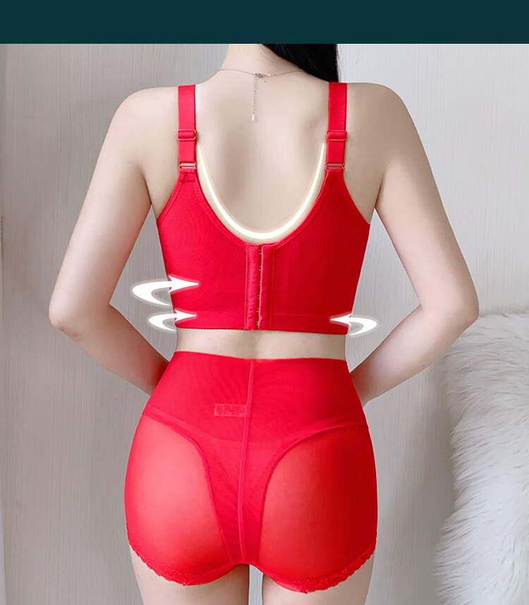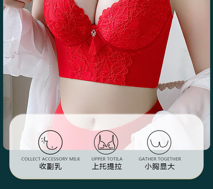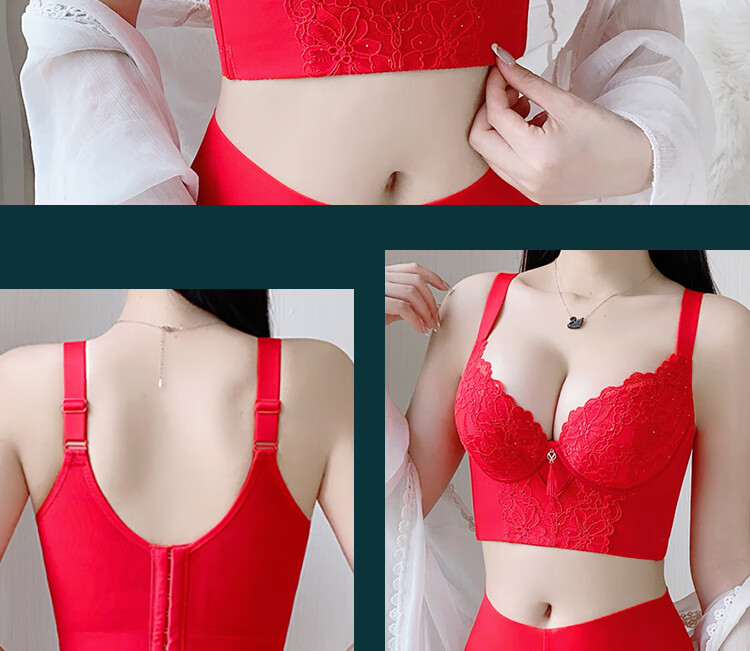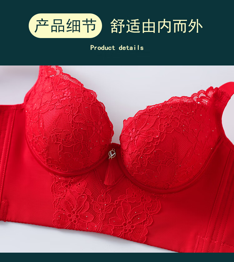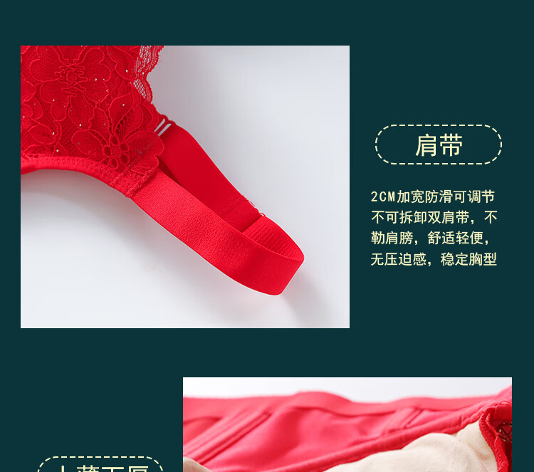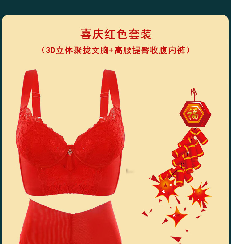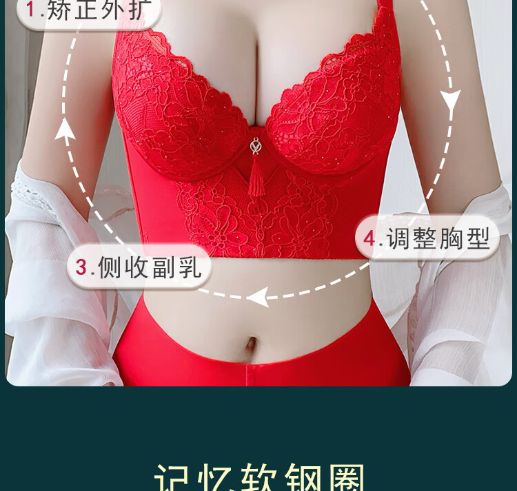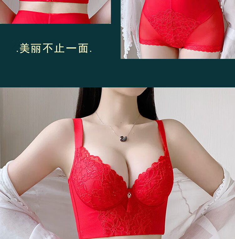 Victoria (Victoria) red underwear women's underwear Zodiac year bra to reduce sagging and prevent sagging, push-up thin bra set Chinese red set (underwear + underwear) M 32/70A Top thin and bottom thickness 2.5C