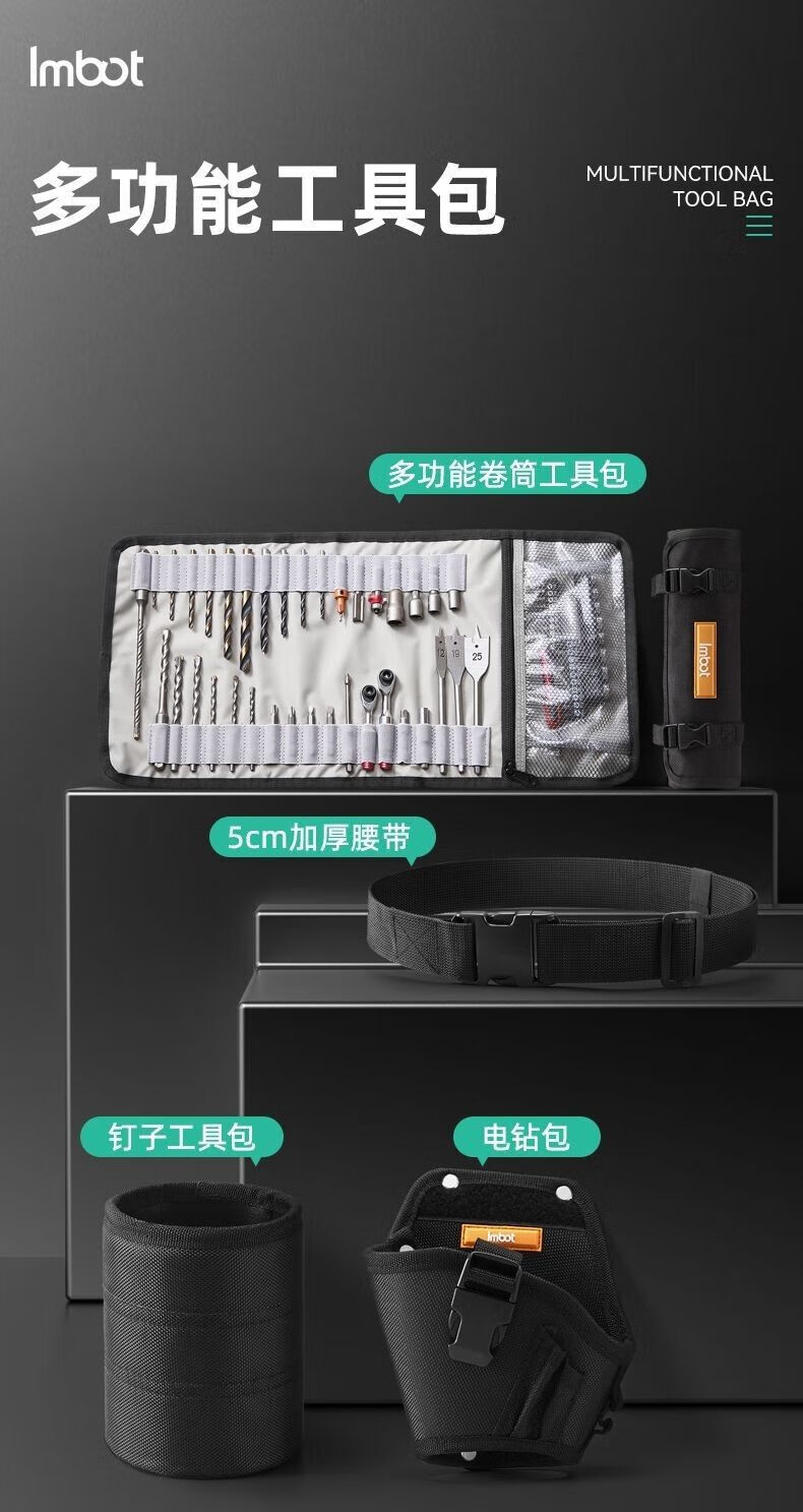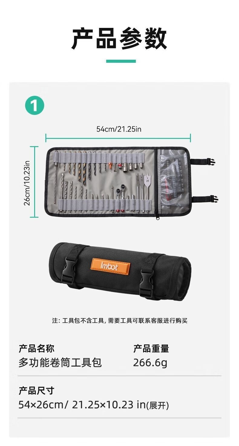 FANCYCHICImbot roll bag drill bit bag tool bag multi-functional electrician bag wear-resistant woodworking portable construction site storage bag nylon multi-function roll bag