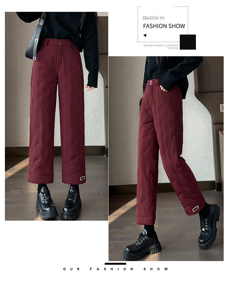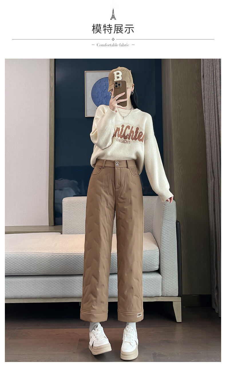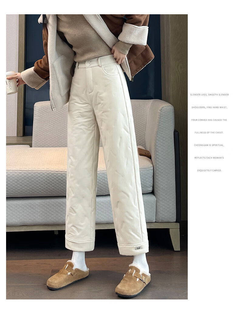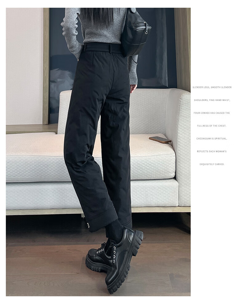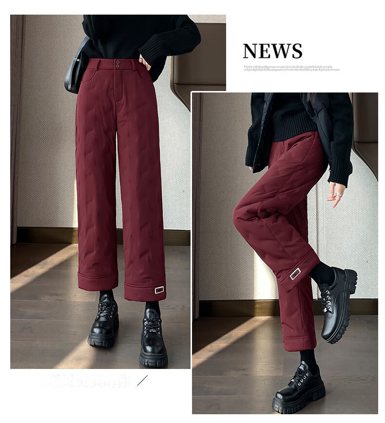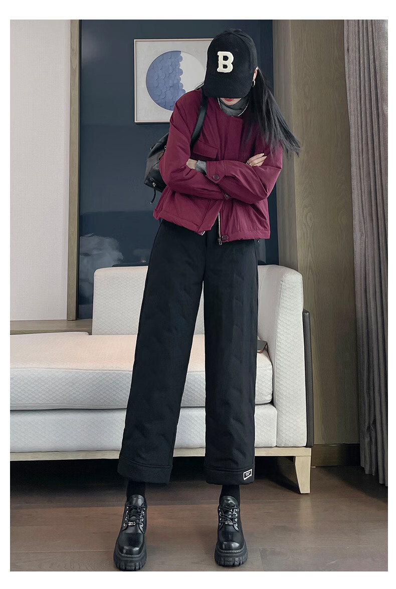 KOVLLIAEN Down Pants Women's Winter Fashion Straight Thickened Warm Plush Pants High Waist Coldproof Nine-Point Cotton Pants for Small People Black XL