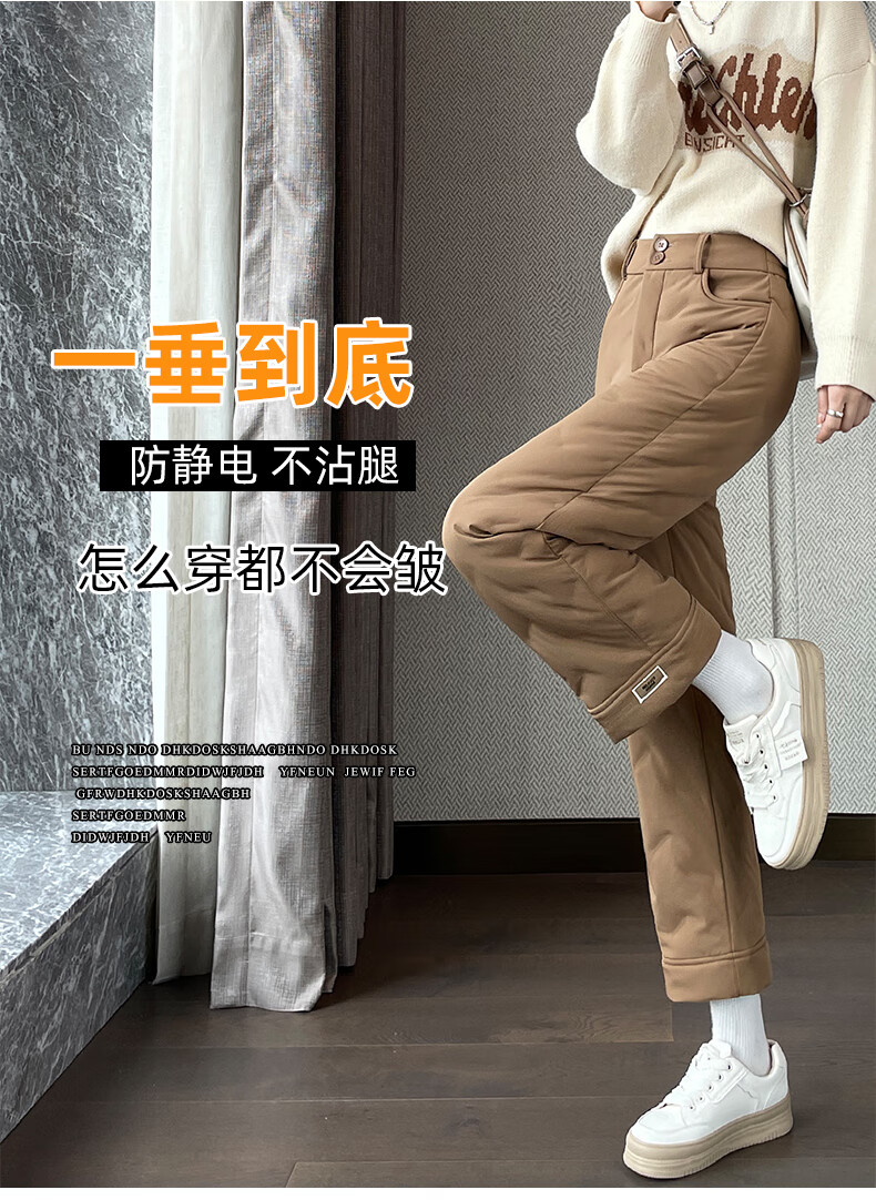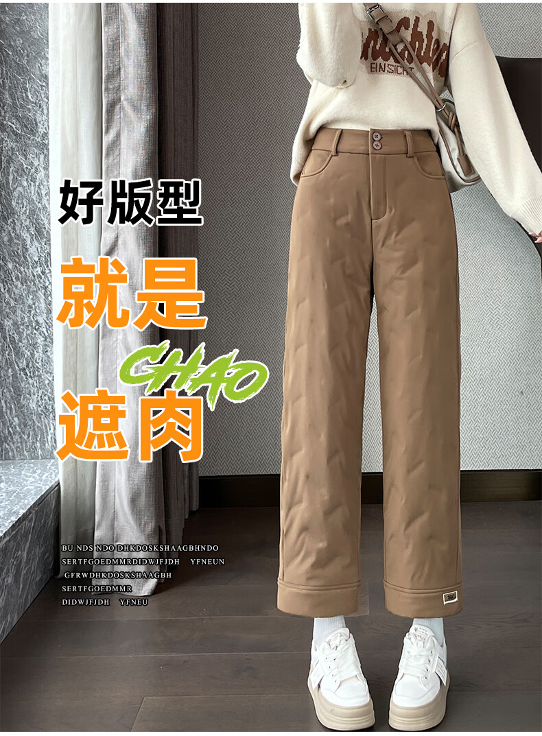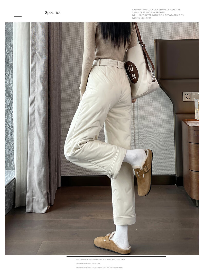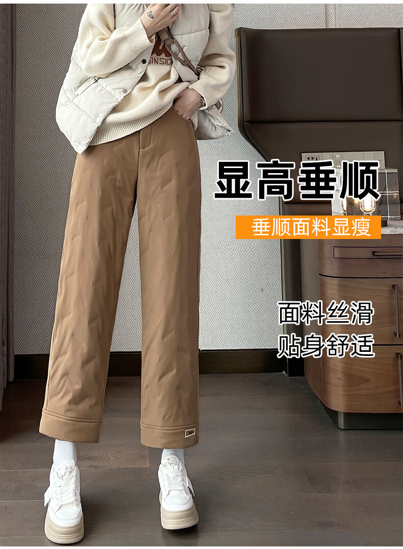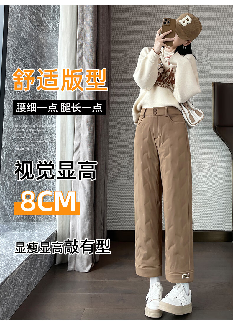 KOVLLIAEN Down Pants Women's Winter Fashion Straight Thickened Warm Plush Pants High Waist Coldproof Nine-Point Cotton Pants for Small People Black XL